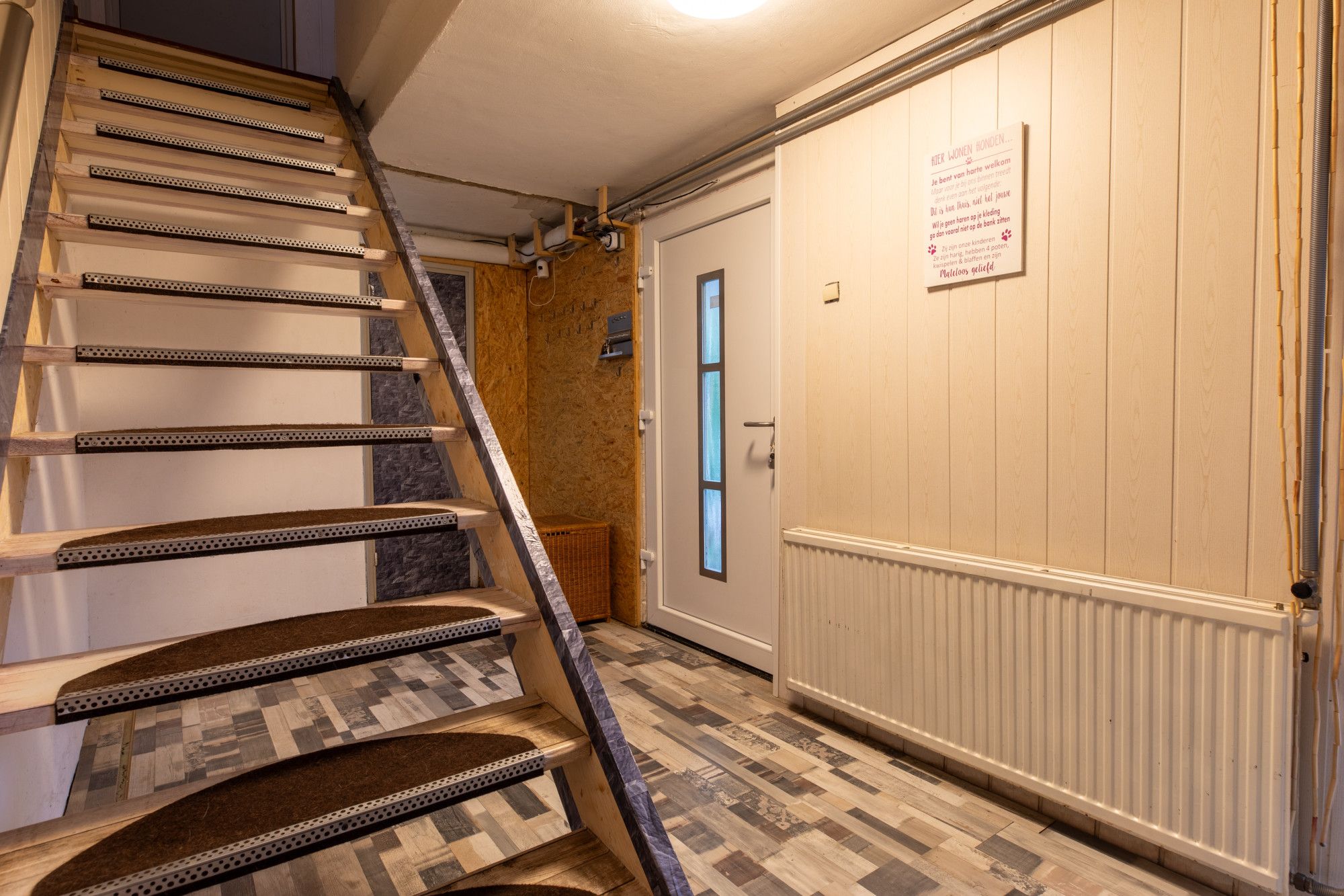 Ontvangsthal (3.85 x 2.16 m) met verdiepingstrap.