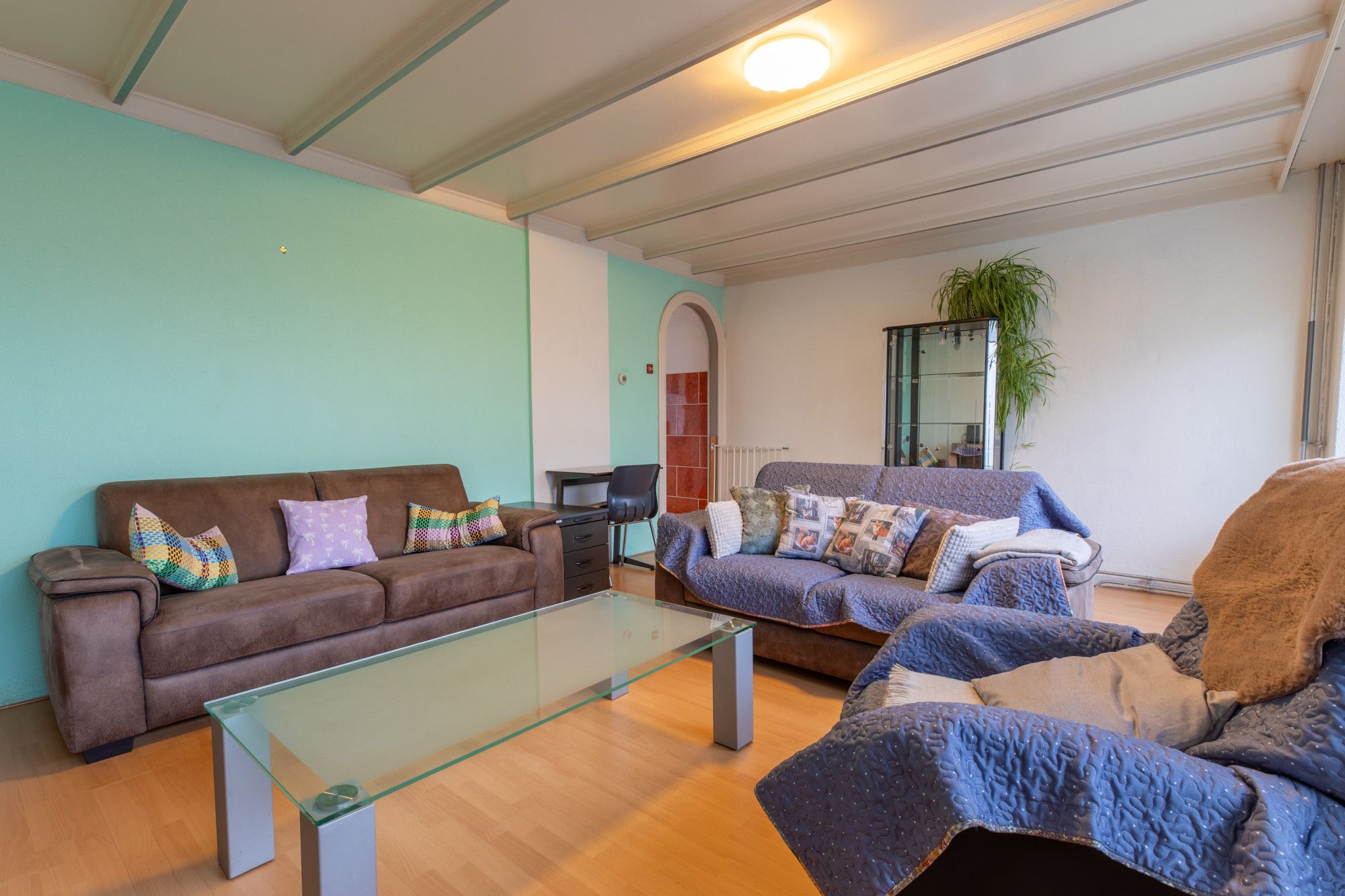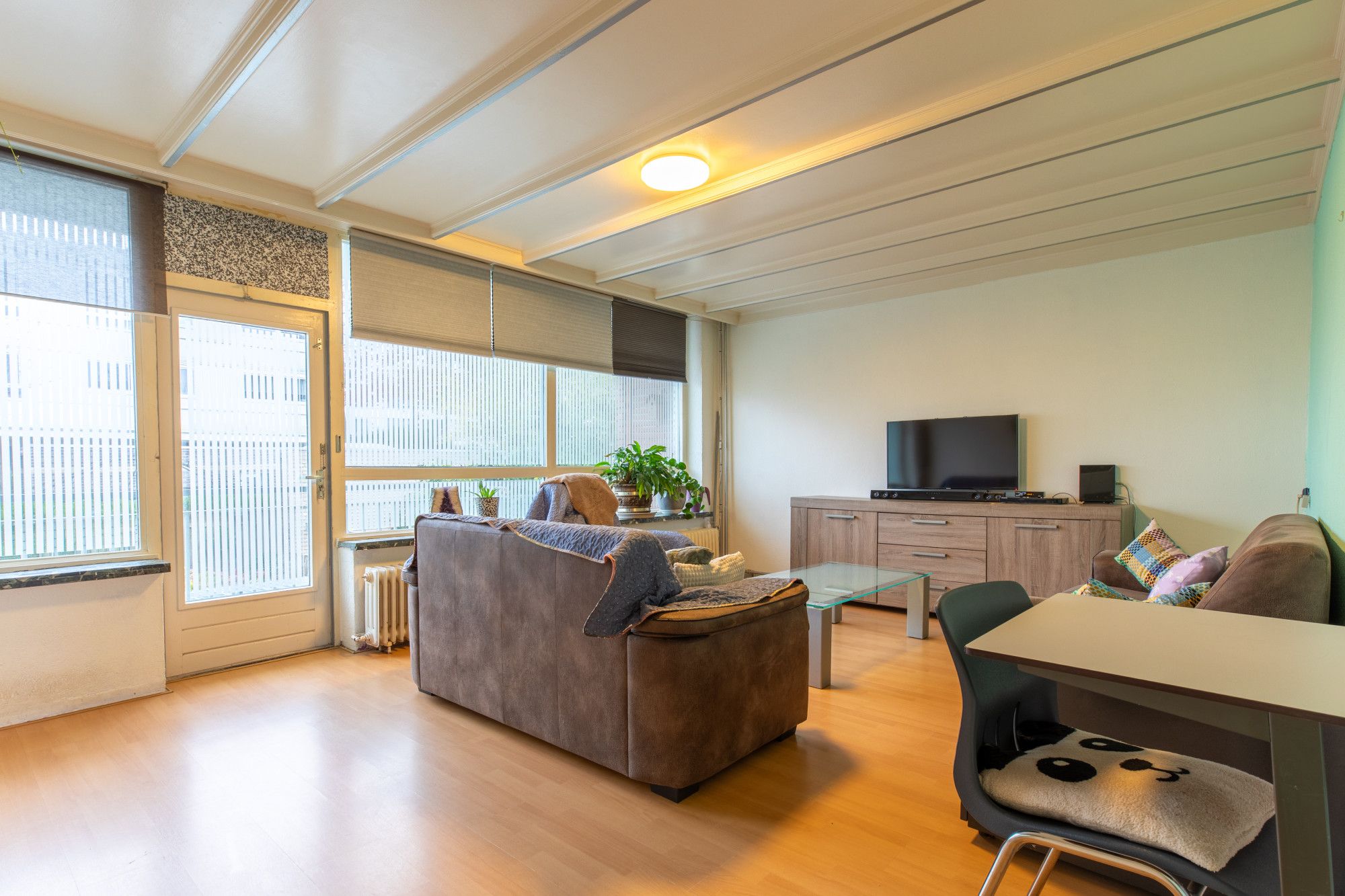 Woonkamer (5.75 x 4.04 m) met toegang naar balkon.