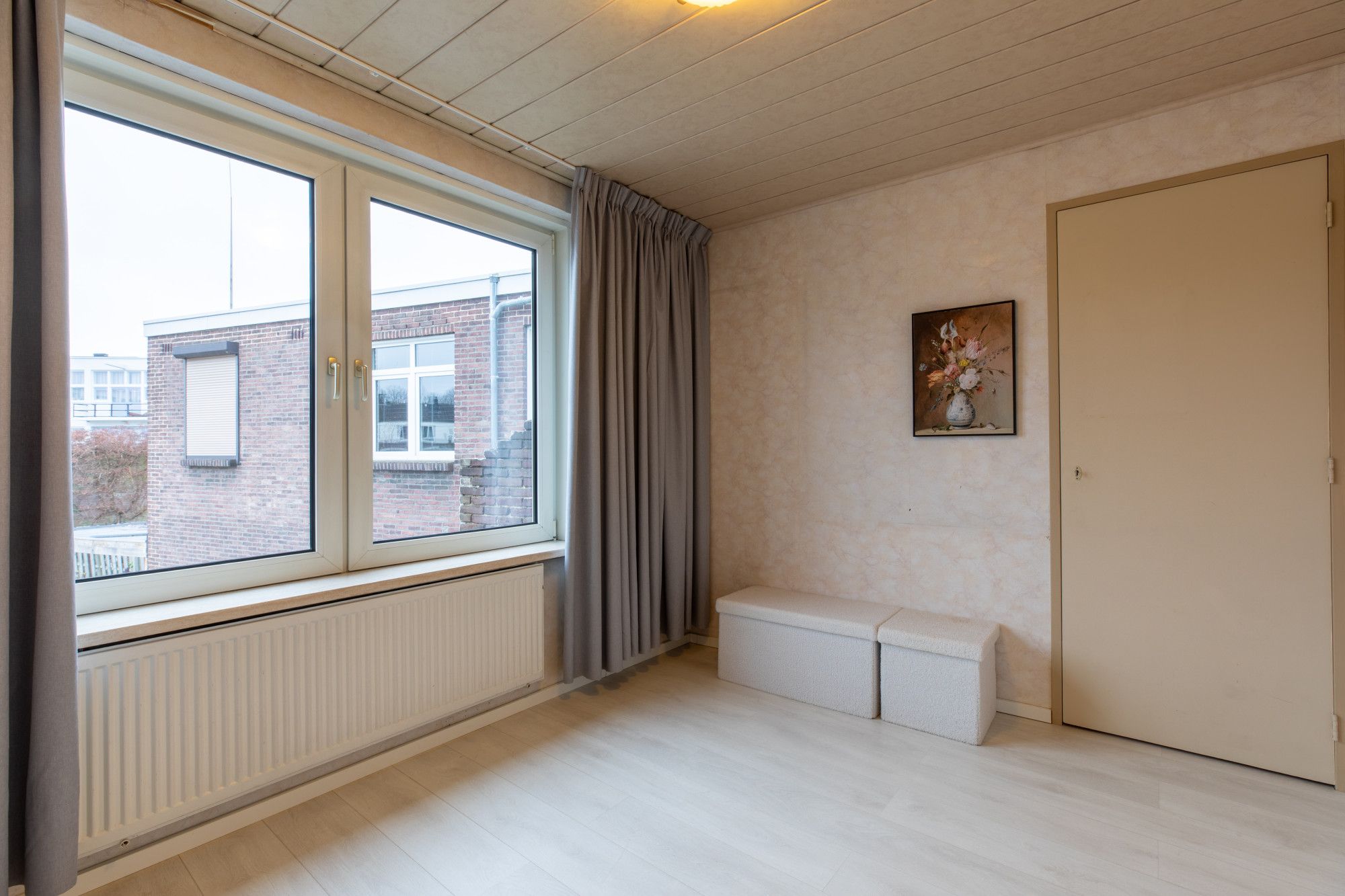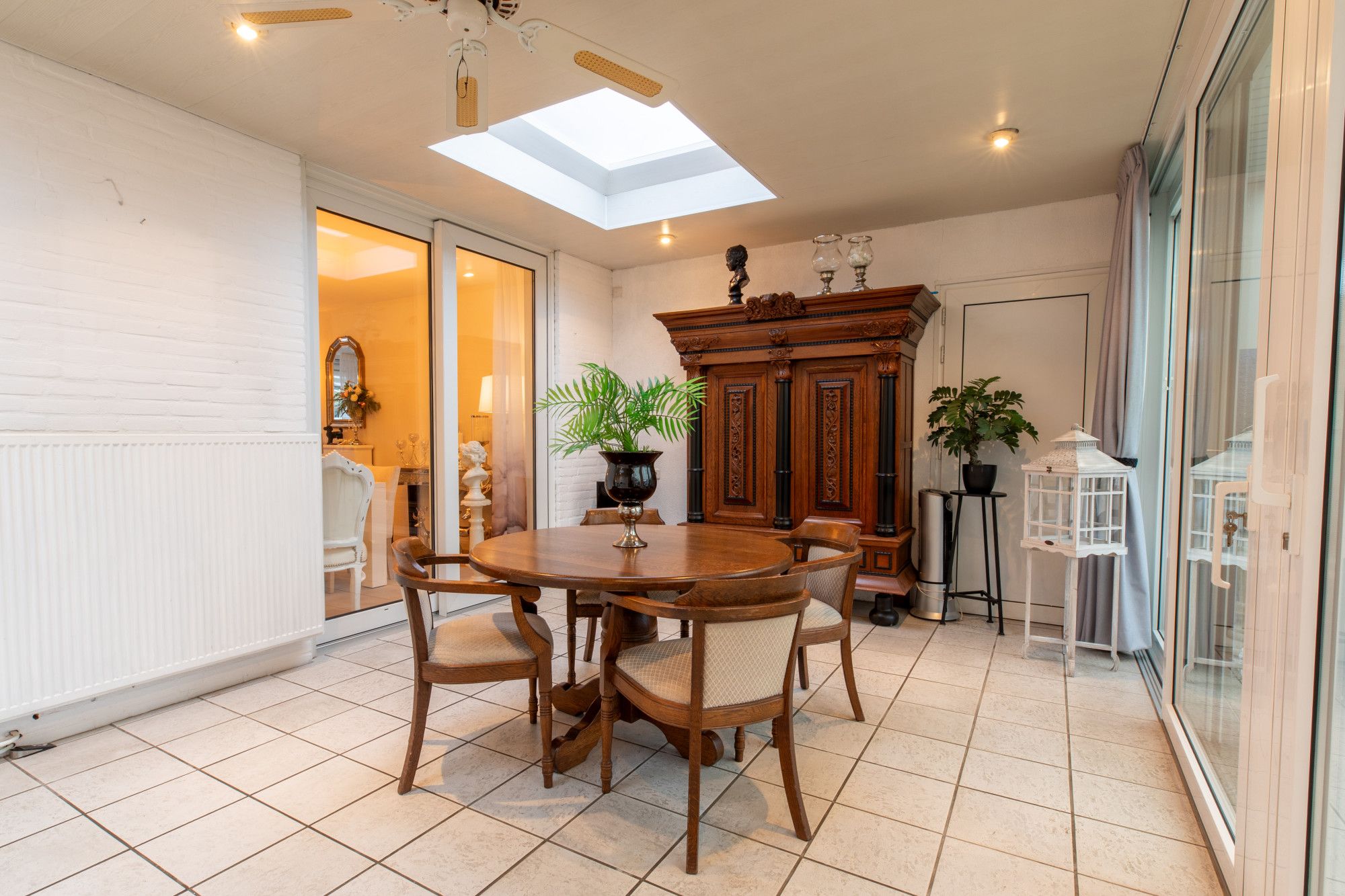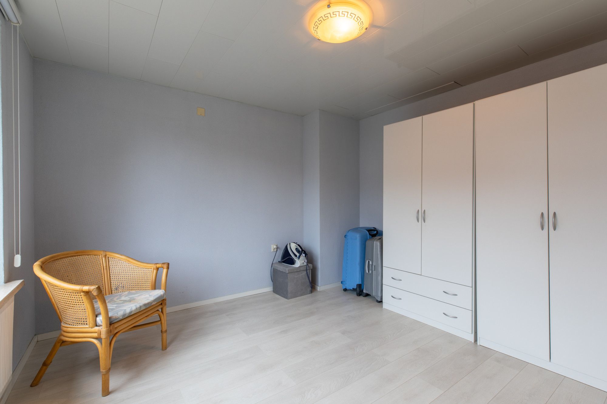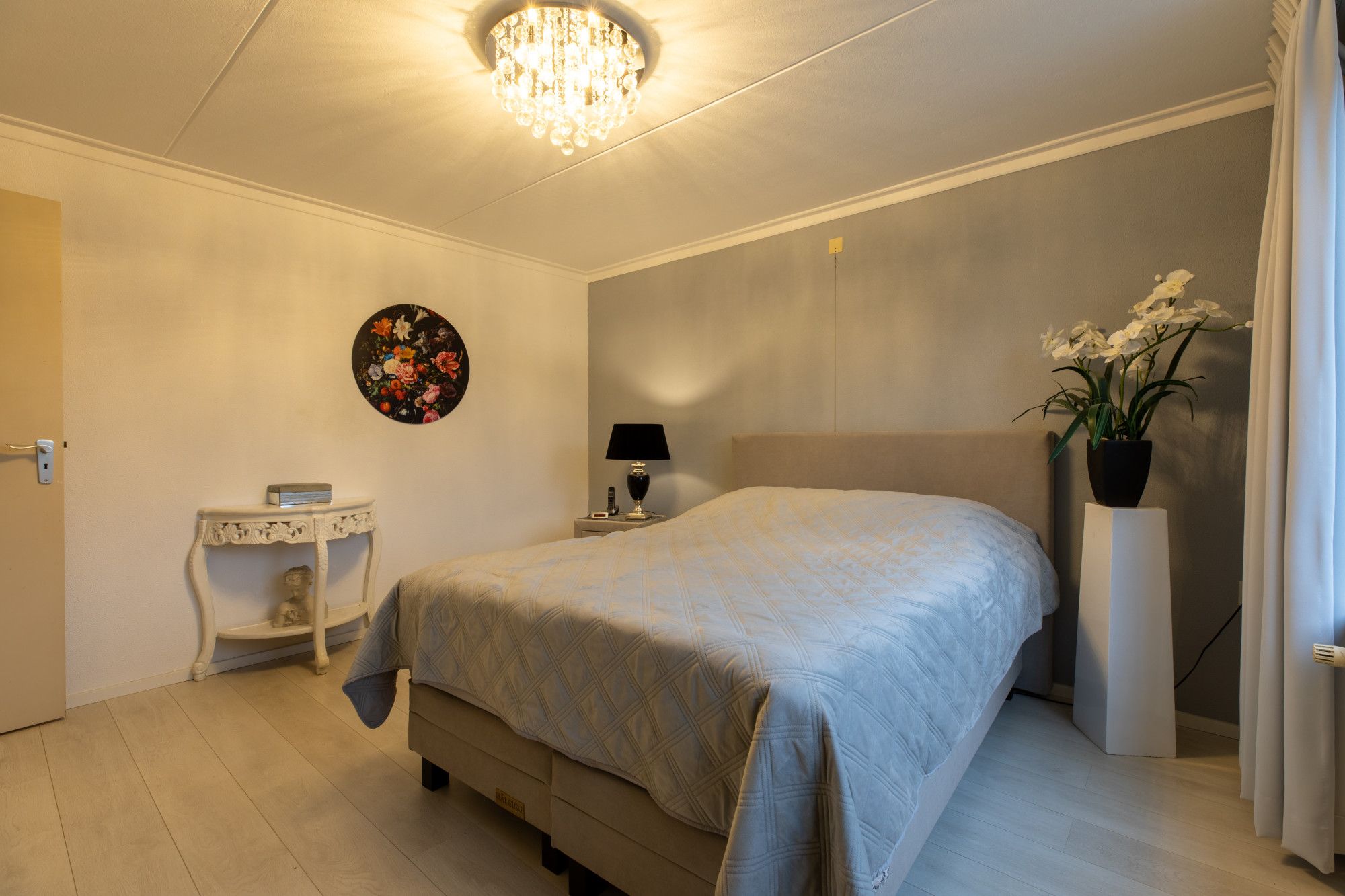 Doorzon woonkamer (7.44 x 3.50 m) met open keuken (3.35 x 2.70 m) eveneens voorzien van PVC vloer, keukeninstallatie in u-opstelling met diverse onder- en bovenkasten, inbouwapparatuur te weten: 4-pits inductie kookcomfort, afzuigkap, combi-magnetron, vaatwasser en koelkast. Vanuit de woonkamer en keuken toegang tot de tuinkamer (5.55 x 3.59 m) met 2 lichtkoepels en dubbele schuifdeur naar de geheel omsloten ruime bestrate achtertuin met ruime overkapping (5.55 x 4.40 m) en tuinberging (voormalig duivenhok). Vanuit de straat middels elektrisch rolluik te bereiken berging (4.45 x 3.05/1.80 m).