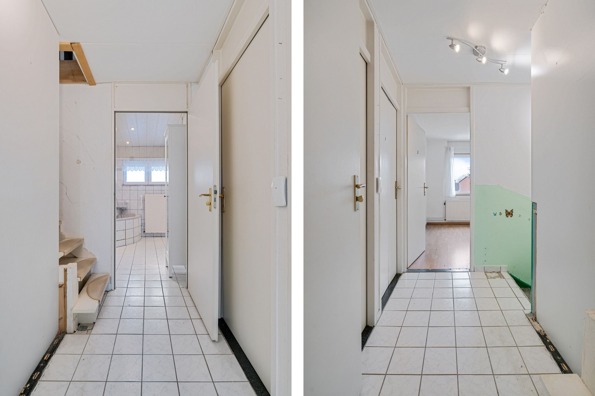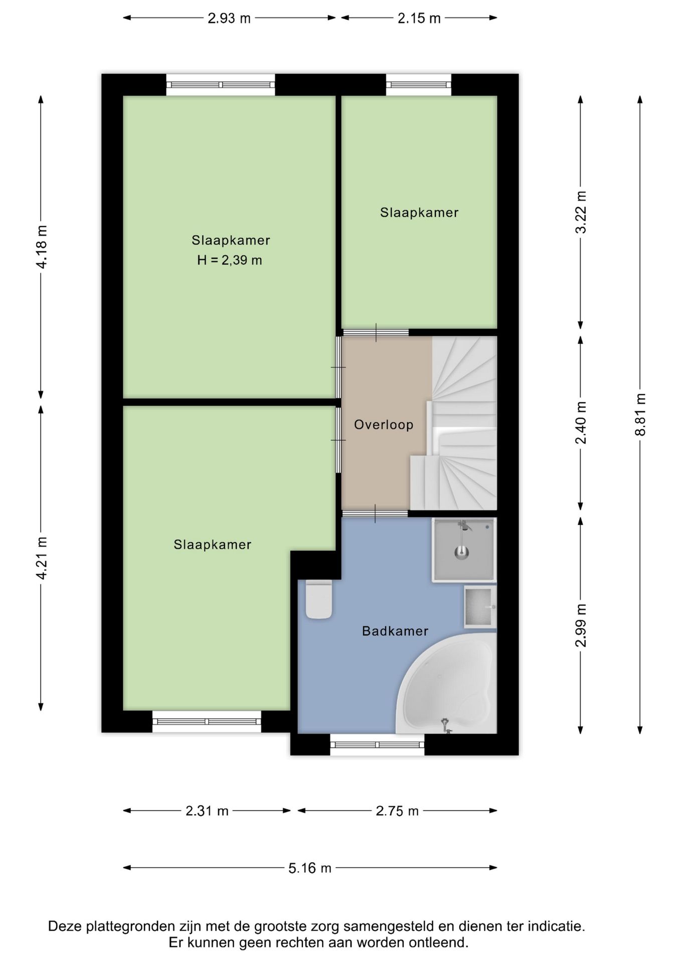 De overloop biedt toegang tot drie slaapkamers en de badkamer.