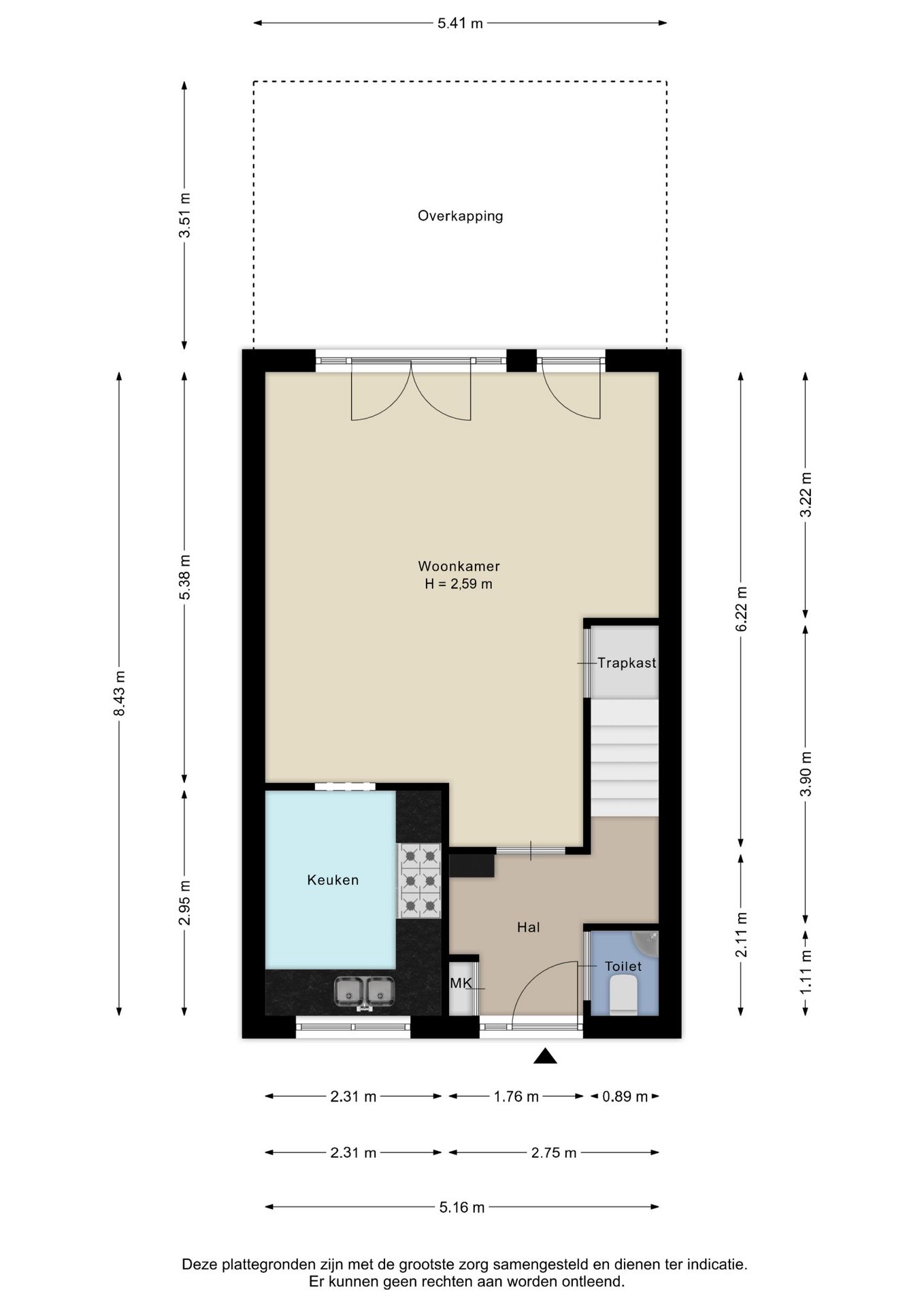 Alle door ons kantoor verstrekte informatie omtrent onroerende zaken, moet beschouwd worden als een uitnodiging om in onderhandeling te treden, en is geheel vrijblijvend! Alle vermelde maten en afmetingen zijn slechts bij benadering. Aan deze beperkte info kunnen geen rechten worden ontleend. Indien in enige documentatie of op enige website informatie staat die niet overeen komt met de werkelijkheid, dan geldt de feitelijke situatie waarin de woning zich bevindt, zoals koper deze tijdens de bezichtiging heeft kunnen waarnemen, en wordt de woning in deze feitelijke situatie/staat verkocht. Een (eventueel) bijgevoegde plattegrond dient uitsluitend als globale indicatie/visualisatie. Hieraan kunnen uitdrukkelijk geen rechten worden ontleend.