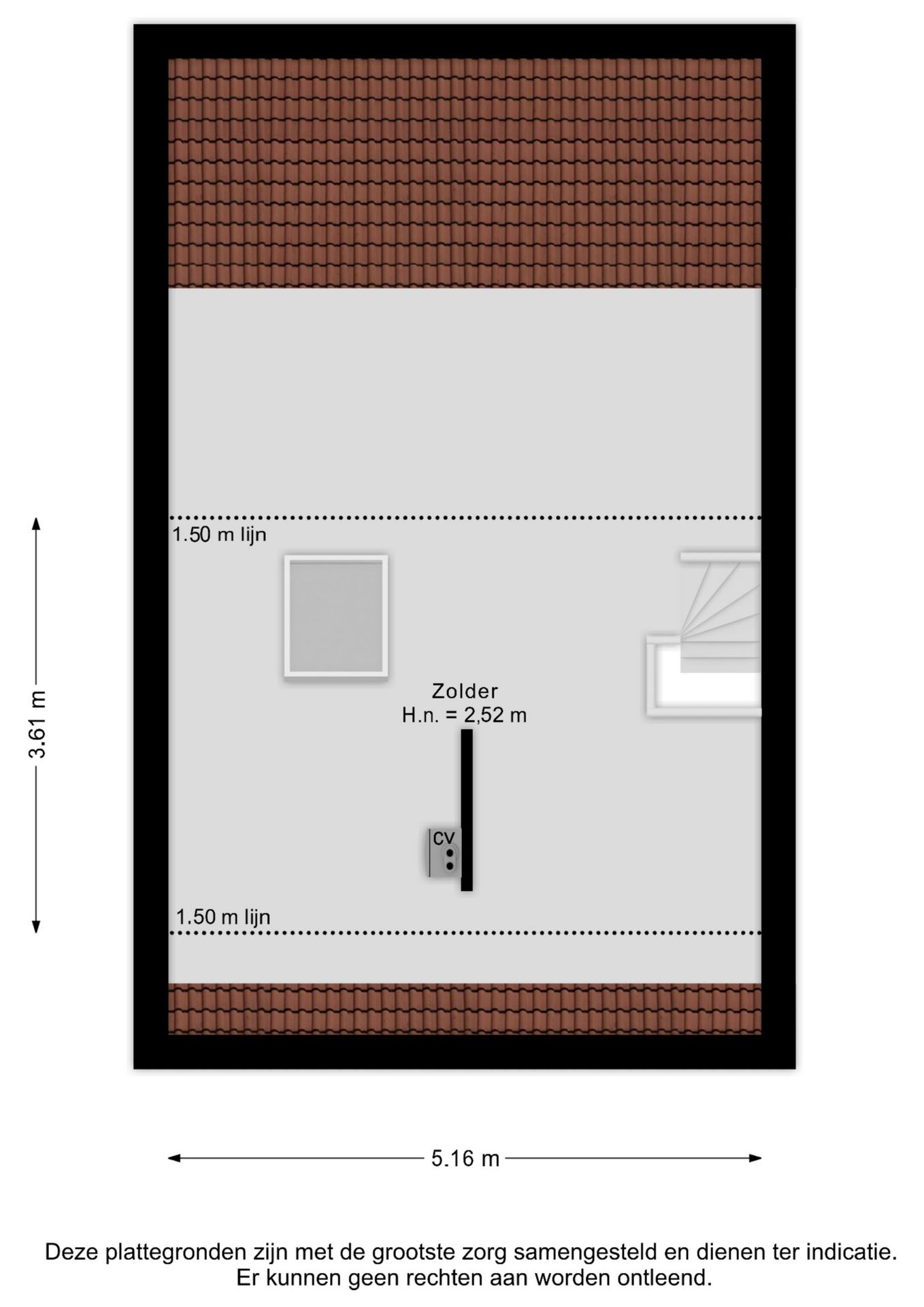 Via een vaste trap bereikt u de ruime zolderverdieping met de opstelplaats van de cv-installatie (huur, 2016), de mechanische ventilatie-unit en de witgoedaansluiting.