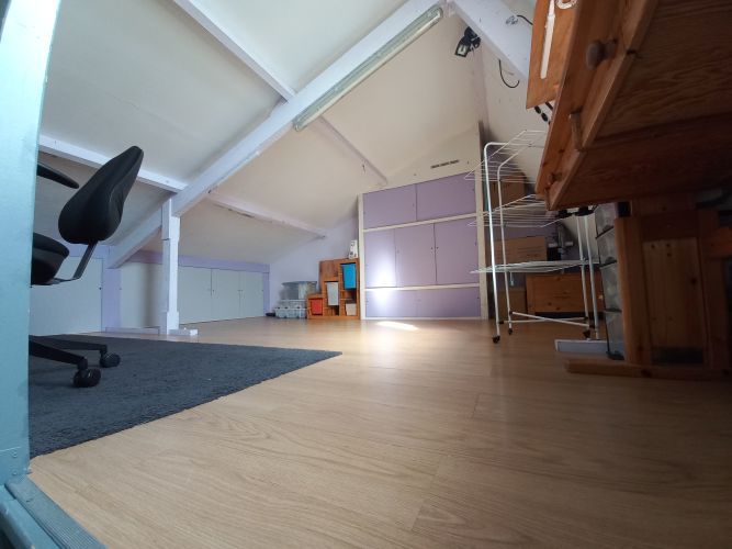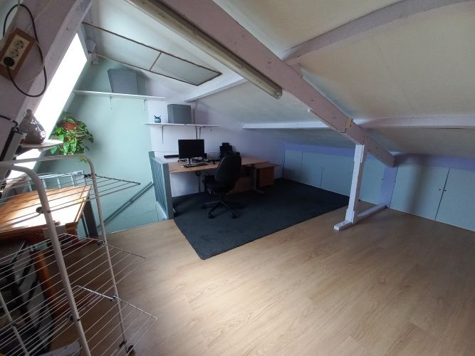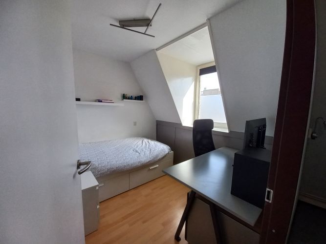Verrassend ruime woning met Garage/berging gelegen aan plantsoen. Hal, toilet, berging, ruime woonkamer(+/- 5.17 x 6.27 m) met toegang tot tuin met overkapping. Keuken (+/- 3.1 x 2.6m)met toegang tot garage/ berging, voorzien van oven, gasfornuis en vaatwasser 1e etage: 3 slaapkamers(+/- 2.8 x 2.4 m/2.25 x 4.5m/2.8 x 4.5 m) en badkamer voorzien van ligbad, wastafel, wasmachineaansluiting en 2e toilet. 2e etage: vaste trap naar zolderkamerwaar(+/- 23 m2) ook de HRCV (huur) is geplaatst.