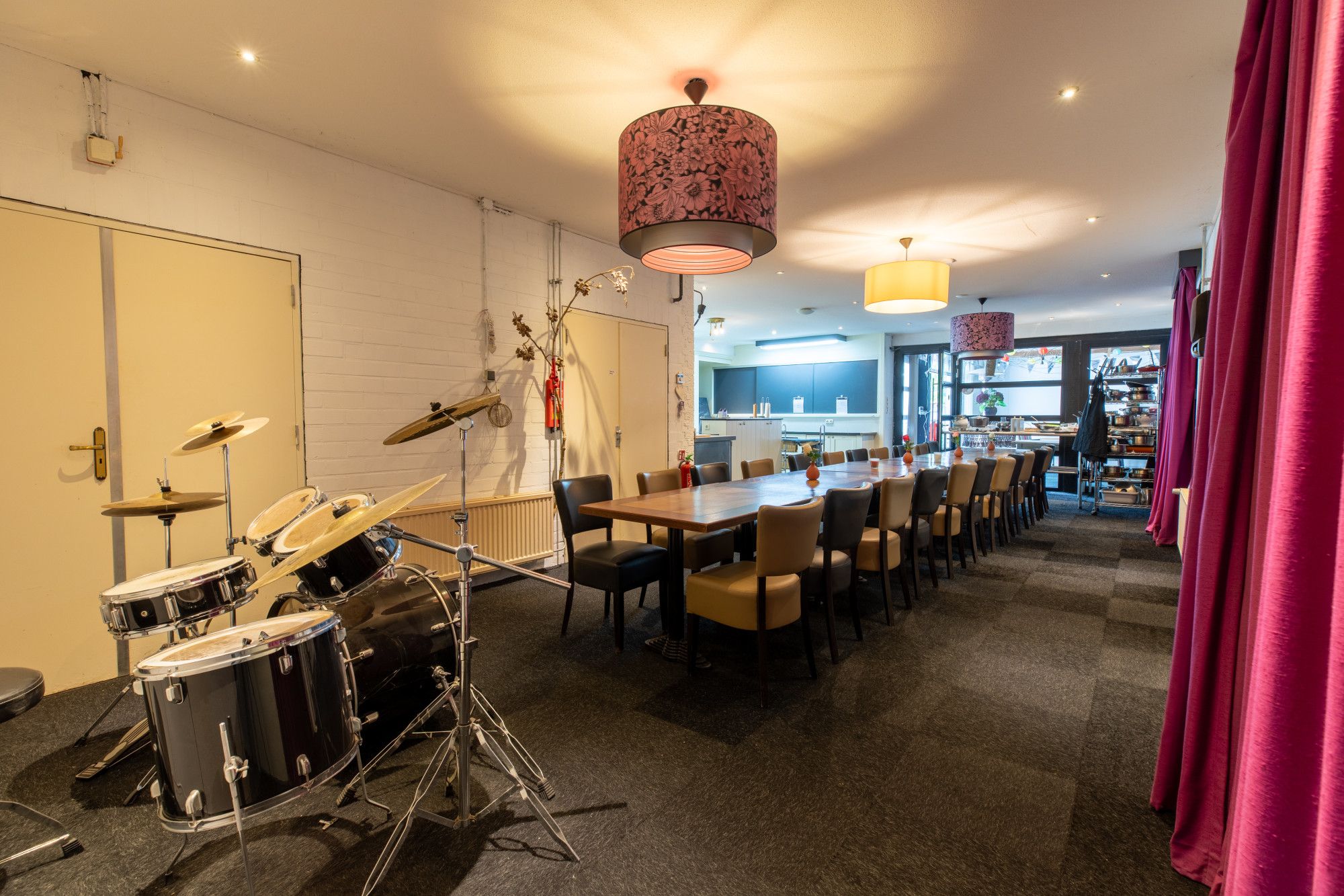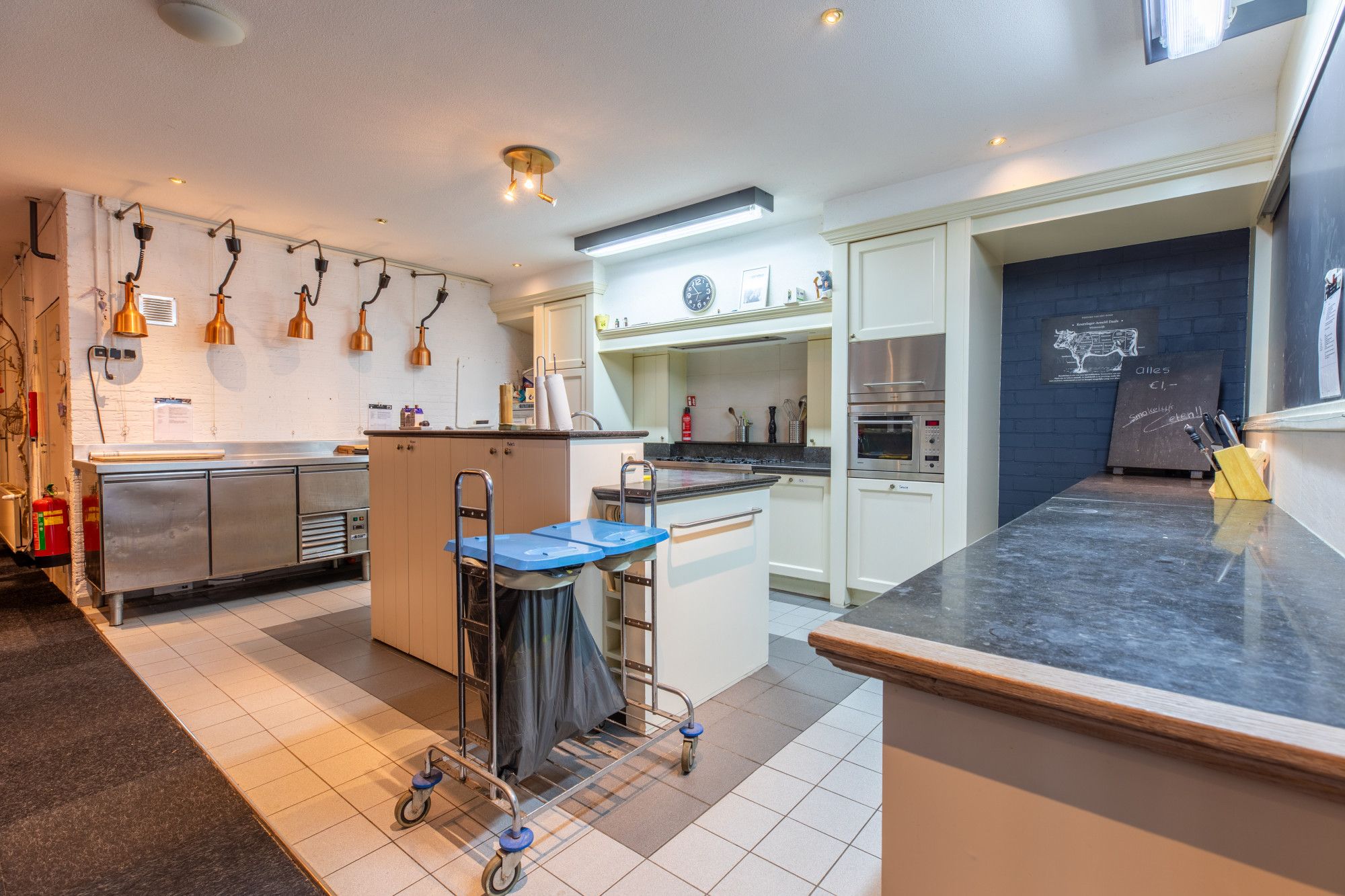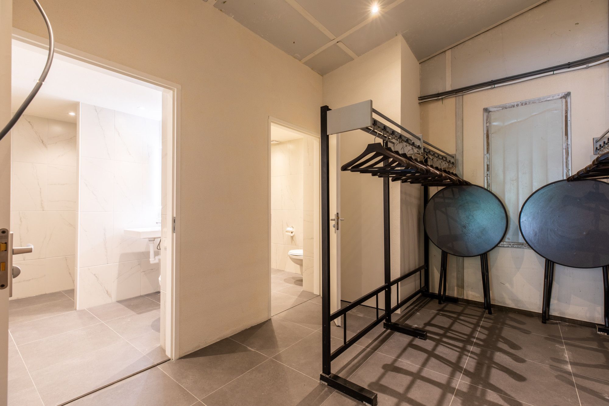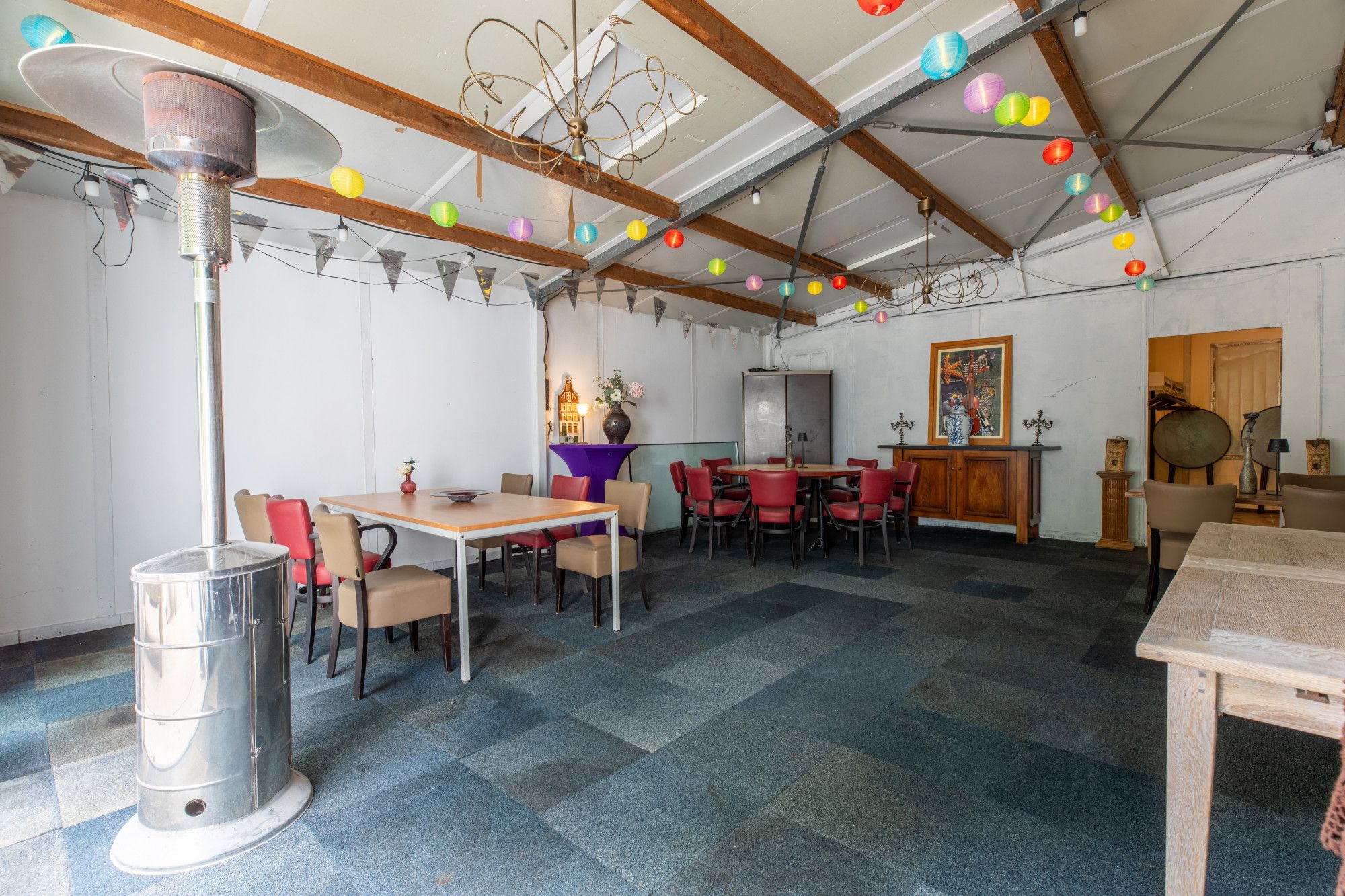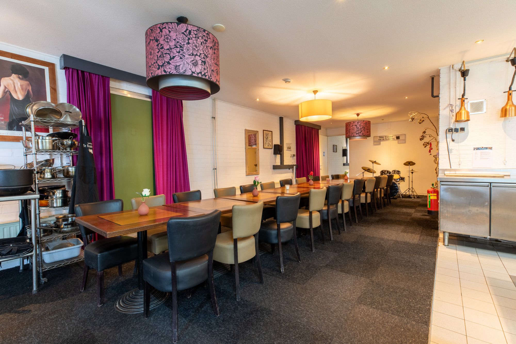 De kookstudio vormt een bijzonder onderdeel, circa 68 m² professioneel ingericht met diverse inbouwapparaten en direct verbonden met een aangrenzende verblijfs-/feestruimte. Er is een koelcel van circa 10,5 m² en een toiletruimte met fontein. Let op, er geldt geen horecabestemming en er is geen vergunning voor het schenken van alcohol of het exploiteren van horeca. Naast de kookstudio ligt een ruime verblijfsruimte van circa 48,6 m² met daarachter een opslag van circa 22,8 m², gescheiden door een lichte wand. In dit deel zijn twee aparte toiletruimten aanwezig, die recent geheel nieuw zijn aangelegd. De compleet ingerichte kookstudio kent nu diverse vaste gebruikers en is als zodanig te verhuren en uit te breiden.