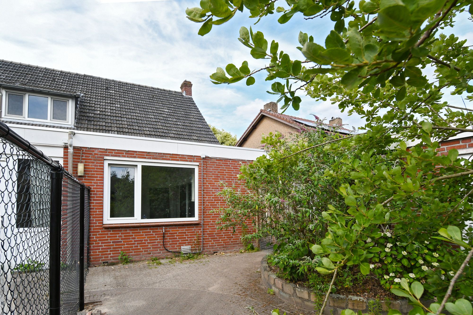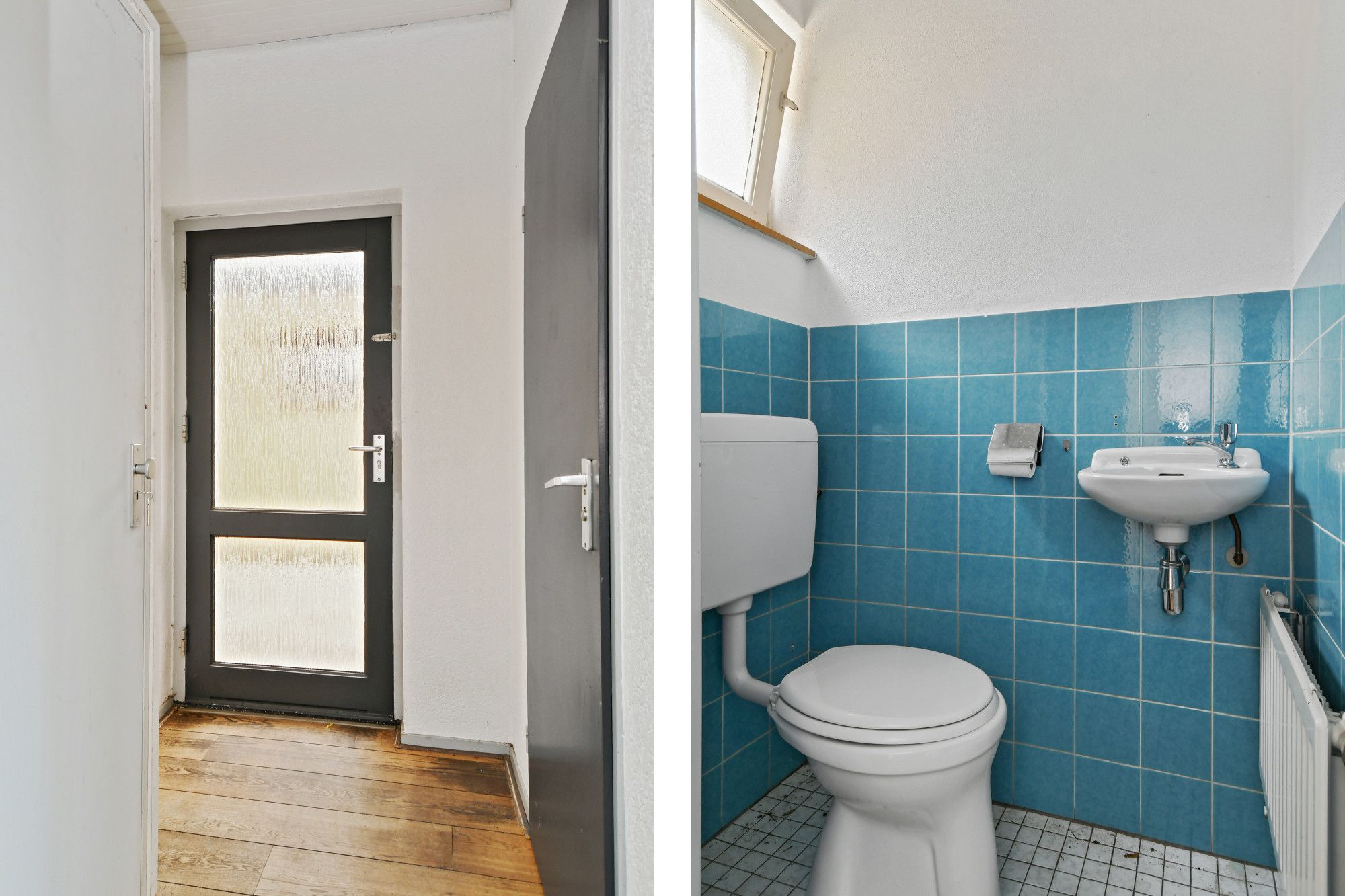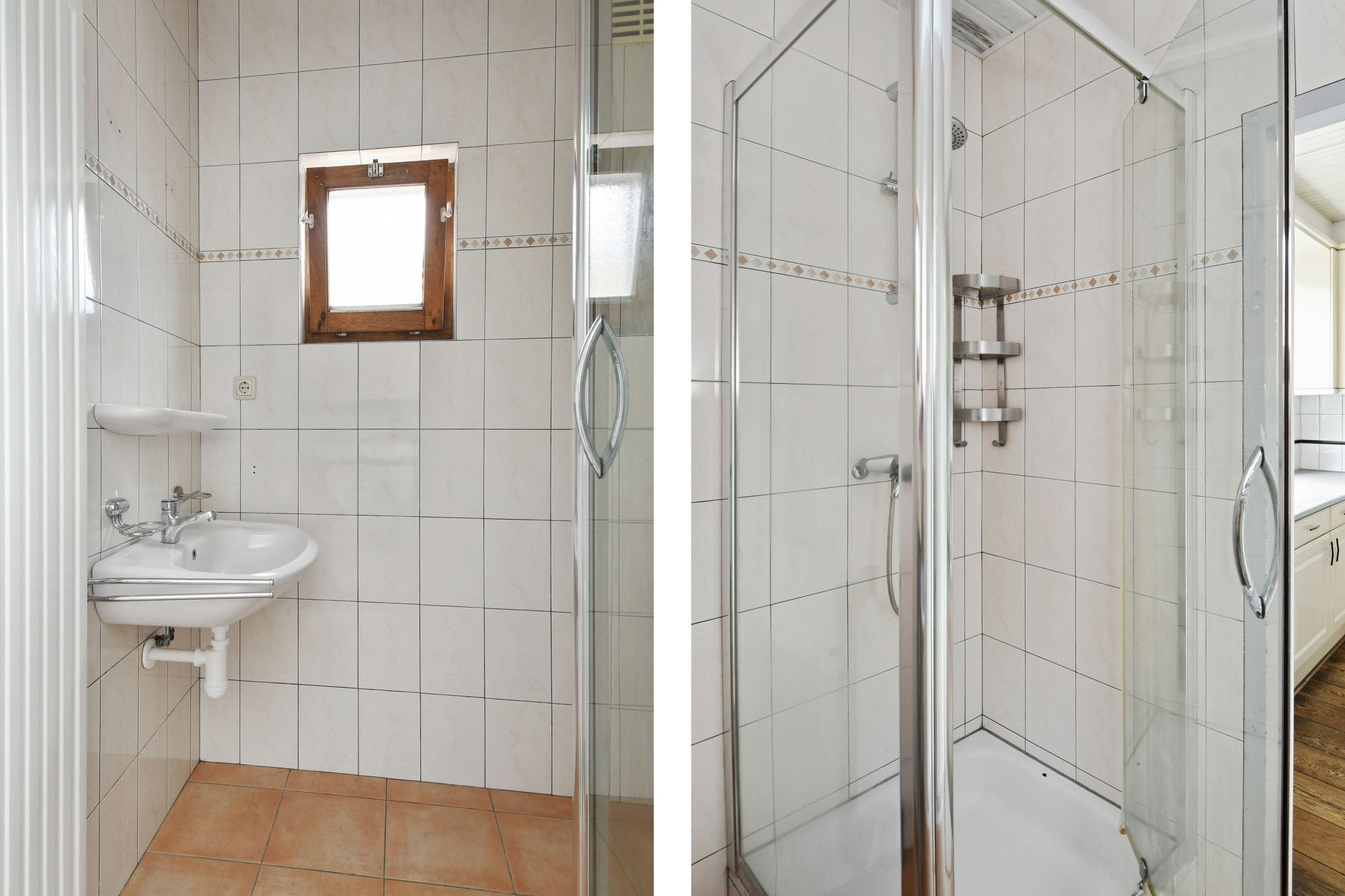 Via de oprit aan de linkerzijde kom je bij de entree van de woning. De hal geeft toegang tot de recent vernieuwde meterkast en de toiletruimte. Tevens kom je vanuit de hal in de ruime keuken welke zich in de uitbouw aan de achterzijde van de woning bevindt. De keuken heeft een praktische hoekopstelling en beschikt over een keramische kookplaat, royale kastruimte en een groot raam met uitzicht op de achtertuin. Vanuit de keuken heb je toegang tot de badkamer. Deze is volledig betegeld en heeft een douchecabine, wastafel en witgoedaansluiting. Vanuit de keuken kom je via een tussenhal en de woonkamer die gelegen is aan de voorzijde van de woning. De woonkamer heeft een laminaatvloer en biedt voldoende ruimte voor het plaatsen van een eet- en een zithoek. Tevens is vanuit de tussenhal de provisiekelder bereikbaar.