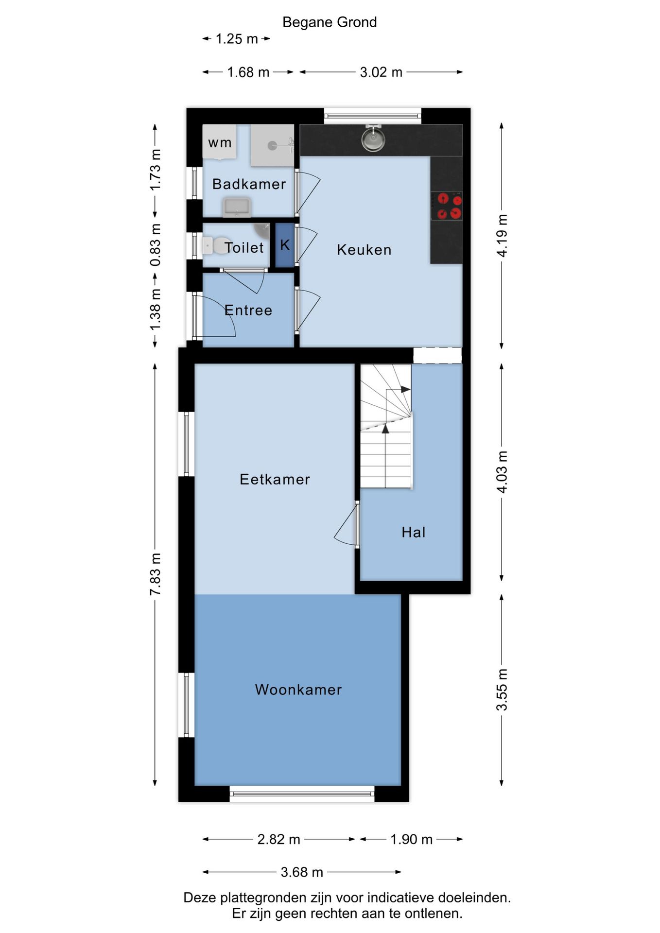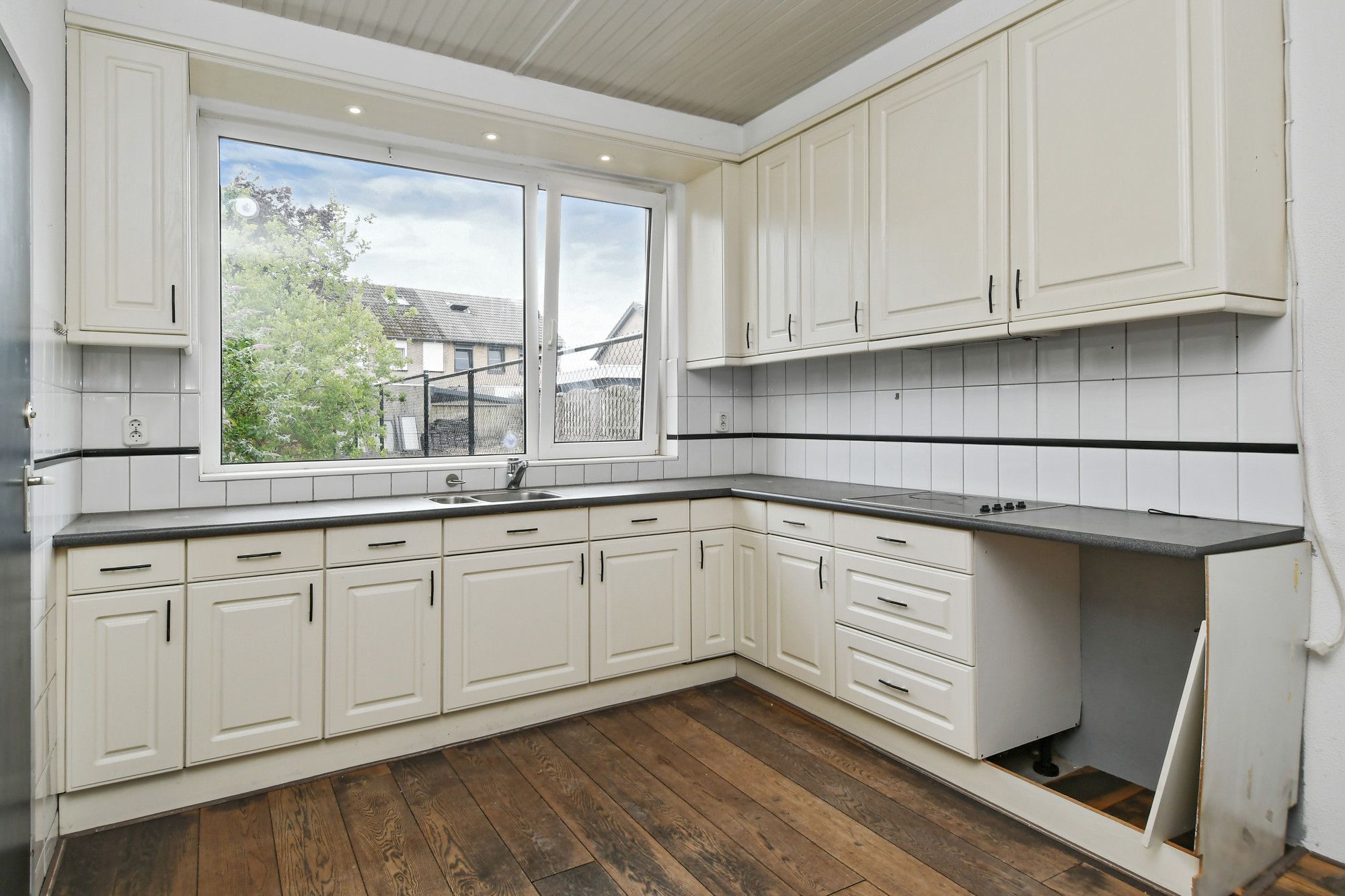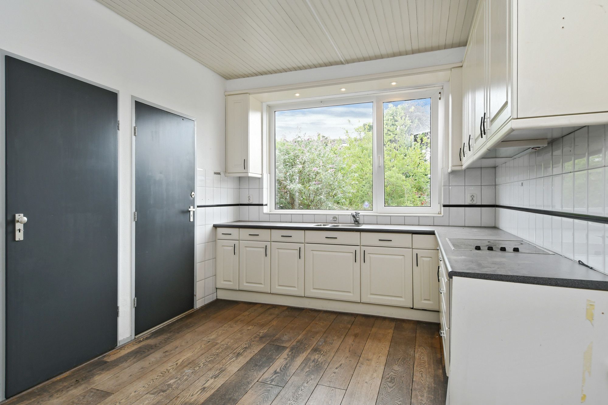 Via de oprit aan de linkerzijde kom je bij de entree van de woning. De hal geeft toegang tot de recent vernieuwde meterkast en de toiletruimte. Tevens kom je vanuit de hal in de ruime keuken welke zich in de uitbouw aan de achterzijde van de woning bevindt. De keuken heeft een praktische hoekopstelling en beschikt over een keramische kookplaat, royale kastruimte en een groot raam met uitzicht op de achtertuin. Vanuit de keuken heb je toegang tot de badkamer. Deze is volledig betegeld en heeft een douchecabine, wastafel en witgoedaansluiting. Vanuit de keuken kom je via een tussenhal en de woonkamer die gelegen is aan de voorzijde van de woning. De woonkamer heeft een laminaatvloer en biedt voldoende ruimte voor het plaatsen van een eet- en een zithoek. Tevens is vanuit de tussenhal de provisiekelder bereikbaar.