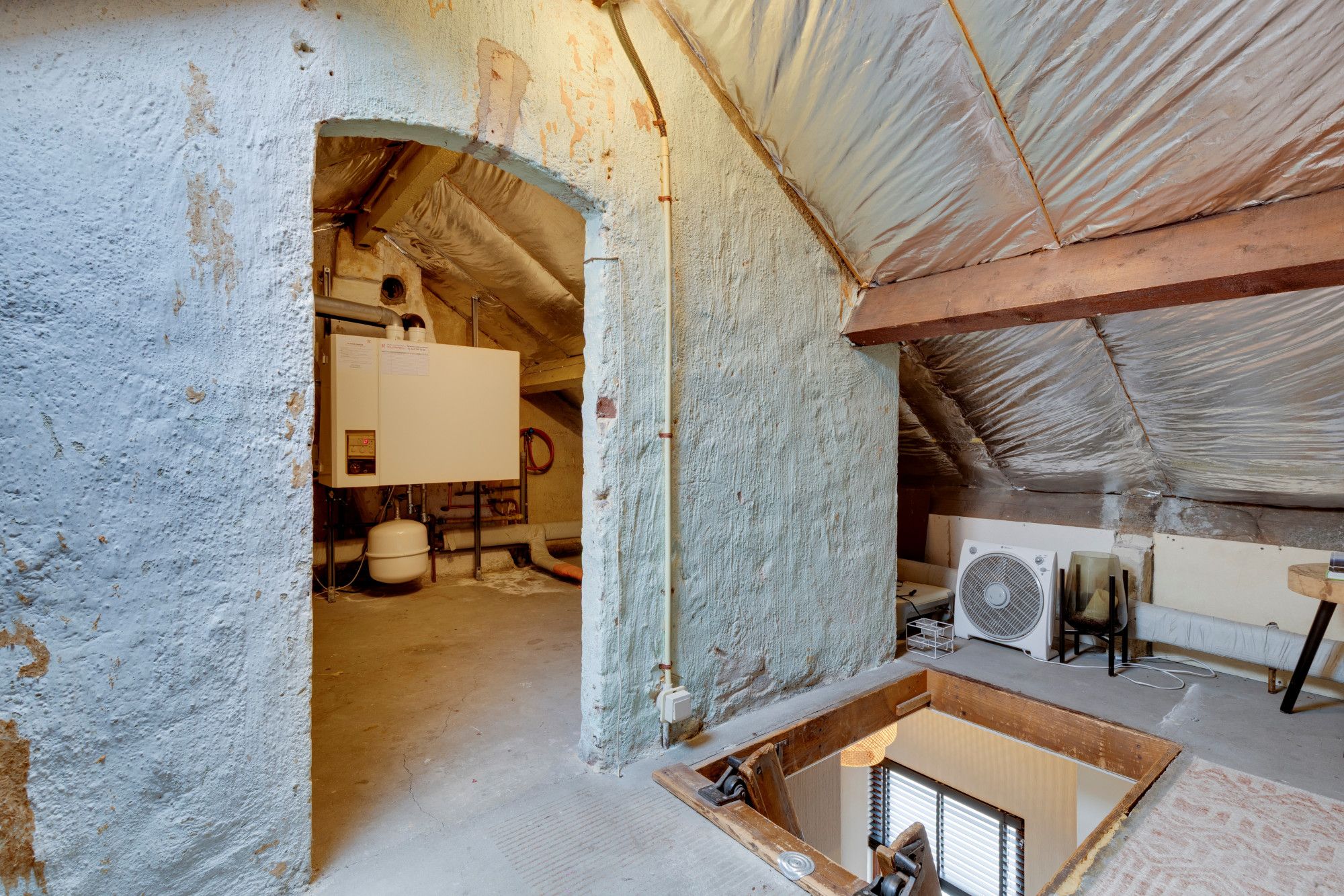 Via vlizotrap te bereiken geïsoleerde bergzolder met standplaats c.v.-combi (eigendom, bwj. 1999)