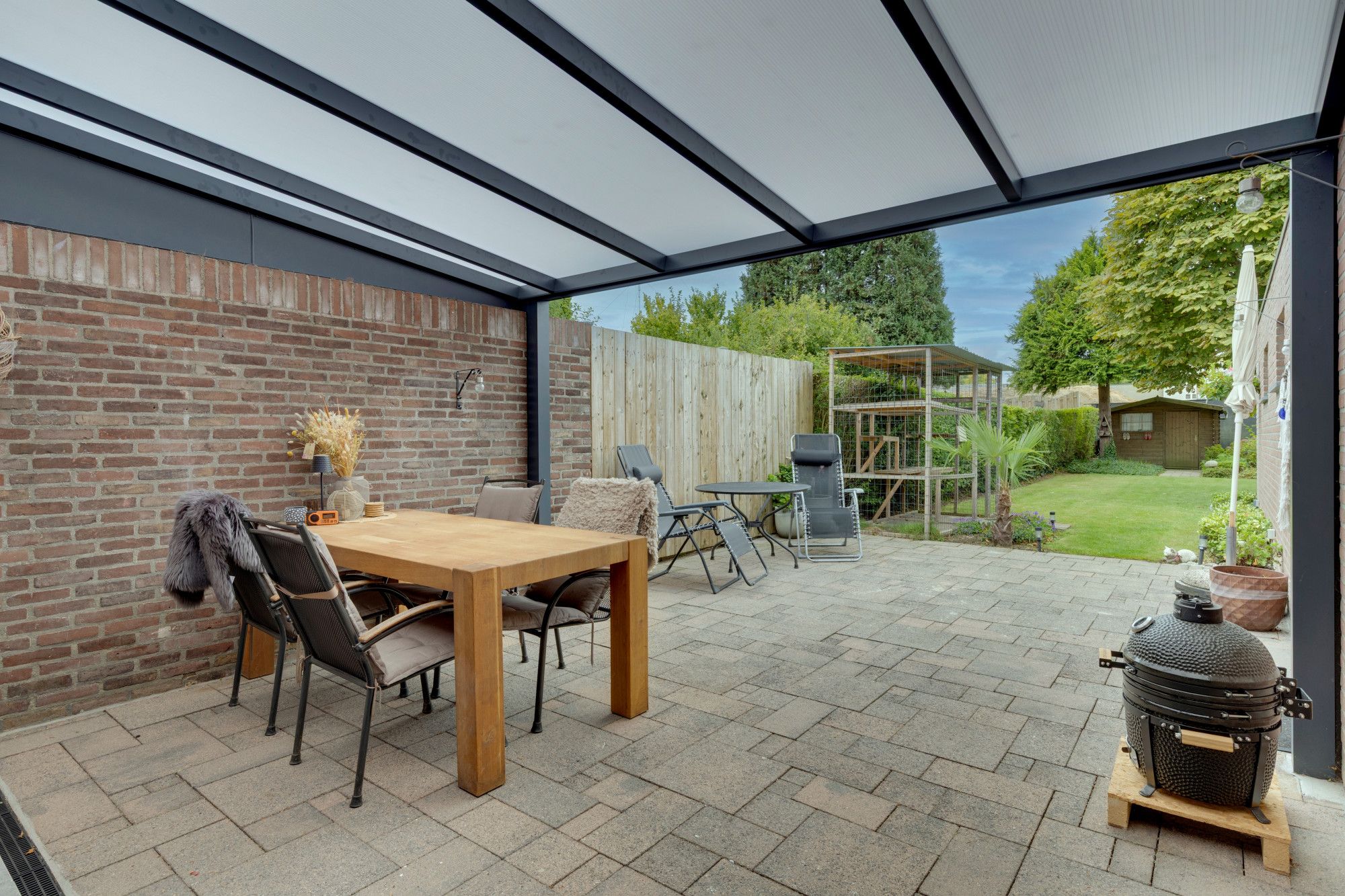 Instapklaar gerenoveerd en uitgebouwd half vrijstaand woonhuis met grote garage (incl. smeerput) en circa 30m diepe tuin met houten tuinhuis!
