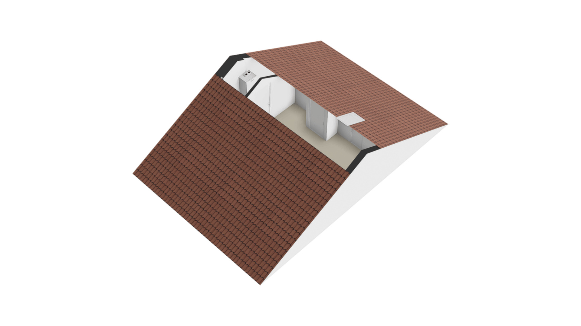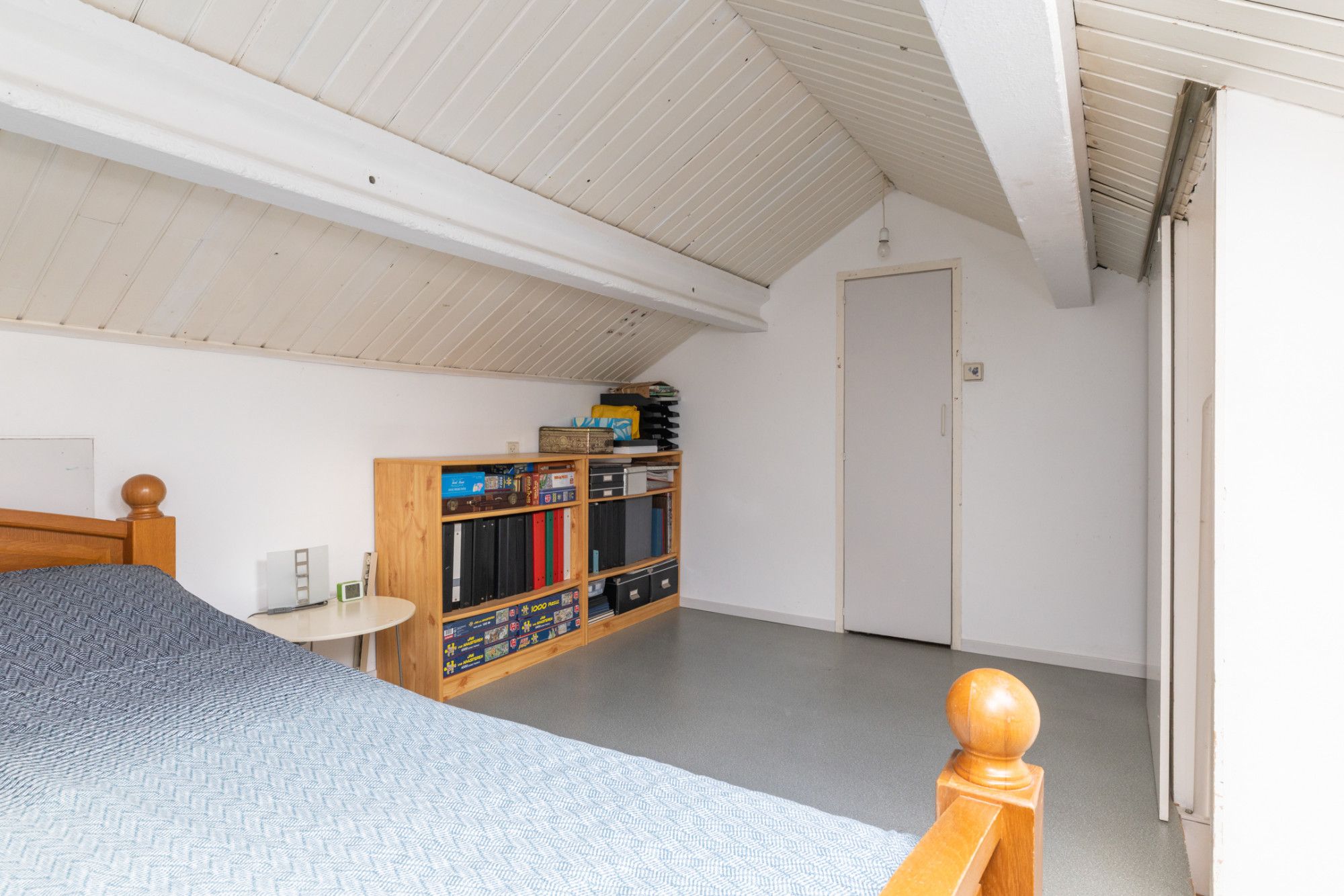 De ruime zolder verdieping is bereikbaar middels een vaste trap. Deze is in gebruik als logeerkamer. Veel extra opbergruimte in de schuinte van de dakconstructie.