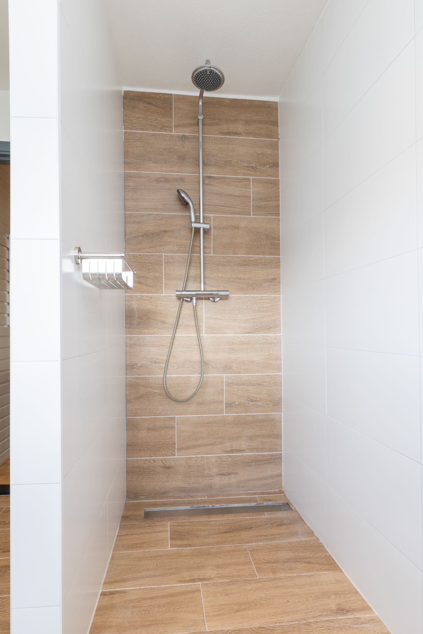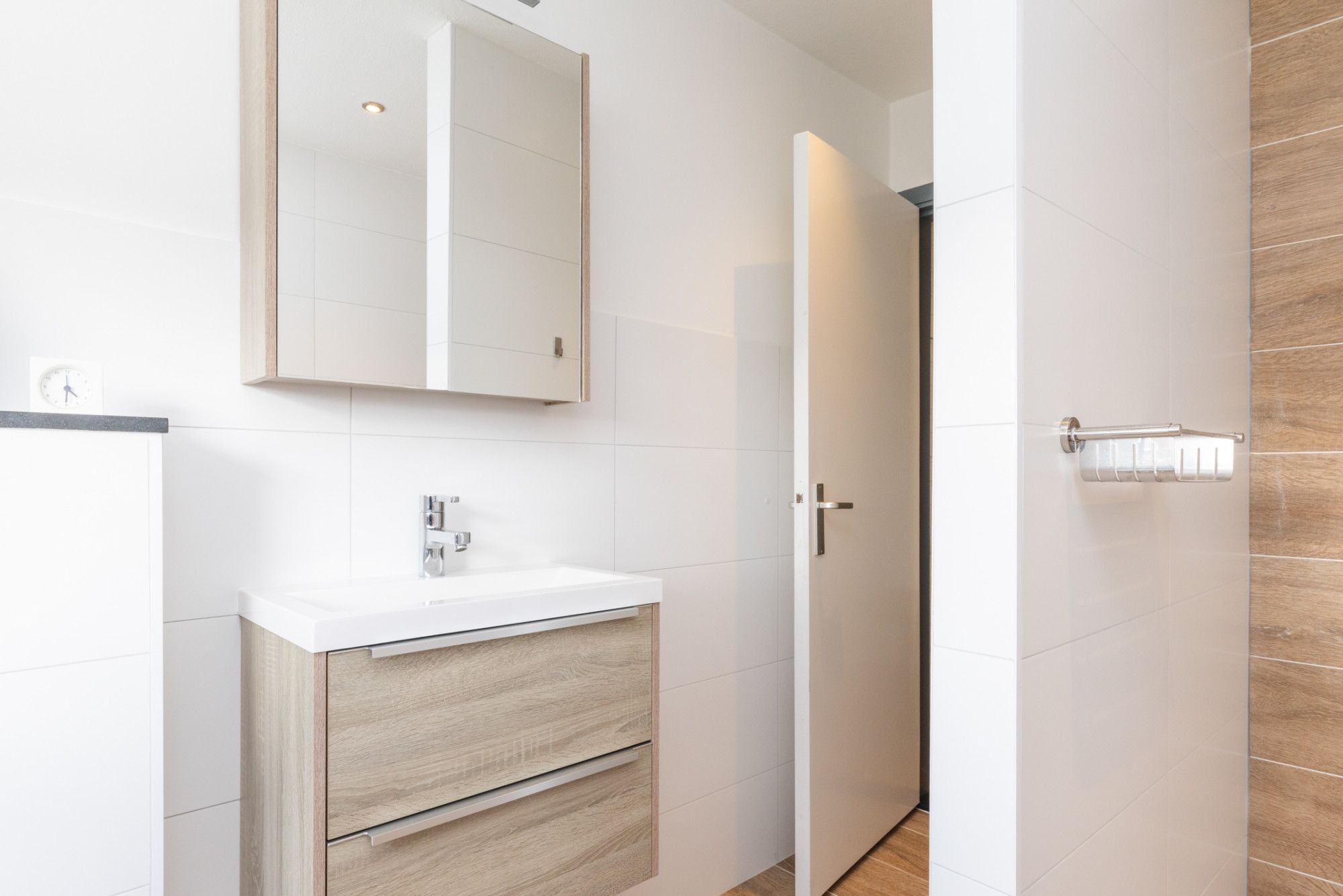 * EIGENTIJDSE BADKAMER MET INLOOPDOUCHE, WASTAFEL IN EEN BADKAMERMEUBEL EN 2E TOILET