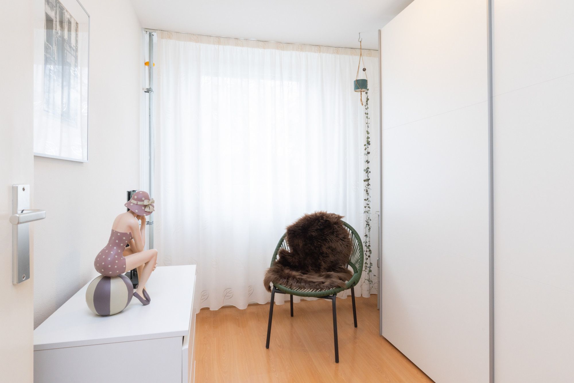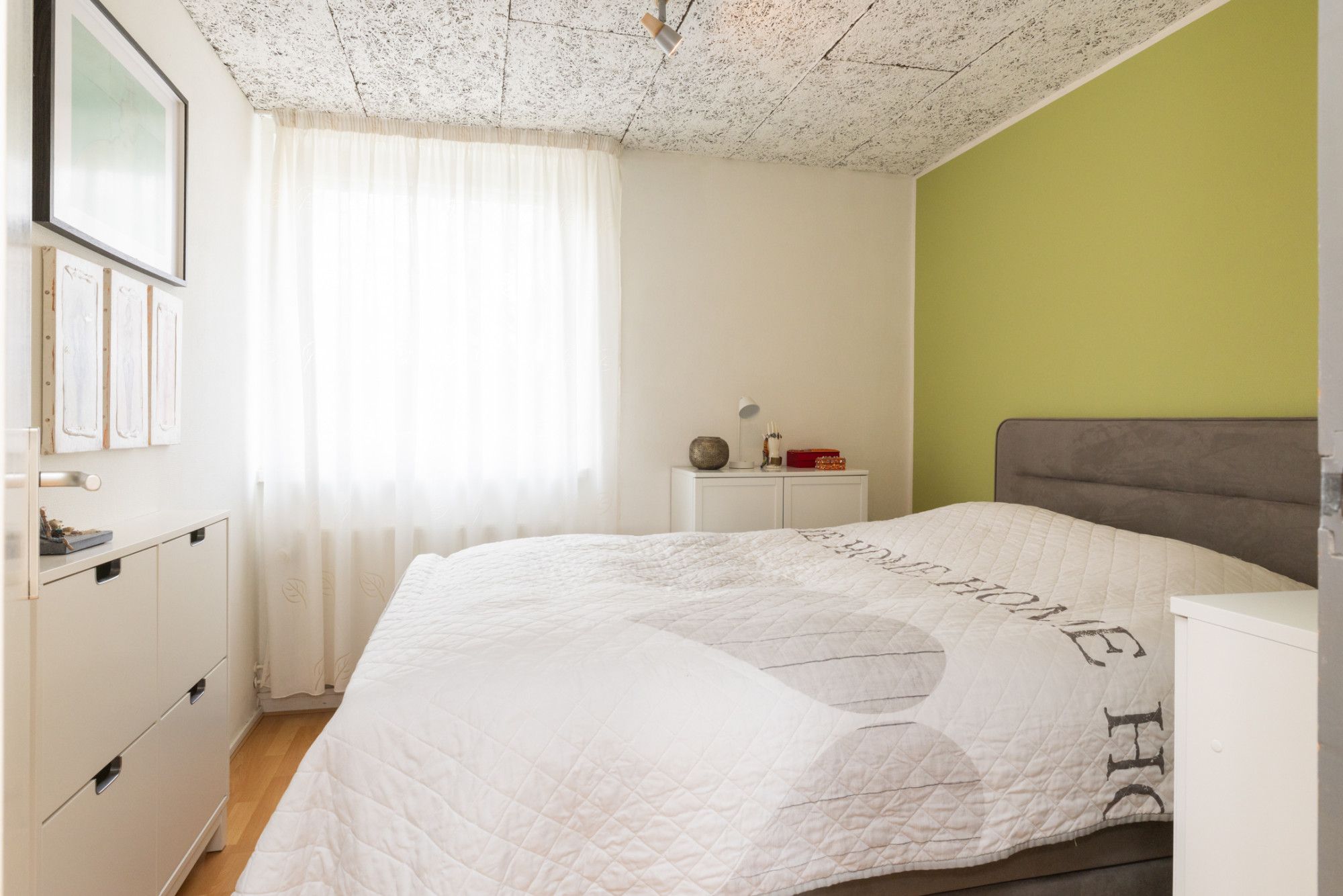 Aan de linker achterzijde van de woning gelegen hoofdslaapkamer. De naastgelegen slaapkamer is in gebruik als kleedkamer.