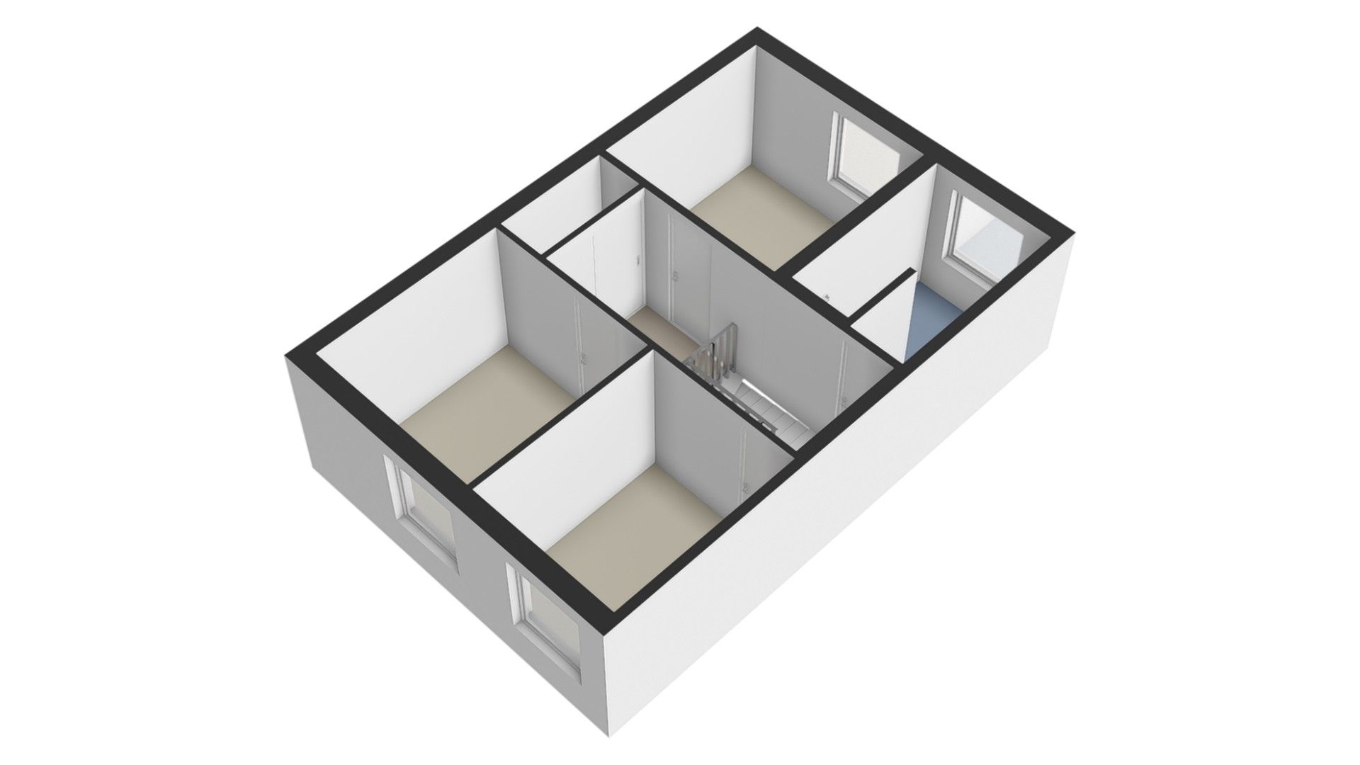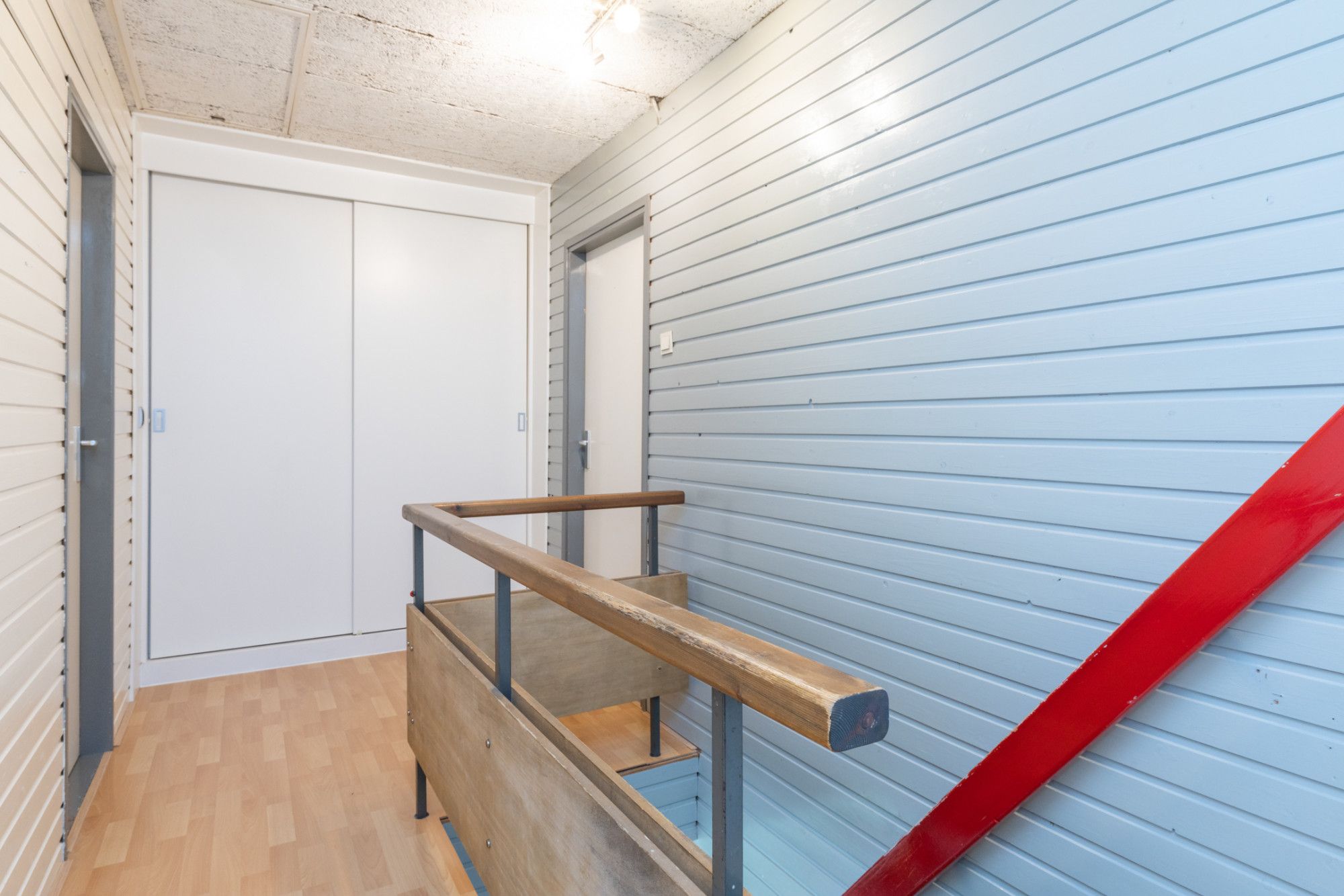 De overloop met ruime dubbele muurkast biedt toegang tot de slaapvertrekken en de badkamer.