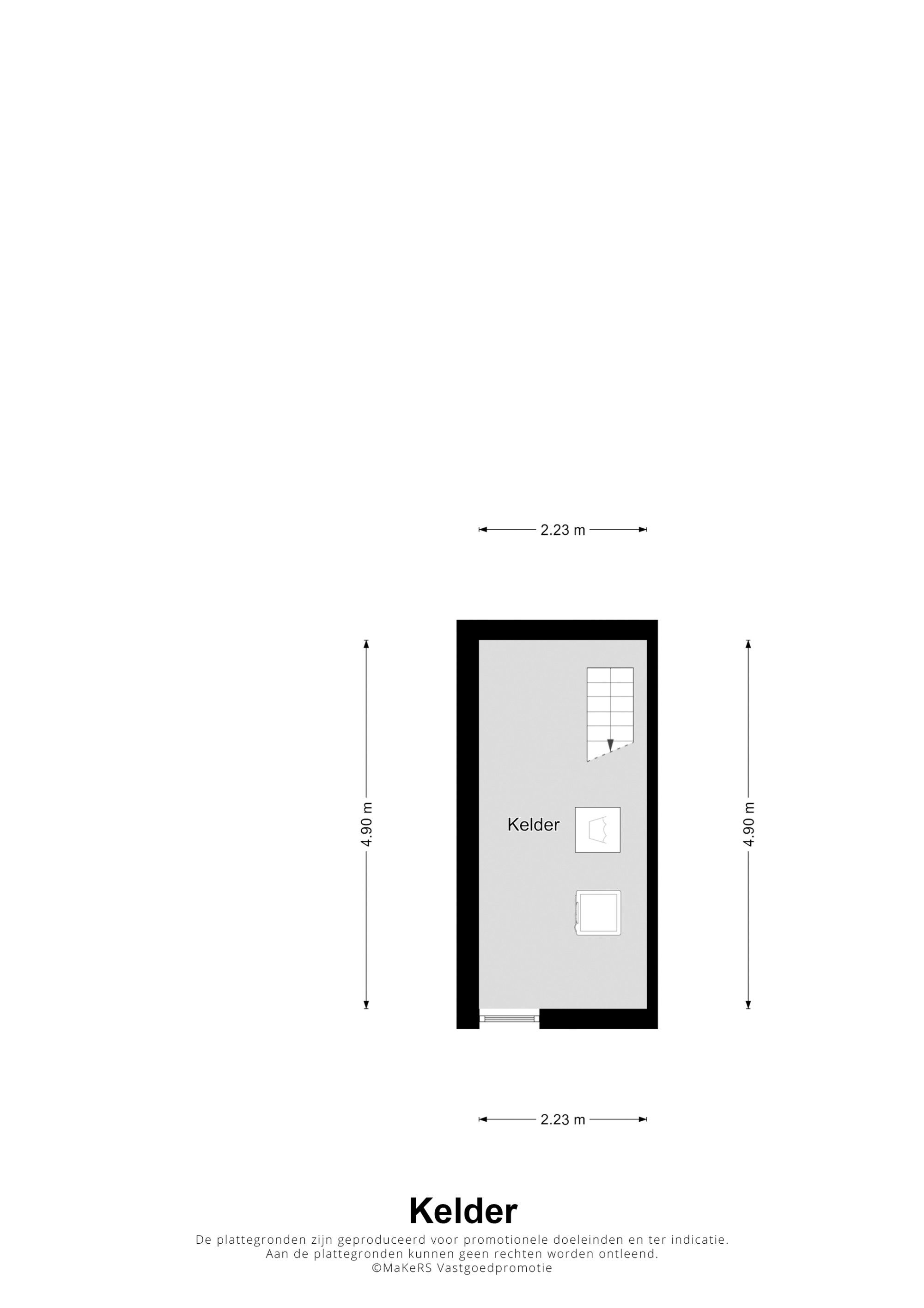 Voorraad-/provisiekelder met opslagmogelijkheden, waar geplaatst de witgoedaansluitingen voor wasmachine en droger, toegankelijk vanuit de hal/entree.