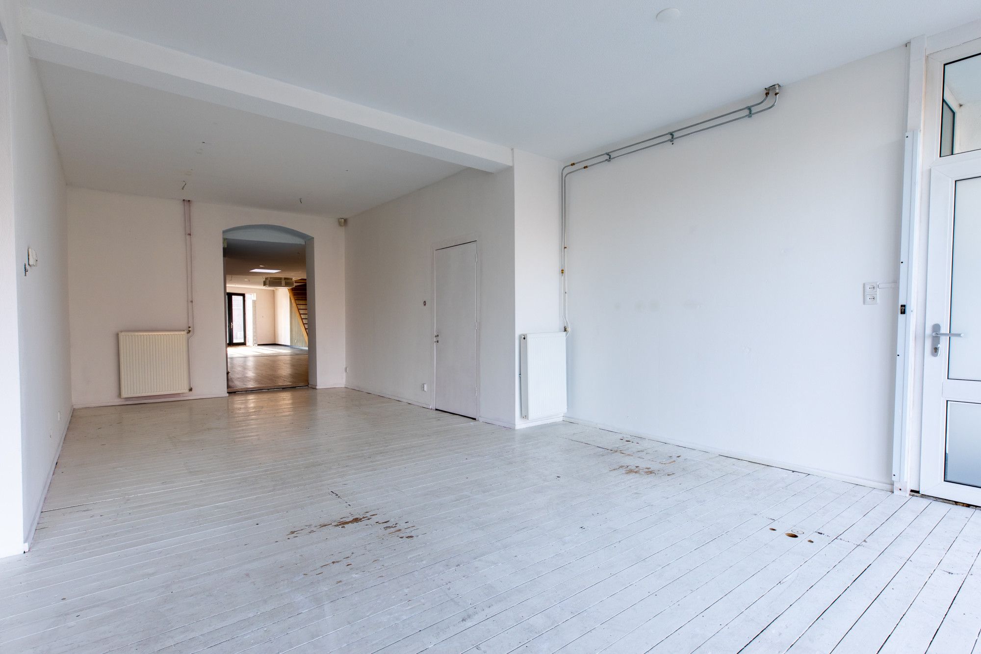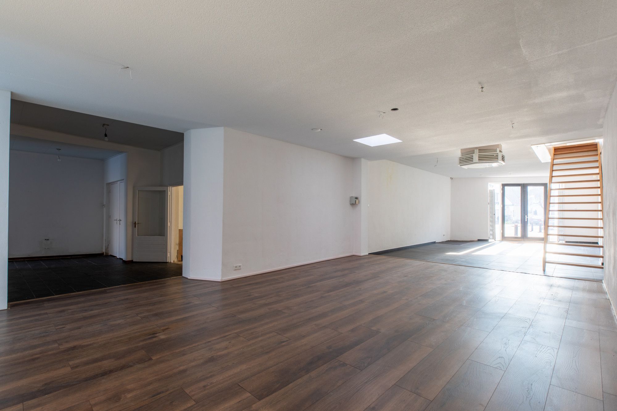 Woonkamer/winkelgedeelte 2 (15.08 x 5.65 m) voorzien van laminaat en tegelvloer. Vanuit deze ruimte is via vaste trap een gedeelte van de eerste verdieping te bereiken waar 2 slaapkamers gesitueerd zijn.