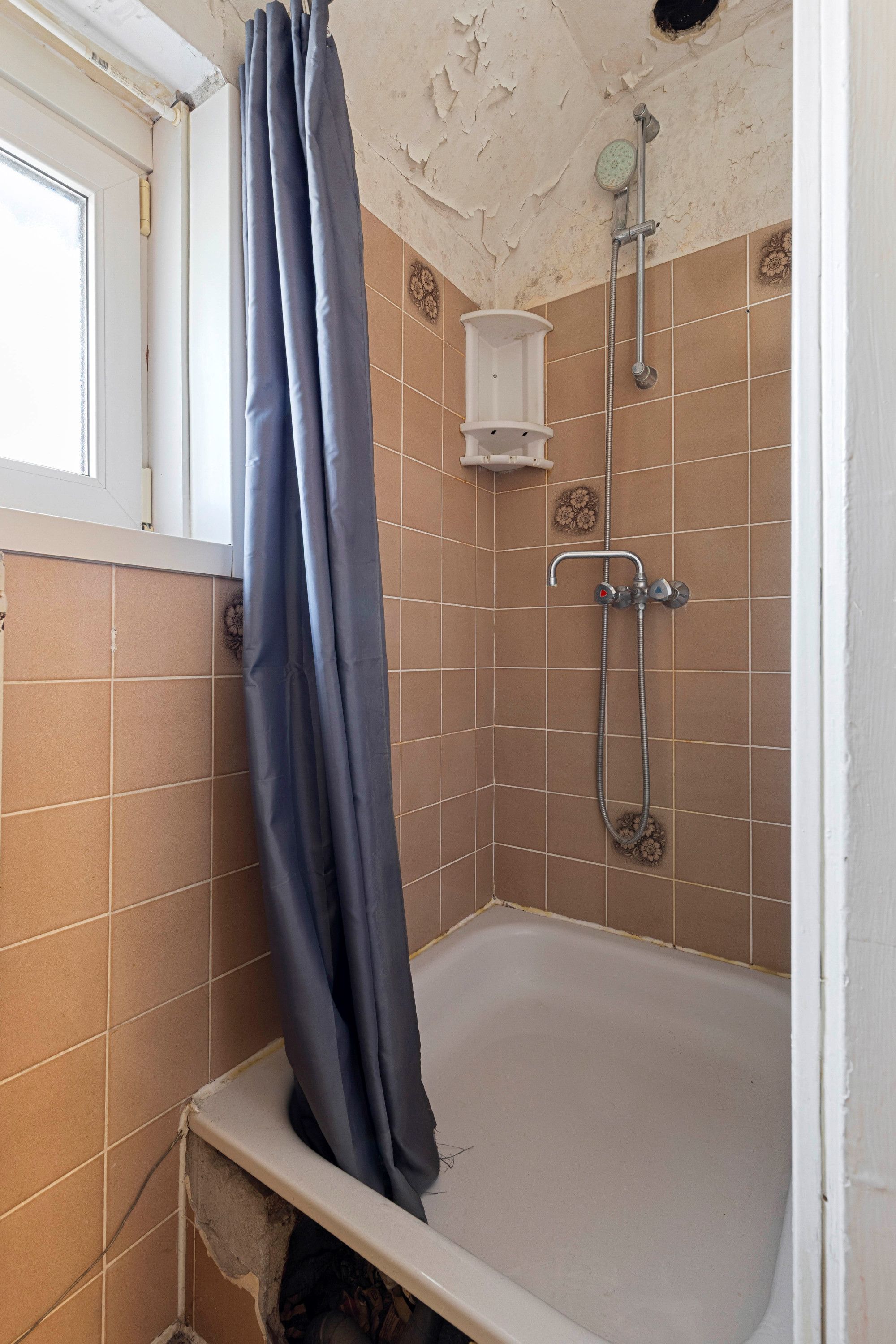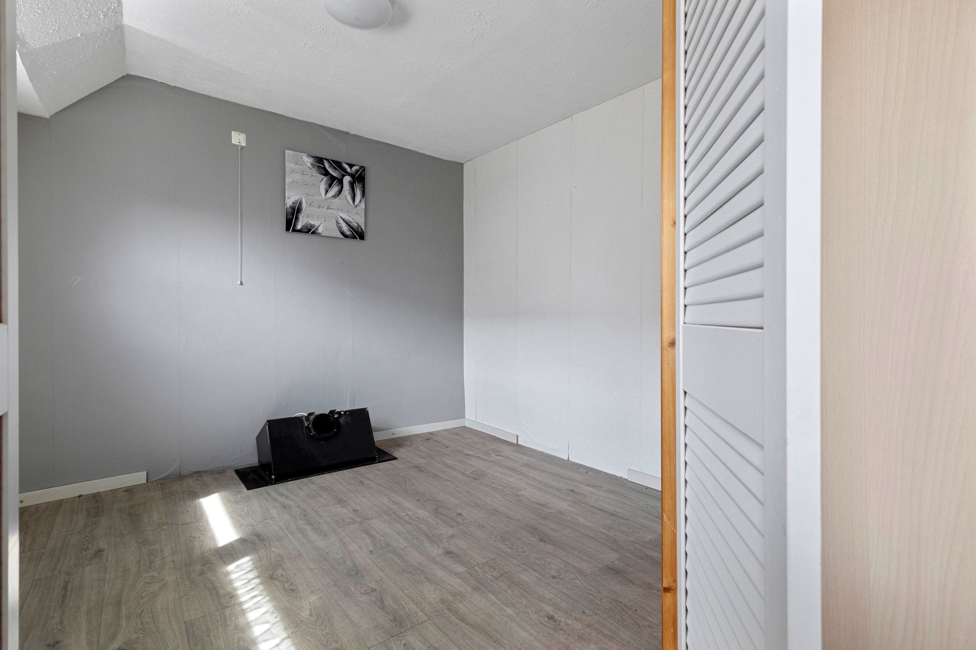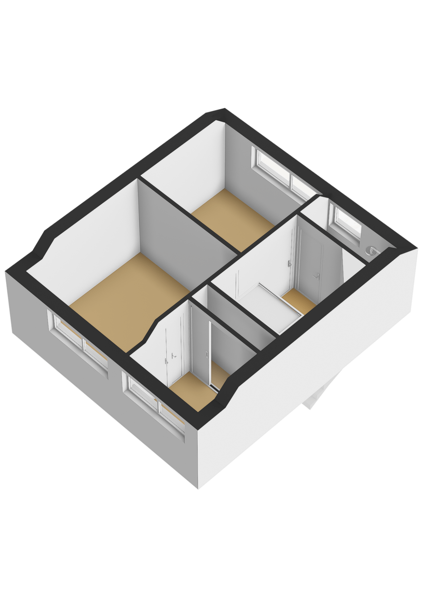 Overloop. Twee slaapkamers. Mogelijkheidtot 3 kamers. Kleine badkamer. Mogelijkheid voor grotere badkamer. De eerste verdieping dient naar eigen inzicht afgewerkt te worden.