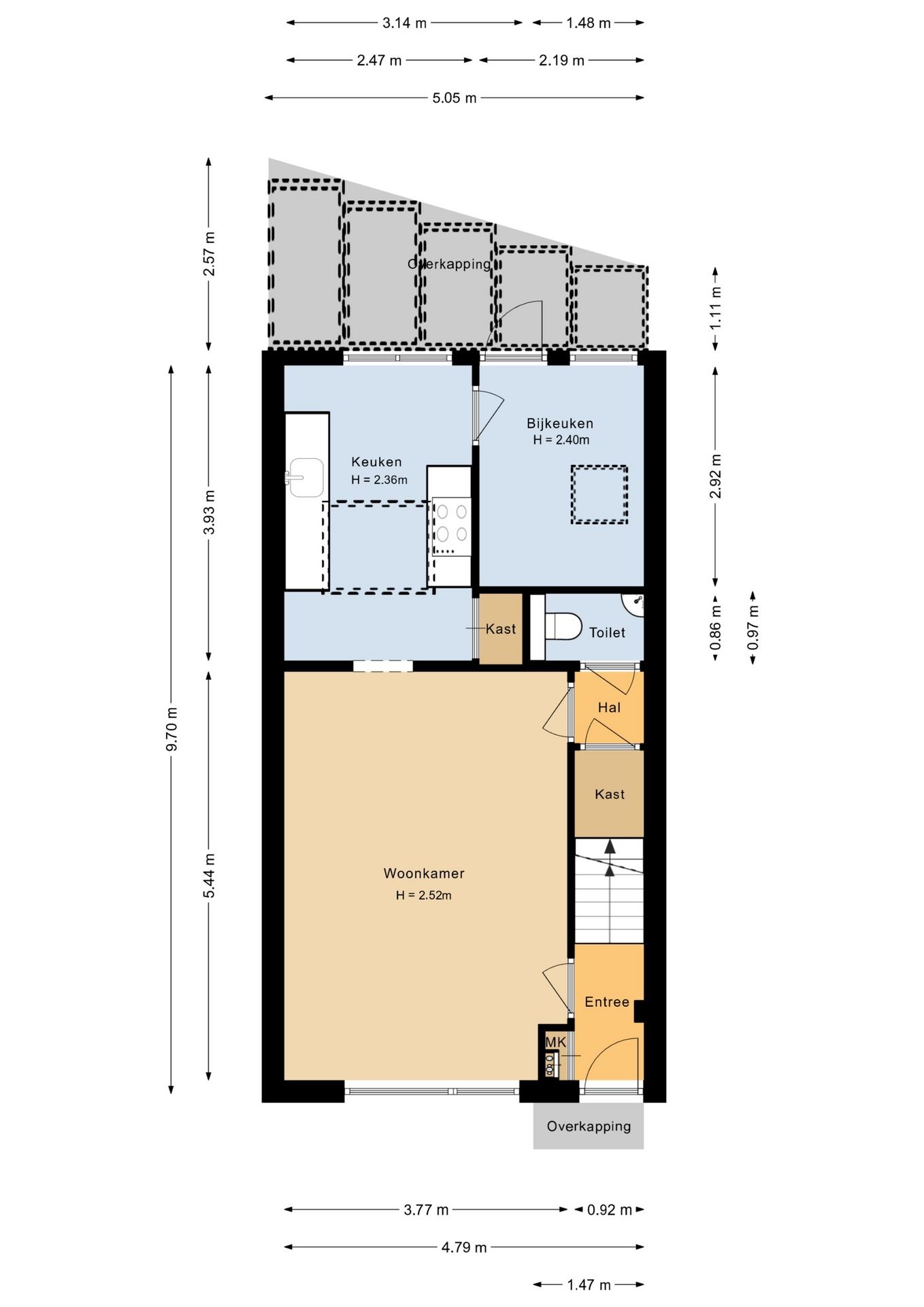 - Begane grond grotendeels voorzien van grindvloer en nieuw stucwerk