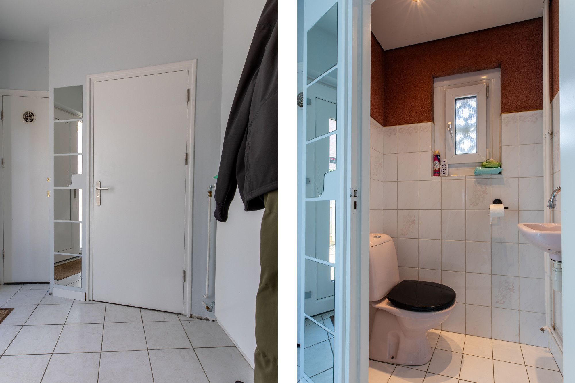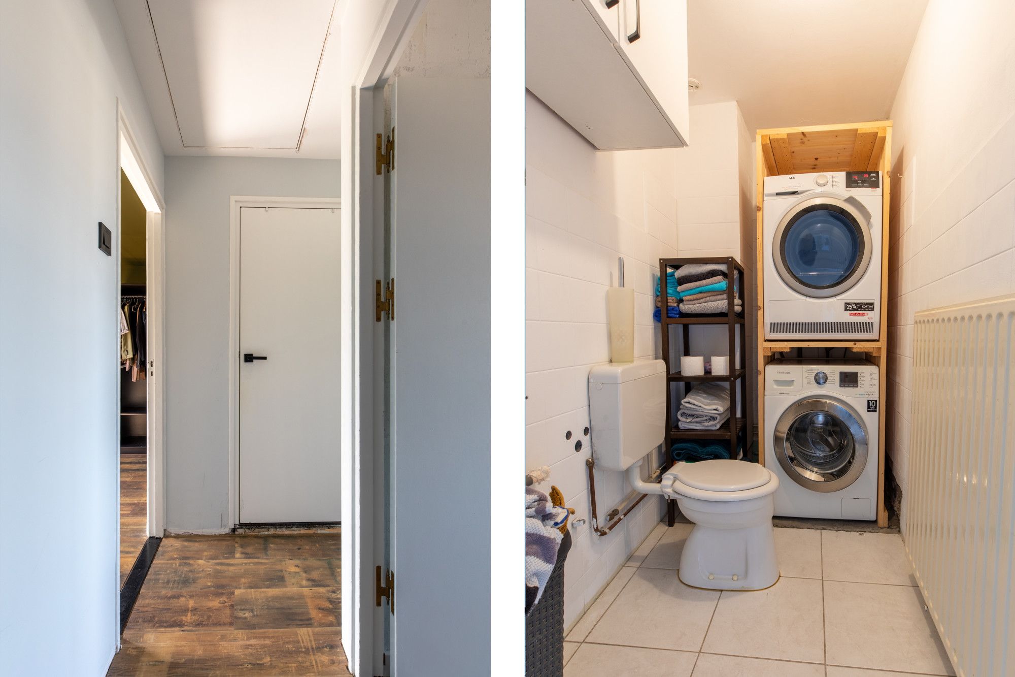 Wasruimte/toilet (2.38 x 1.29 m) met opstelling voor de witgoed apparatuur en toilet.
