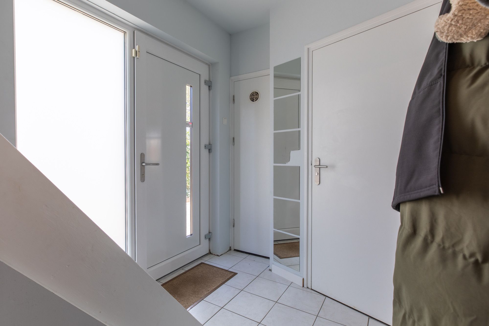 Ontvangsthal (2.19 x 2.07 m) voorzien van tegelvloer, met moderne vernieuwde meterkast en trap naar eerste verdieping.