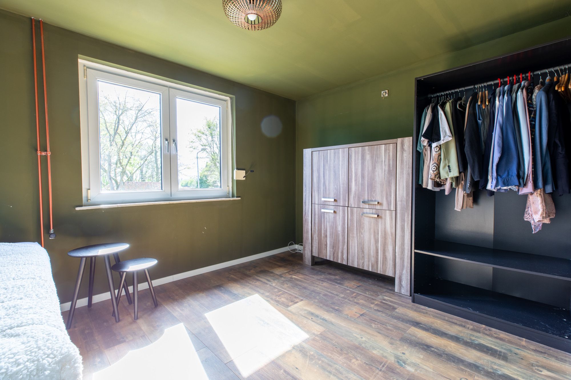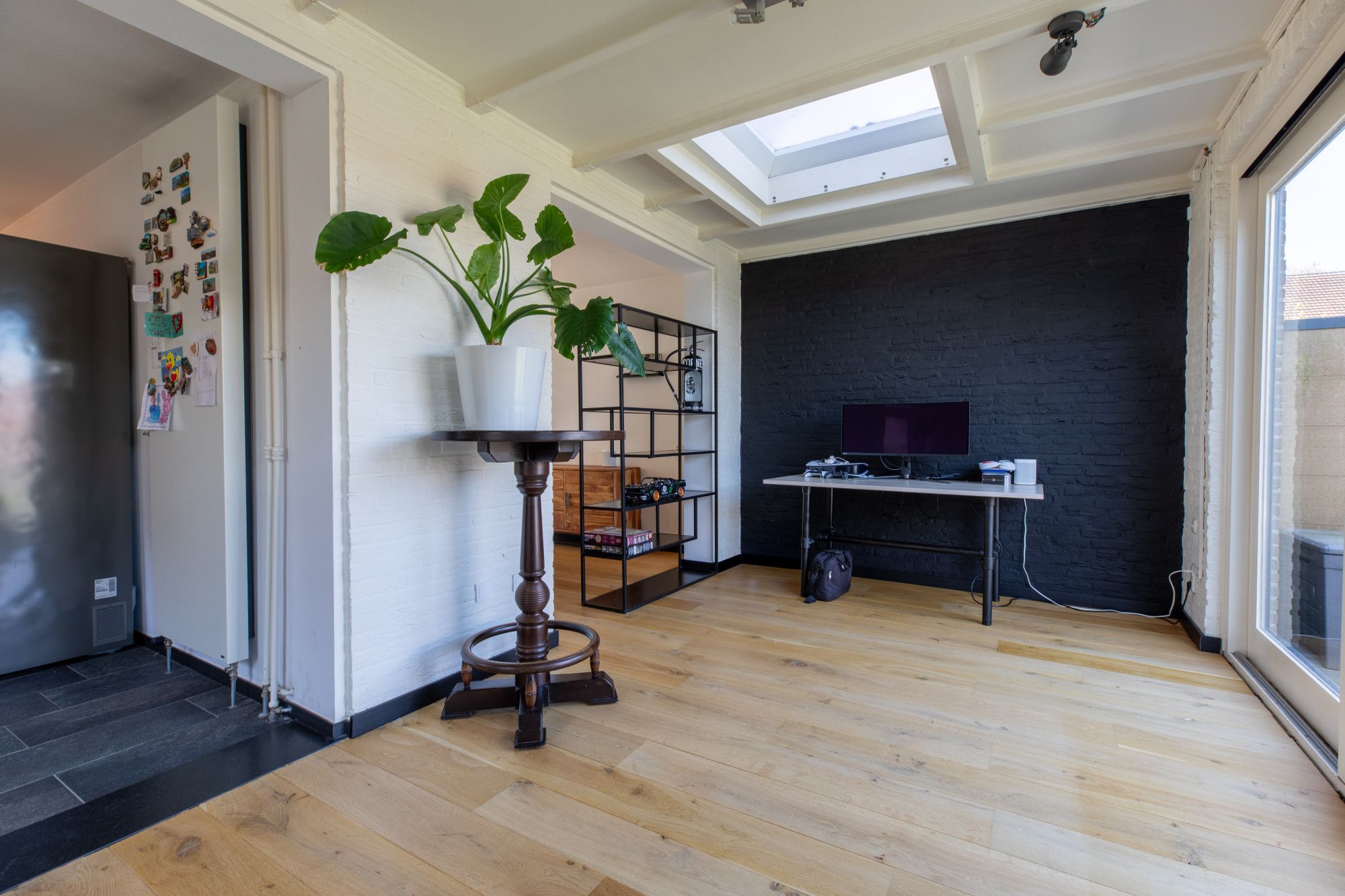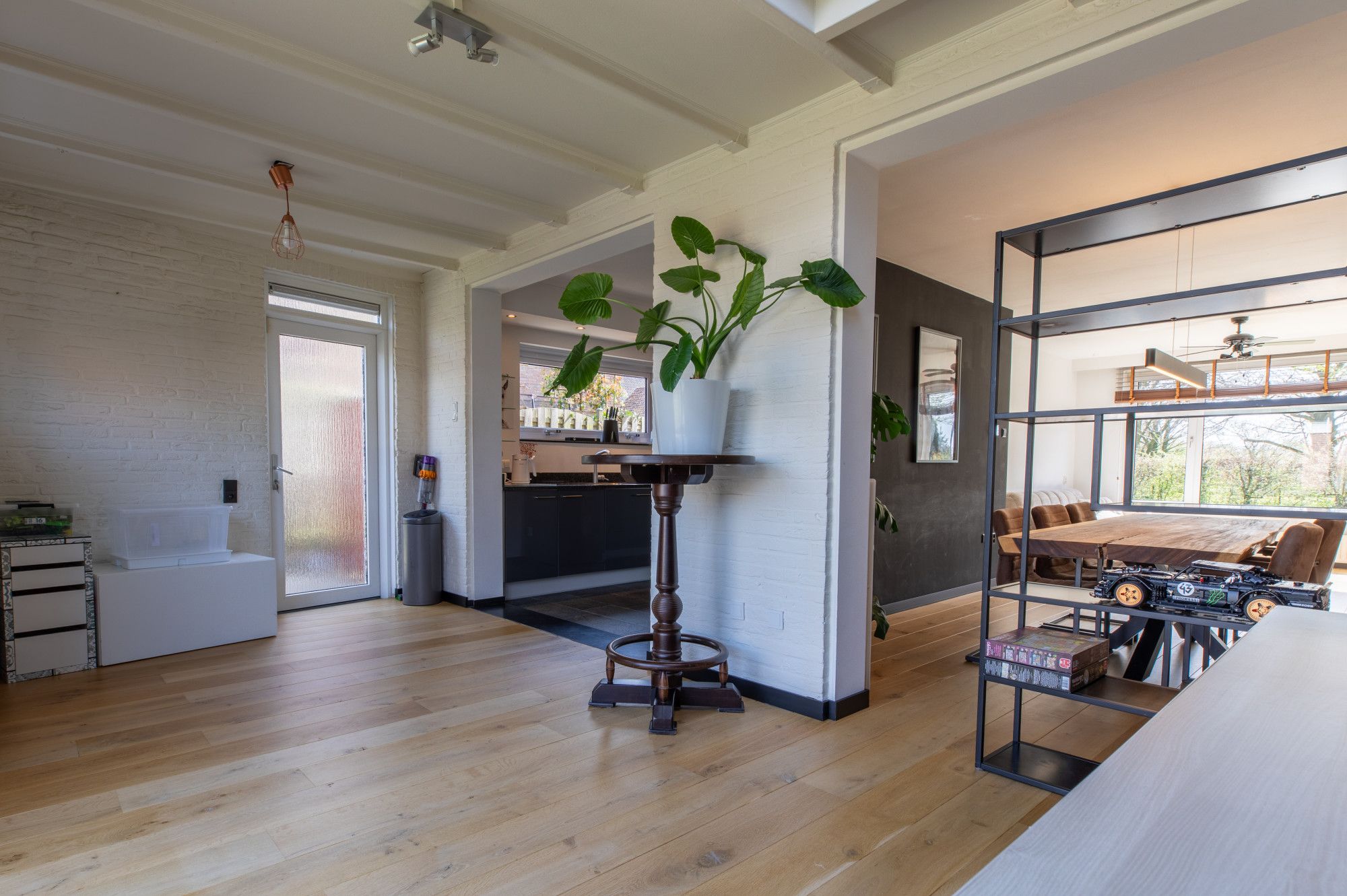Aanbouw (5.80 x 2.89 m) voorzien van parketvloer en schuifpui naar het terras.