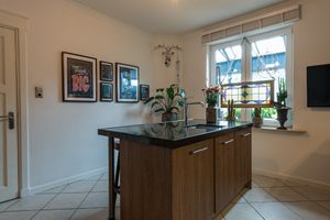 Gesloten leef keuken (3.78mx3.99m) voorzien van plavuizenvloer, en moderne installatie met kookeiland, granieten werkbladen inclusief inbouwapparatuur, te weten, oven, magnetron, inductiekookplaat, vaatwasser en wasemkap.