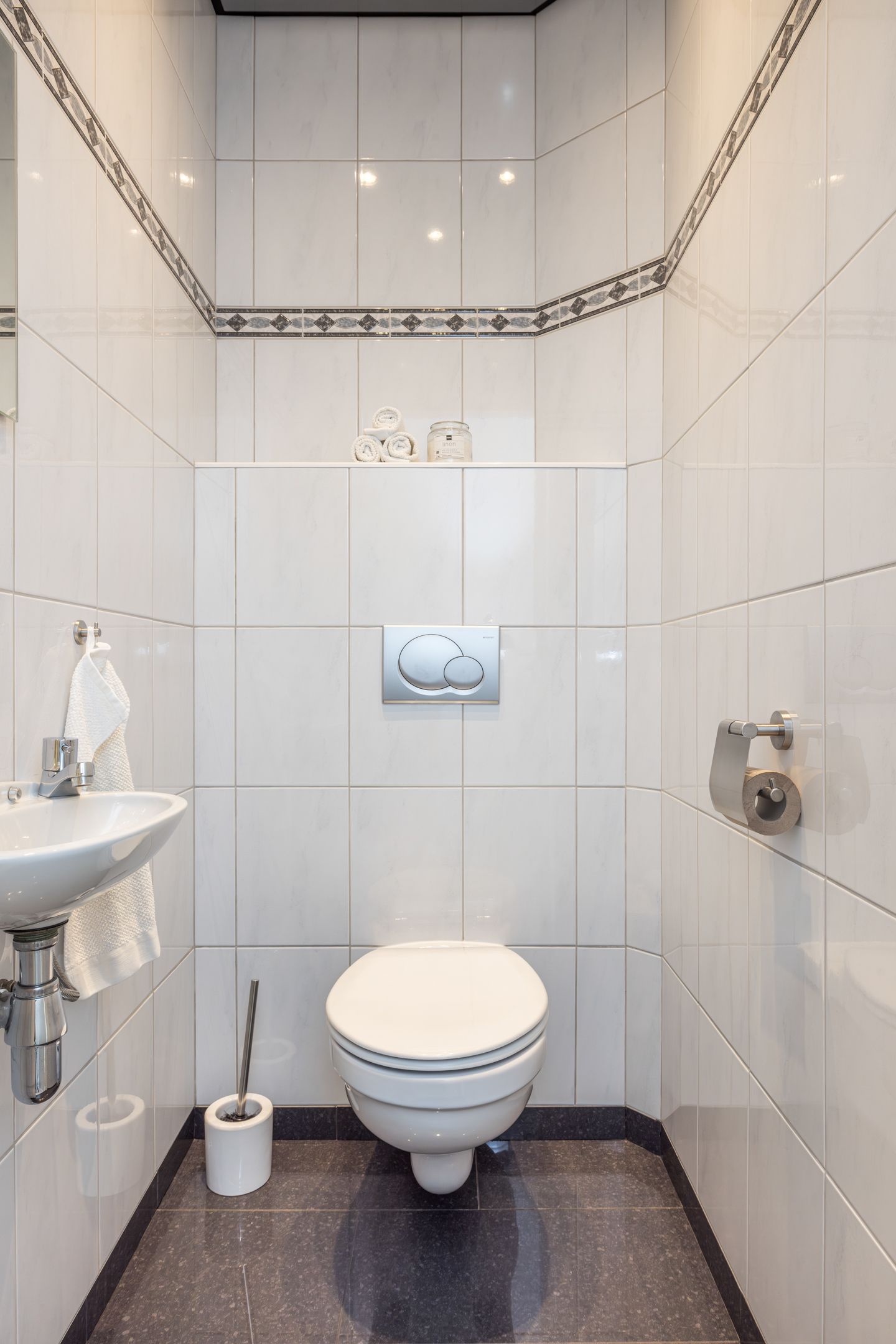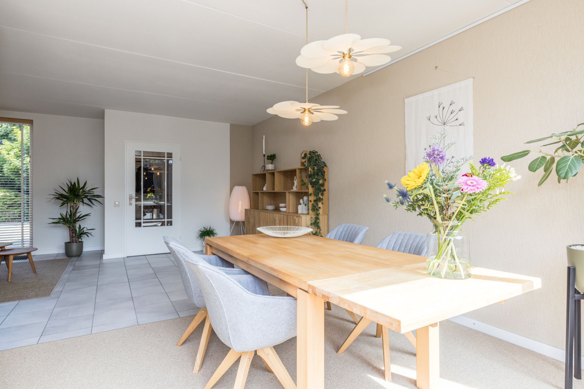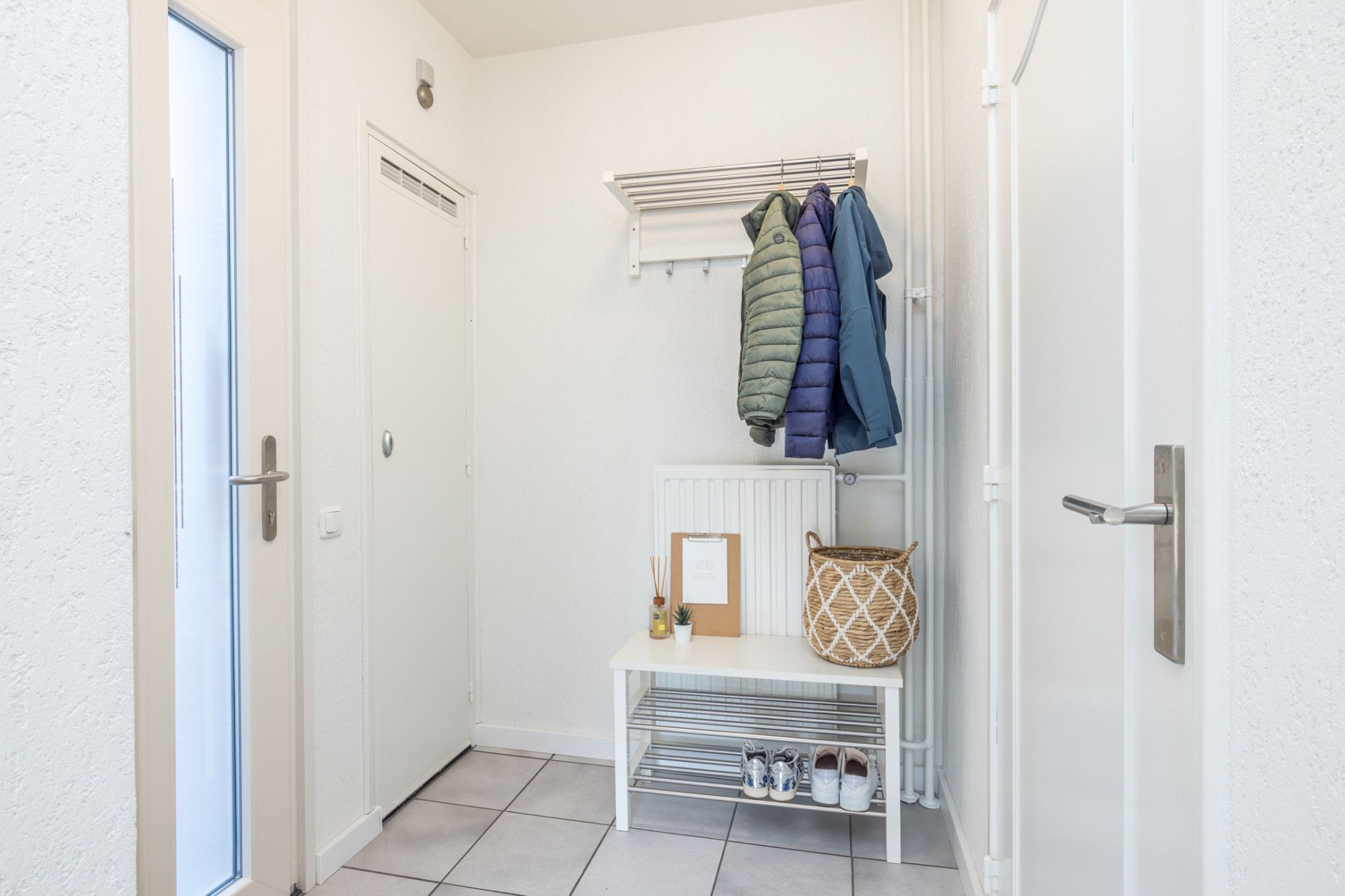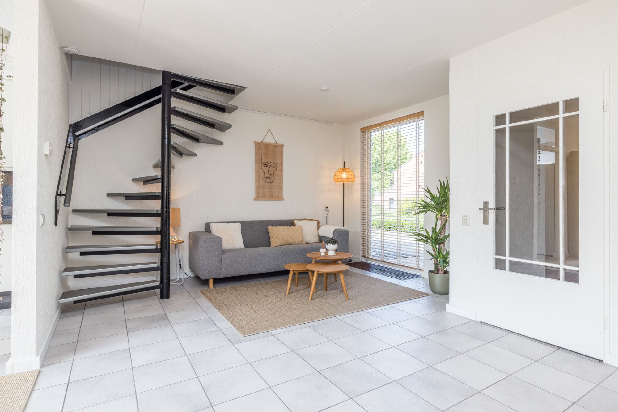 Entree- hal met moderne toiletruimte, v.v. zwevend closet en fonteintje, en inpandige berging (1,90 m x 1,26 m), v.v. een wateraansluiting. De hal biedt toegang tot riante living (ca. 33 m2), verdeeld in een woon- en eetkamer v.v. tegels. Vanuit de eetkamer heeft men een open verbinding naar de keuken. De half open keuken (2,86 m x 2,06 m) is v.v. de navolgende apparatuur; 4-pits keramische kookplaat, combi-oven, vaatwasser en afzuigkap. Middels schuifpui heeft men vanuit de living toegang tot de tuin.