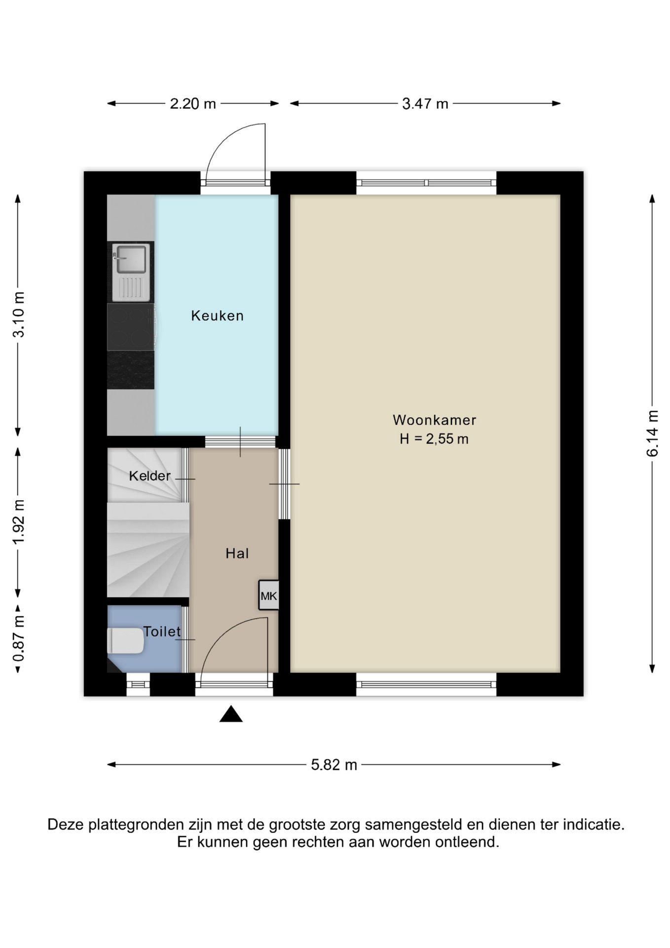 Alle door ons kantoor verstrekte informatie omtrent onroerende zaken, moet beschouwd worden als een uitnodiging om in onderhandeling te treden, en is geheel vrijblijvend! Alle vermelde maten en afmetingen zijn slechts bij benadering. Aan deze beperkte info kunnen geen rechten worden ontleend. Indien in enige documentatie of op enige website informatie staat die niet overeen komt met de werkelijkheid, dan geldt de feitelijke situatie waarin de woning zich bevindt, zoals koper deze tijdens de bezichtiging heeft kunnen waarnemen, en wordt de woning in deze feitelijke situatie/staat verkocht. Een (eventueel) bijgevoegde plattegrond dient uitsluitend als globale indicatie/visualisatie. Hieraan kunnen uitdrukkelijk geen rechten worden ontleend.