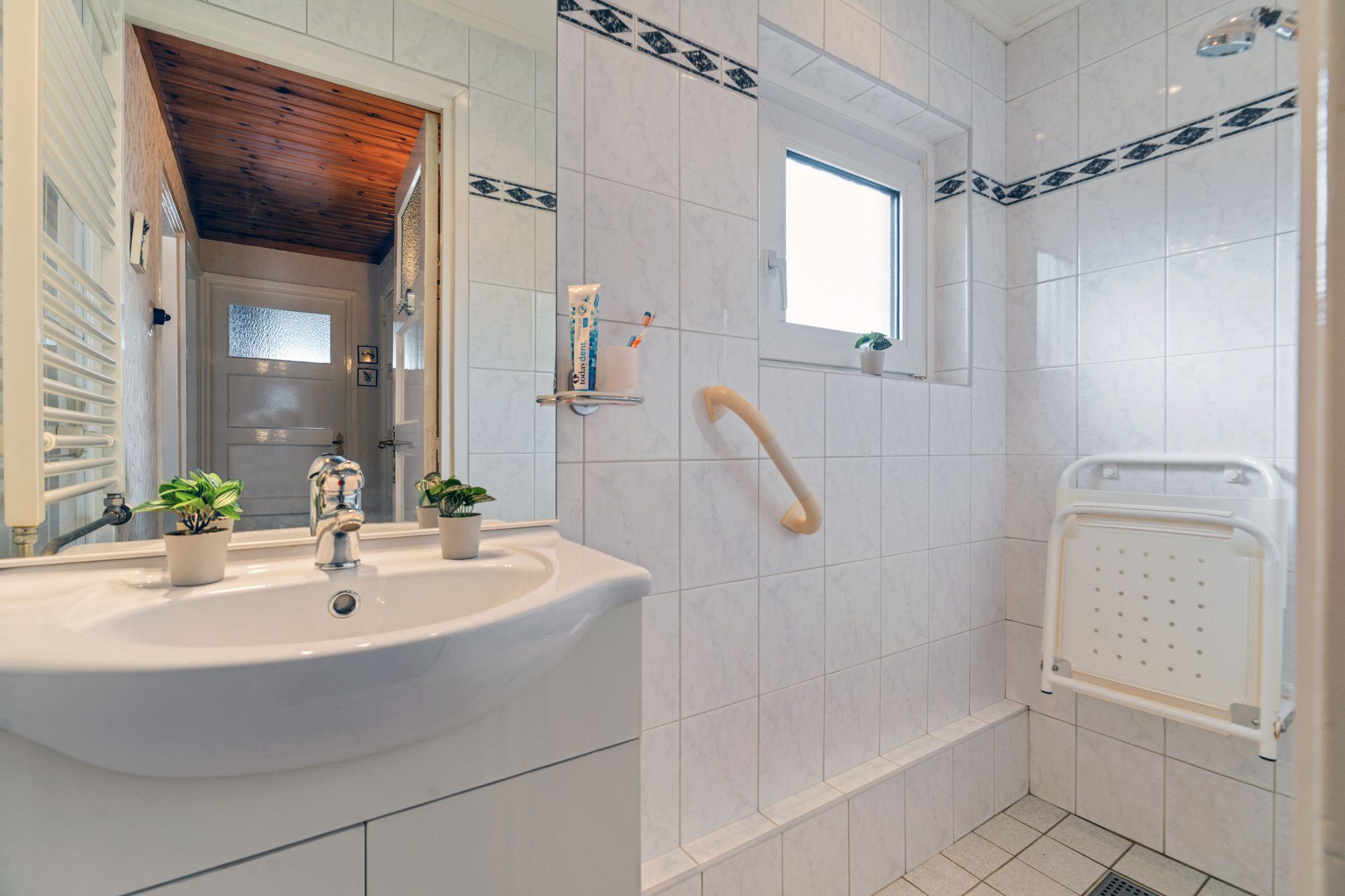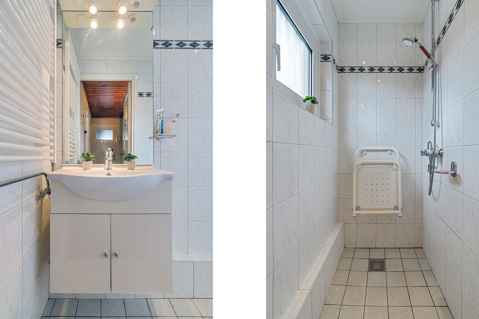 Vanuit de hal betreedt u de 1e verdieping, waar drie slaapkamers en de badkamer zijn gesitueerd. Elke slaapkamer is goed onderhouden en voorzien van vloerbedekking. Daarnaast is er voldoende mogelijkheid voor het plaatsen van een bed en bureau of opbergmeubel. Desgewenst kan een slaapkamer als hobby- of werkruimte fungeren. Grenzend aan de overloop bevindt zich de badkamer. Deze is volledig betegeld, voorzien van een inloopdouche, wastafel met spiegel, handdoekradiator en opbergmeubel. Hiermee is de badkamer instap klaar en van alle gemakken voorzien.