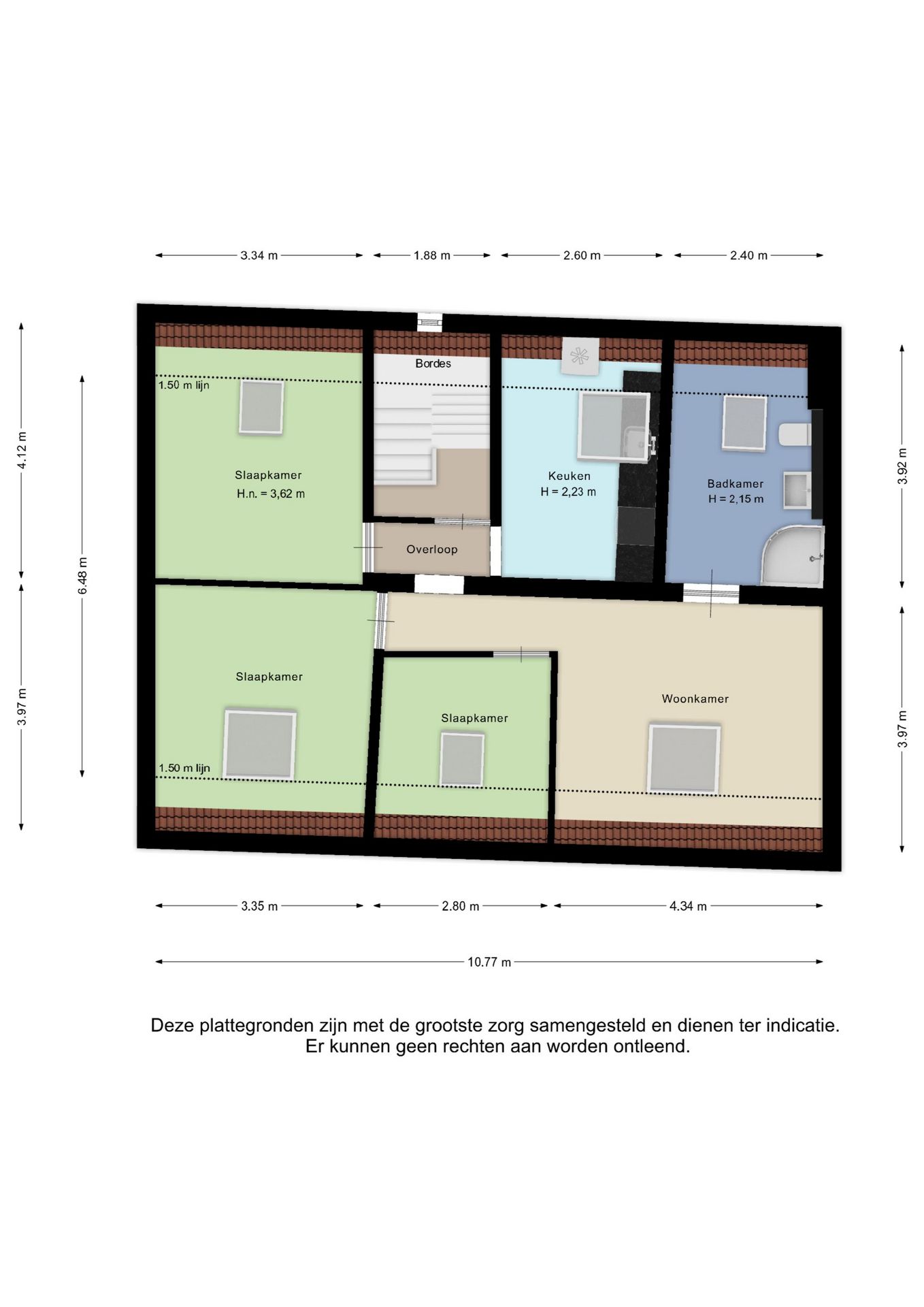 Alle door ons kantoor verstrekte informatie omtrent onroerende zaken, moet beschouwd worden als een uitnodiging om in onderhandeling te treden, en is geheel vrijblijvend! Alle vermelde maten en afmetingen zijn slechts bij benadering. Aan deze beperkte info kunnen geen rechten worden ontleend. Indien in enige documentatie of op enige website informatie staat die niet overeen komt met de werkelijkheid, dan geldt de feitelijke situatie waarin de woning zich bevindt, zoals koper deze tijdens de bezichtiging heeft kunnen waarnemen, en wordt de woning in deze feitelijke situatie/staat verkocht. Een (eventueel) bijgevoegde plattegrond dient uitsluitend als globale indicatie/visualisatie. Hieraan kunnen uitdrukkelijk geen rechten worden ontleend.