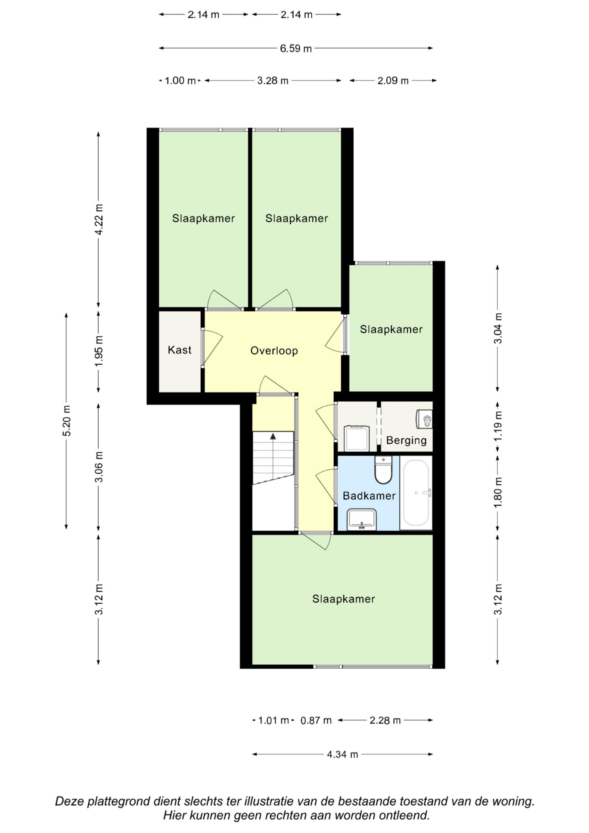 Overloop met praktische bergkast en toegang tot 4 slaapkamers en badkamer.