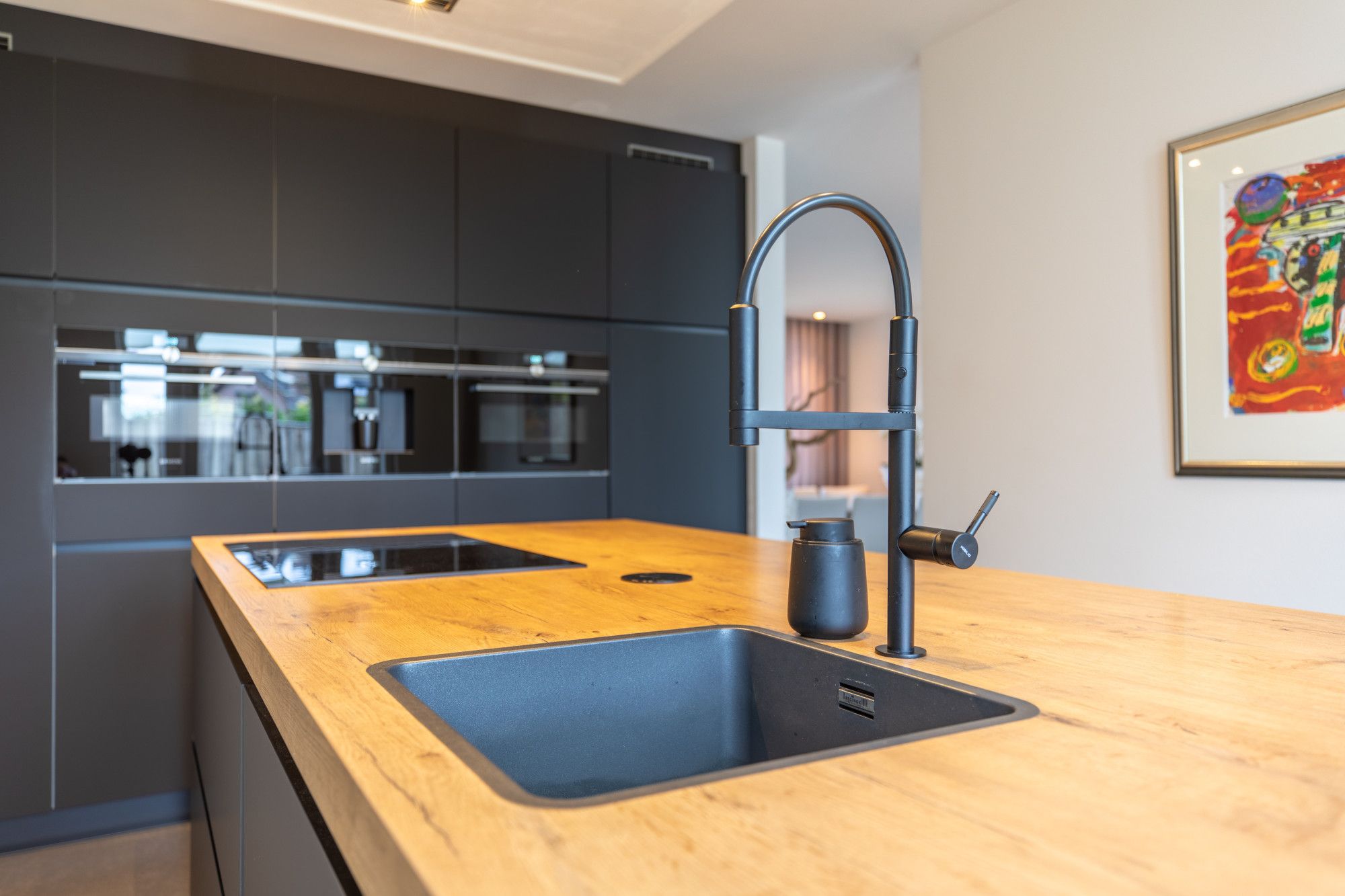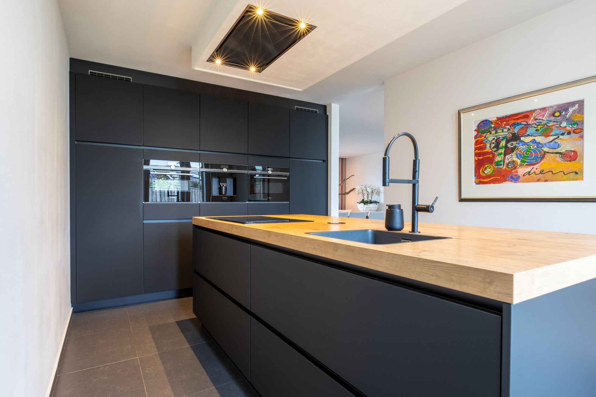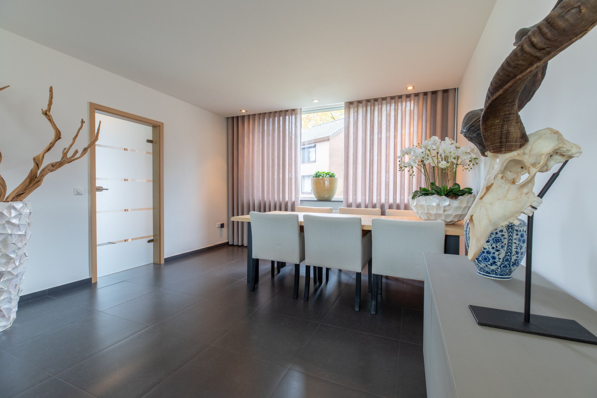 Via de ruime ontvangsthal, met aangrenzend de meterkast, het gastentoilet en de garderobe/ berging, gaat u naar de woonkamer. De woonkamer is circa 8,20m x 3,89m groot en heeft aan de achterzijde een grote schuifpui naar de tuin. De keuken is ingericht met een schitterende keuken voorzien van alle gewenste apparatuur.