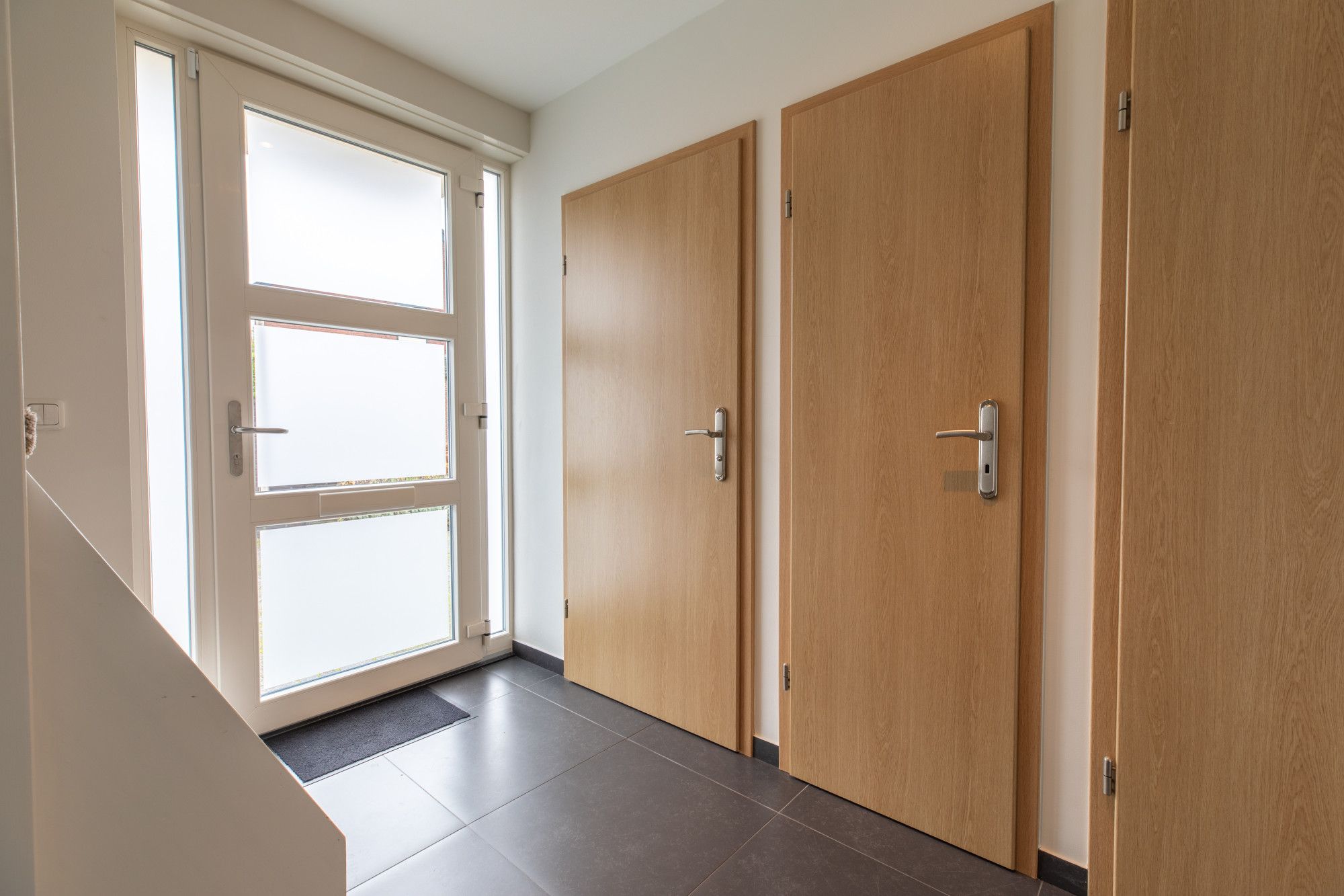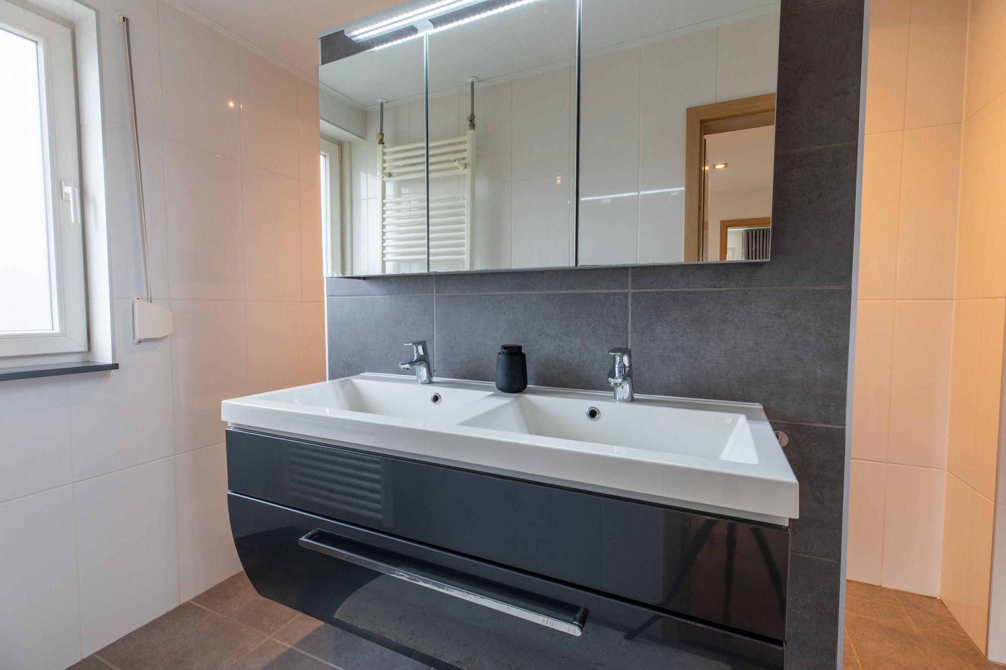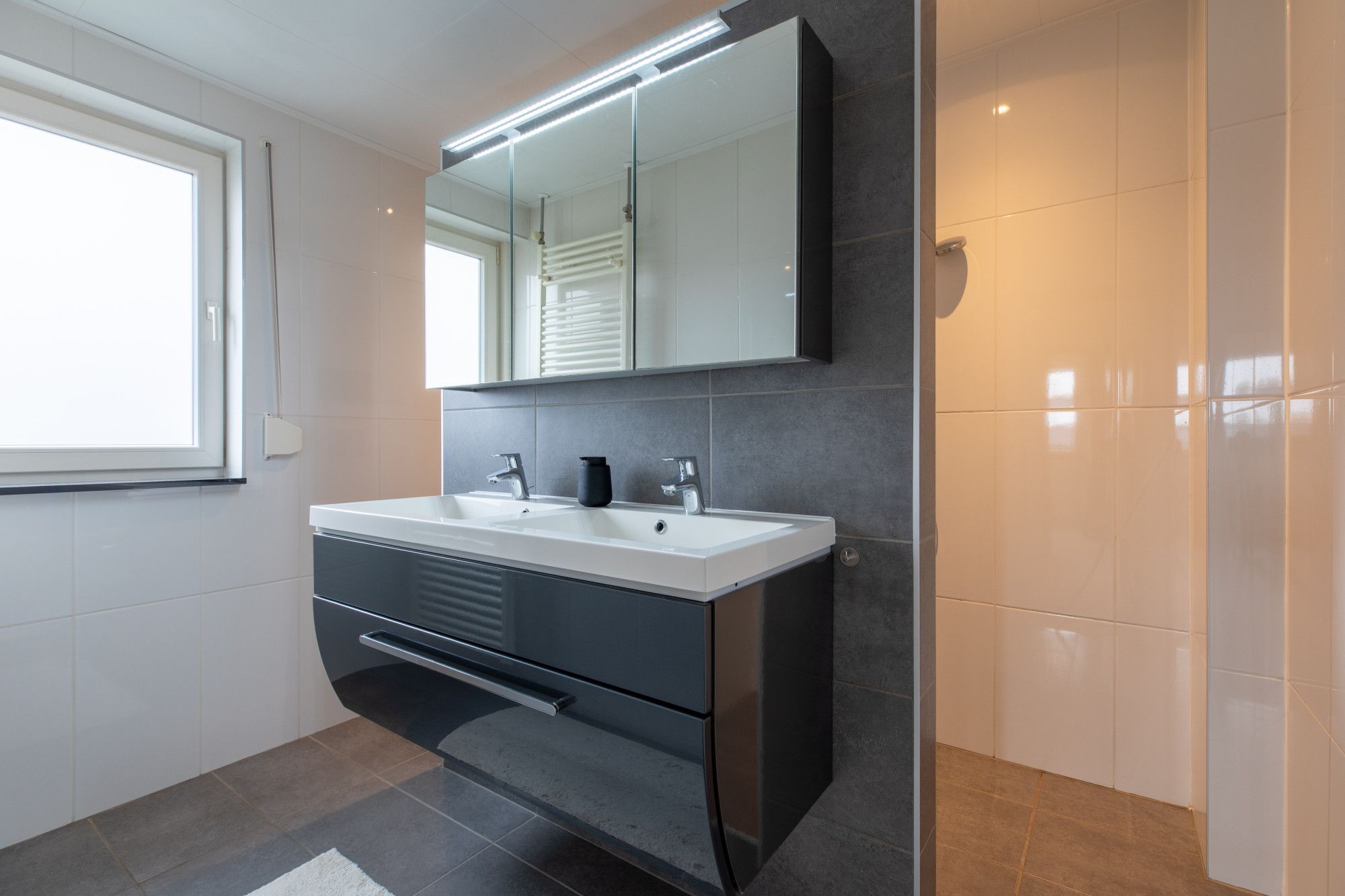Op de eerste verdieping zijn via de overloop drie slaapkamers en de badkamer bereikbaar. De slaapkamers meten circa 4,91m x 3,89m, 3,14m x 3,89m en 3,26m x 3,09m. De slaapkamers zijn lekker licht en van mooi formaat. De moderne badkamer (circa 2,41m x 2,13m) is ingericht met wastafelmeubel, inloopdouche en toilet.