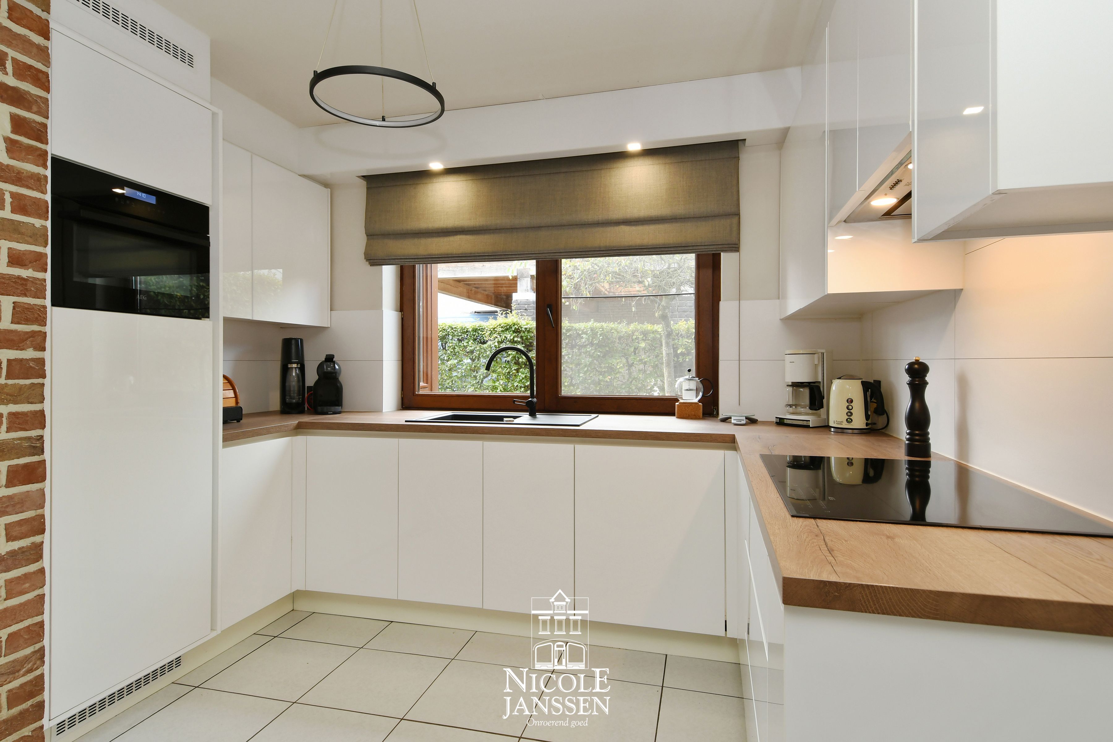 - De strakke, witte keuken is praktisch ingedeeld en voorzien van het nodige comfort