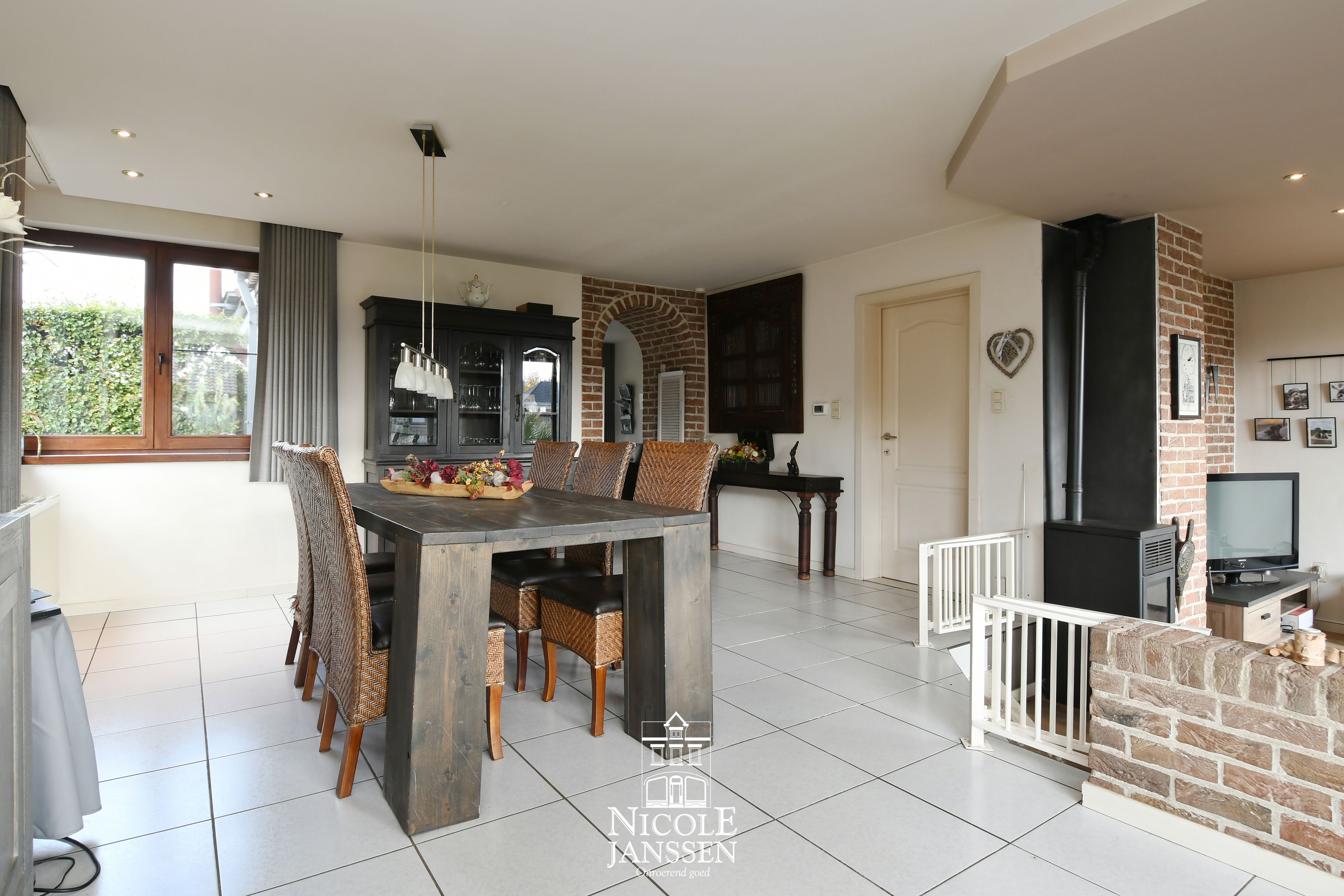 - Gezellige eethoek met zicht en toegang tot de tuin en het overdekt terras