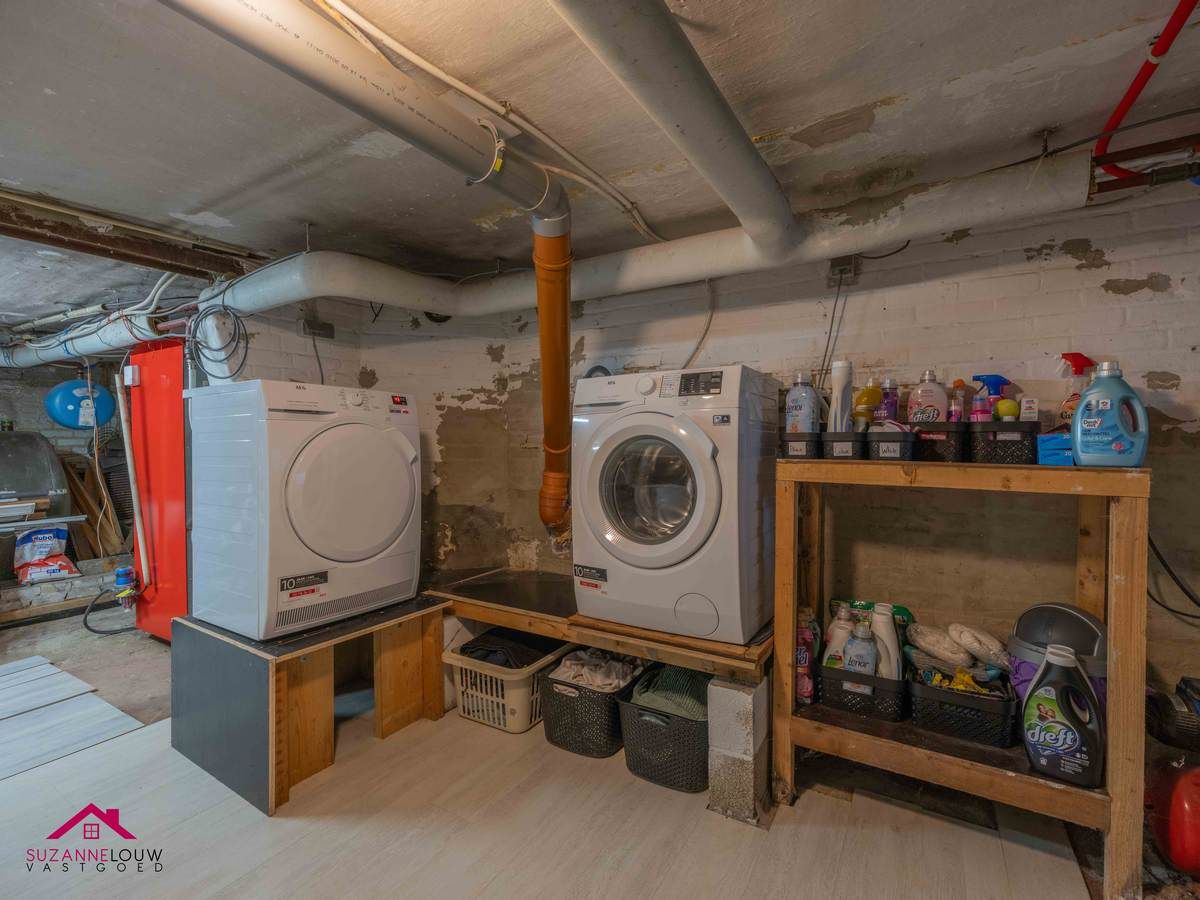 Volledig onderkelderd: hier bevindt zich de verwarmingsinstallatie, omvormer van de zonnepanelen en de aansluitingen voor wasmachine en droogkast.