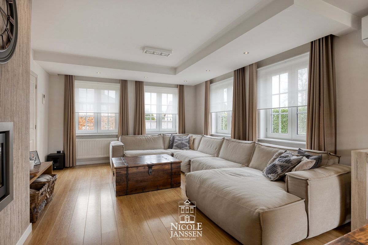 - De woonkamer geniet van veel natuurlijk lichtinval door de vele raampartijen