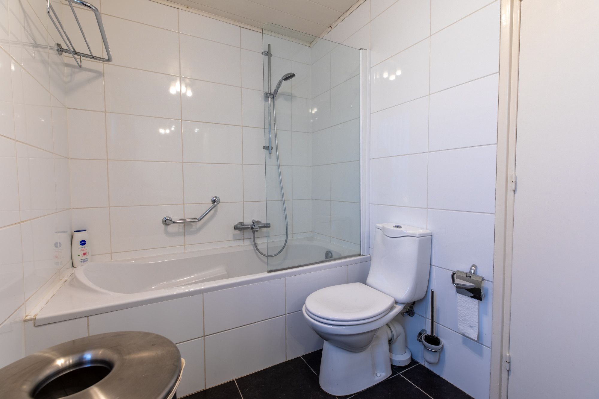 Badkamer (2.84 x 1.78 m) geheel betegeld met vaste wastafel met badmeubel, ligbad en duo-closet toilet.