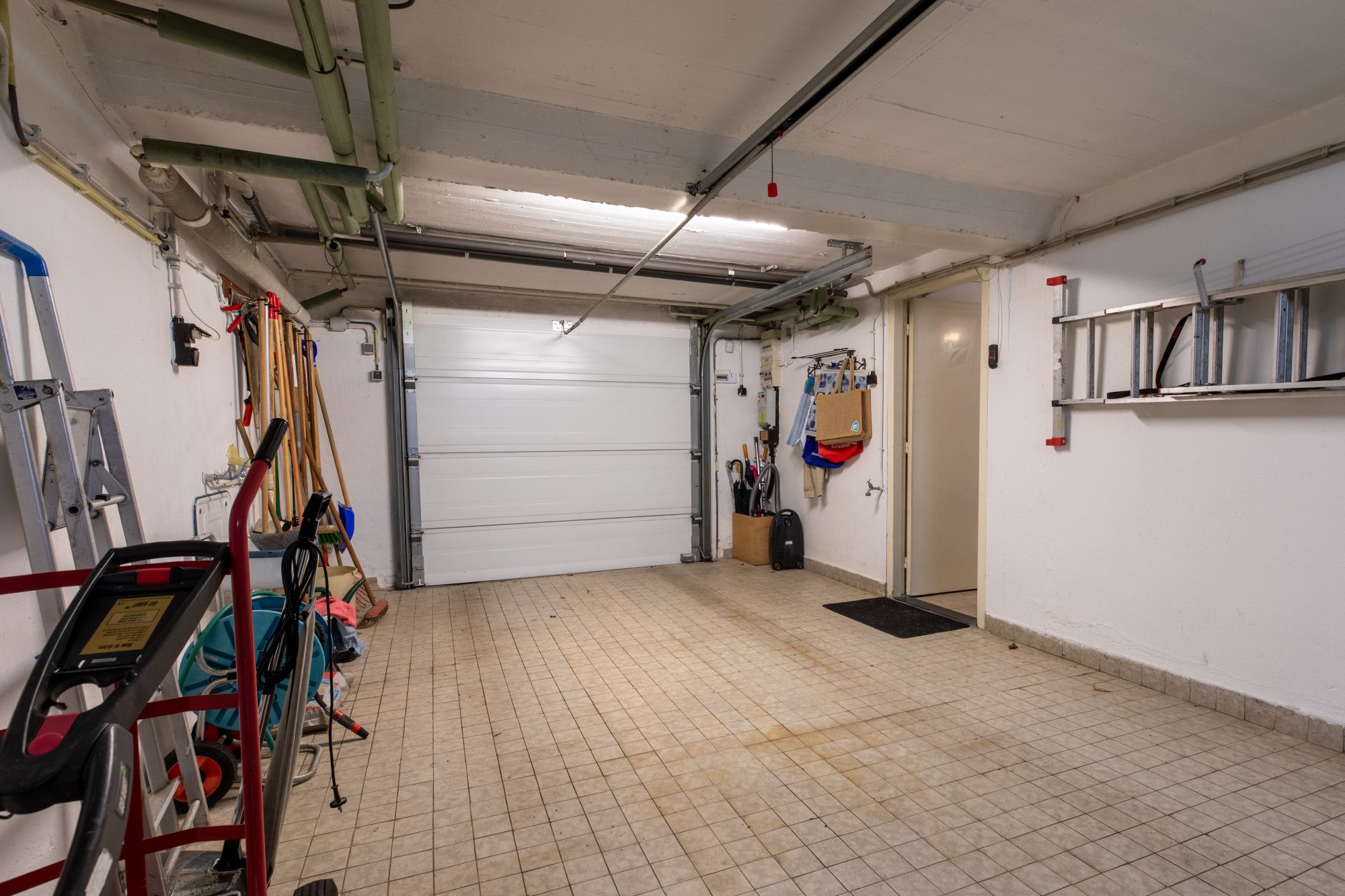 Zeer ruime garage (9.25 x 3.61 m) voorzien van elektrisch bedienbare sectionaalpoort en voorzien van tegelvloer en extra gootsteen met koud en warm water.