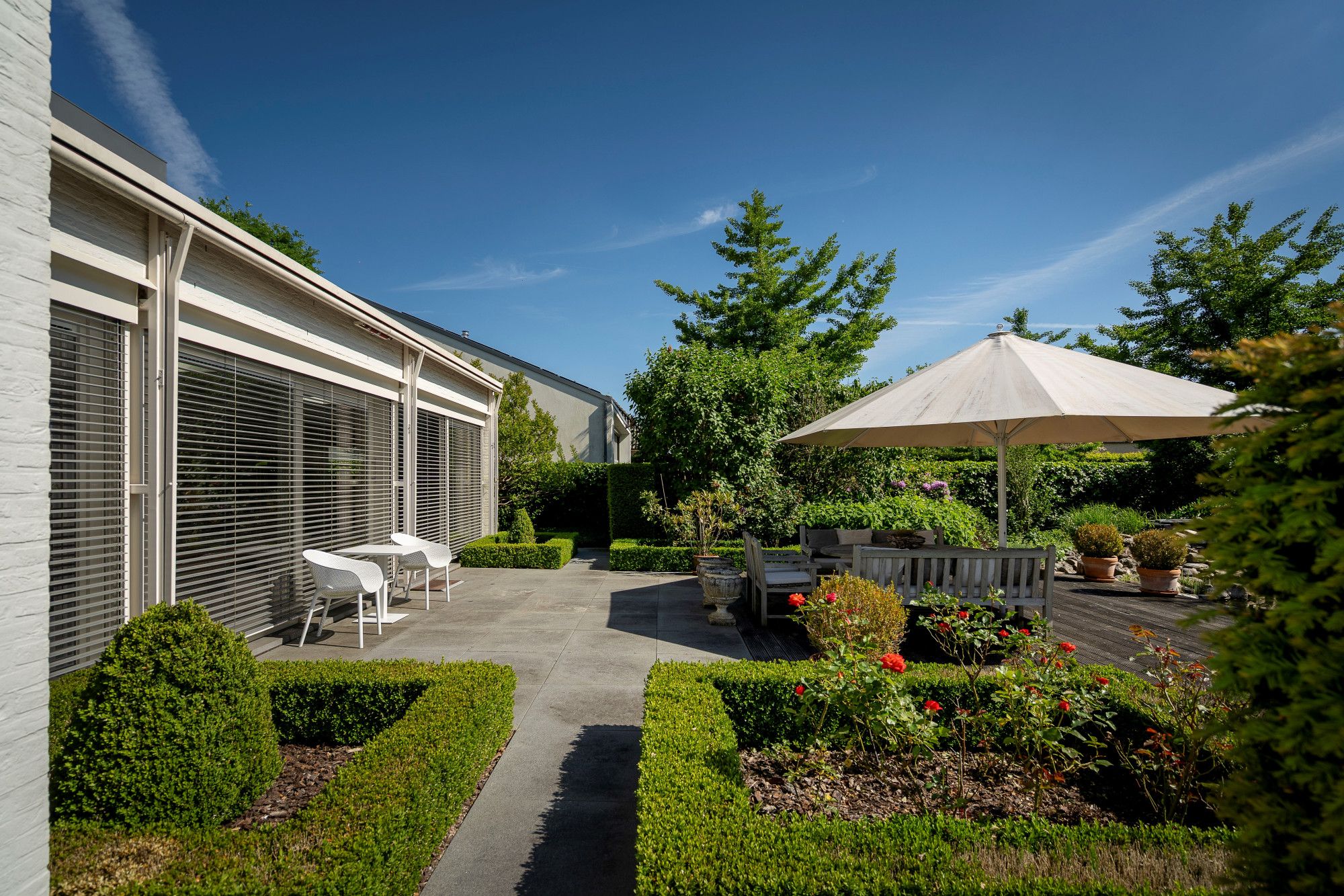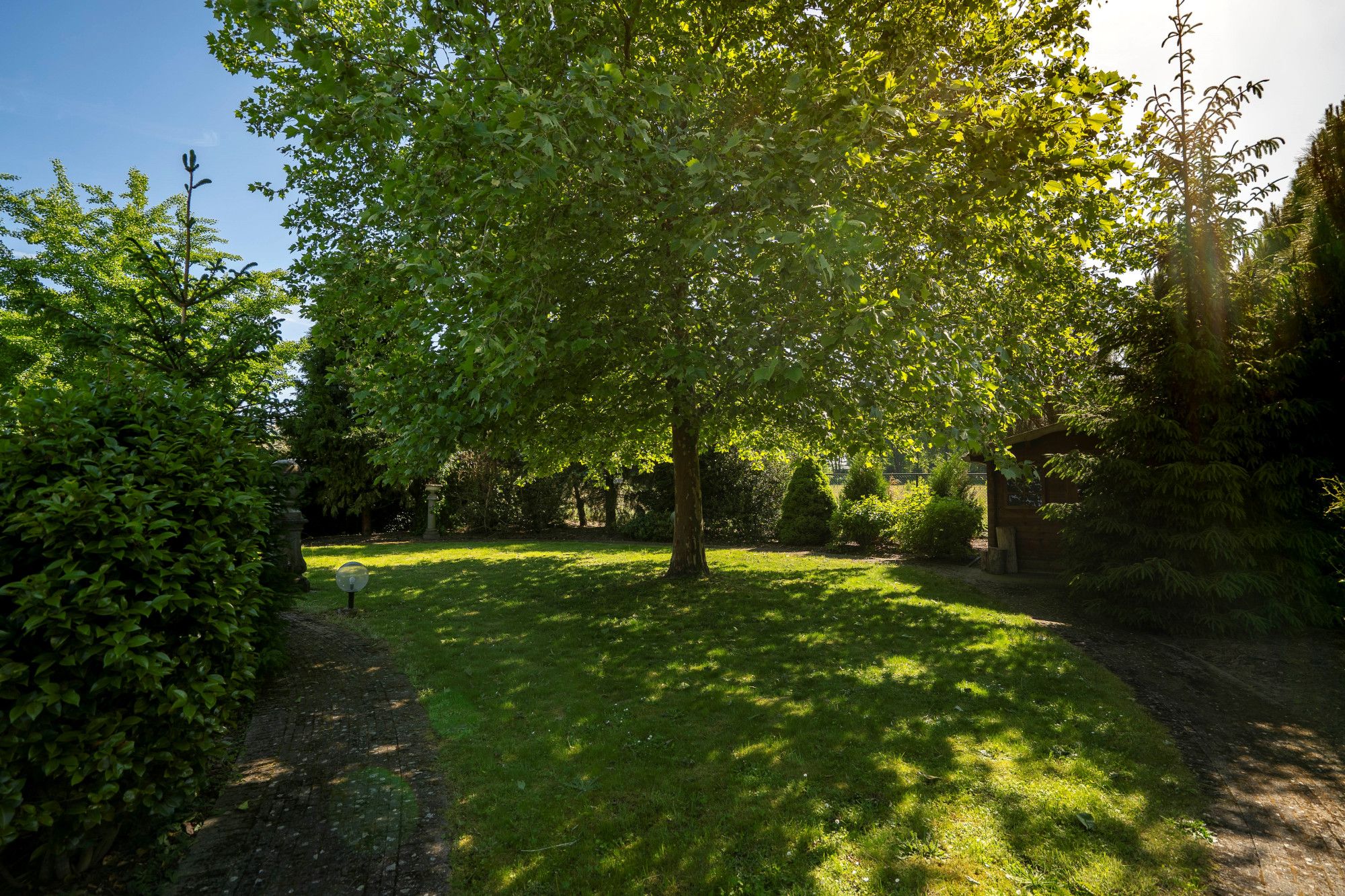 The well-kept garden is fully fenced and offers complete privacy due to the green planting. In addition, the garden has a swimming pond, a spacious terrace and a garden house.