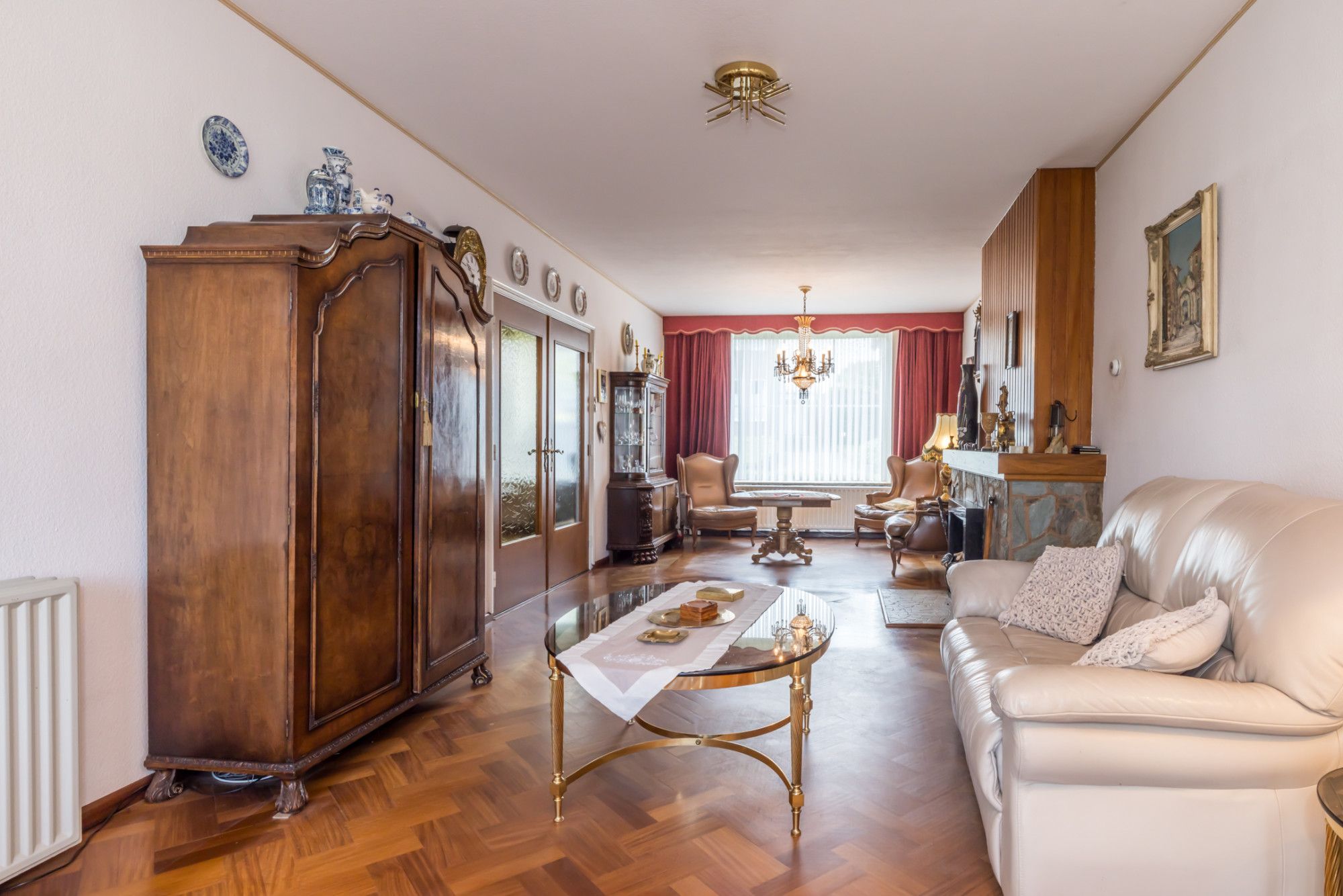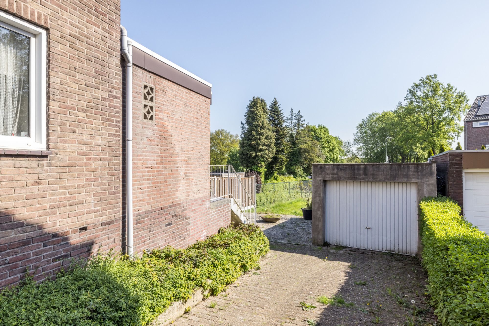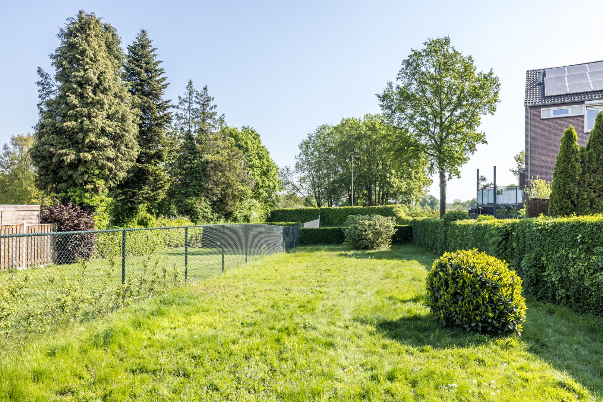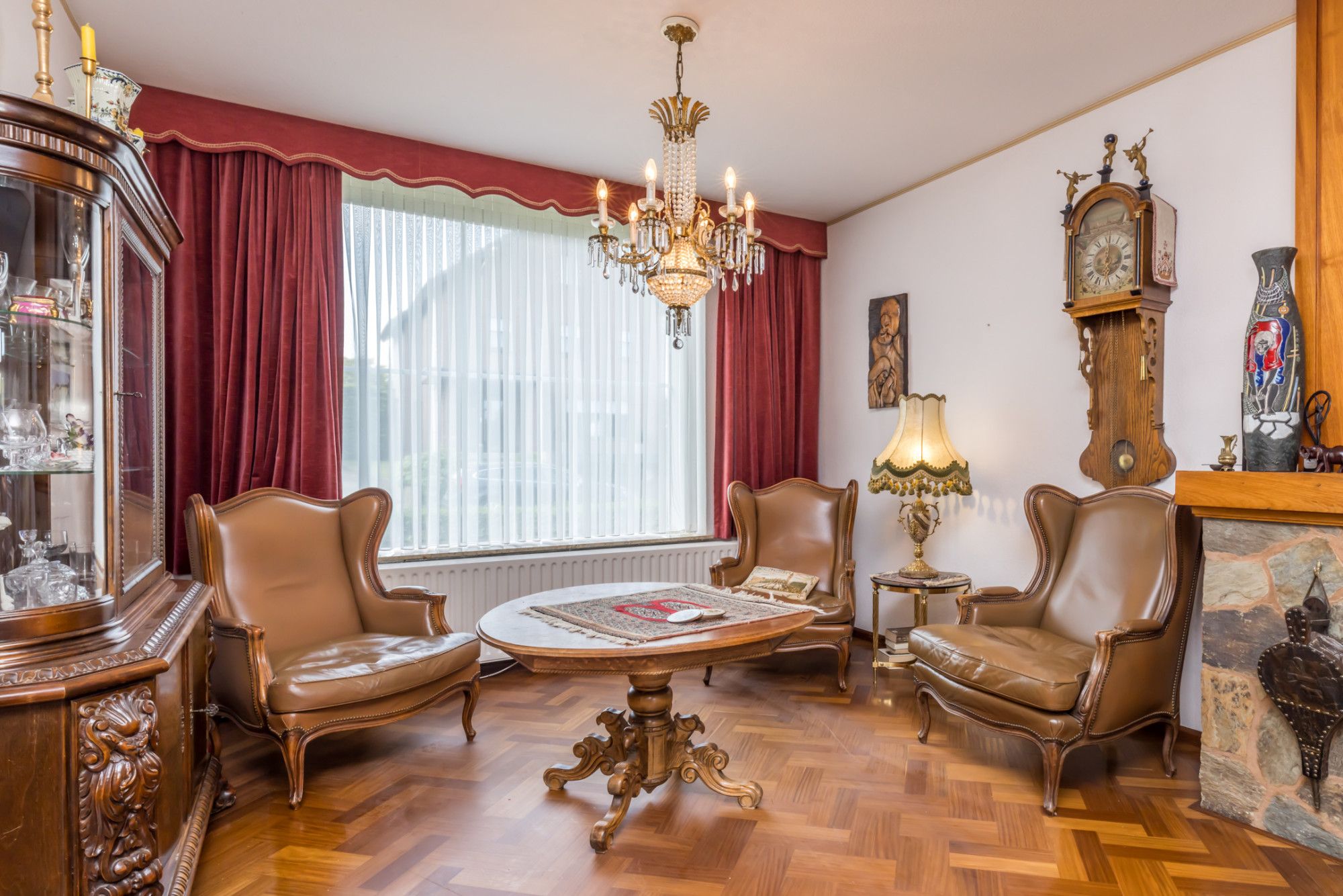 Entree. Ruime hal met tegelvloer, meterkast, fraaie trappartij en toegang naar de keuken en woonkamer. De woonkamer (39 m²) is voorzien van een hoogwaardige visgraatparketvloer, haardpartij en uitbouw aan de achterzijde. Gesloten keuken (9 m²) met rechte opstelling voorzien van de volgende apparatuur: keramische kookplaat, afzuigkap, oven, inbouwvaatwasser en koelkast. Zowel via de keuken als via de woonkamer te bereiken halletje met toiletruimte en toegang naar het balkon. Op het balkon heeft men een mooi uitzicht over de diepe achtertuin met vrijstaande garage. Verder is de tuin aangelegd met een terras en graszone.