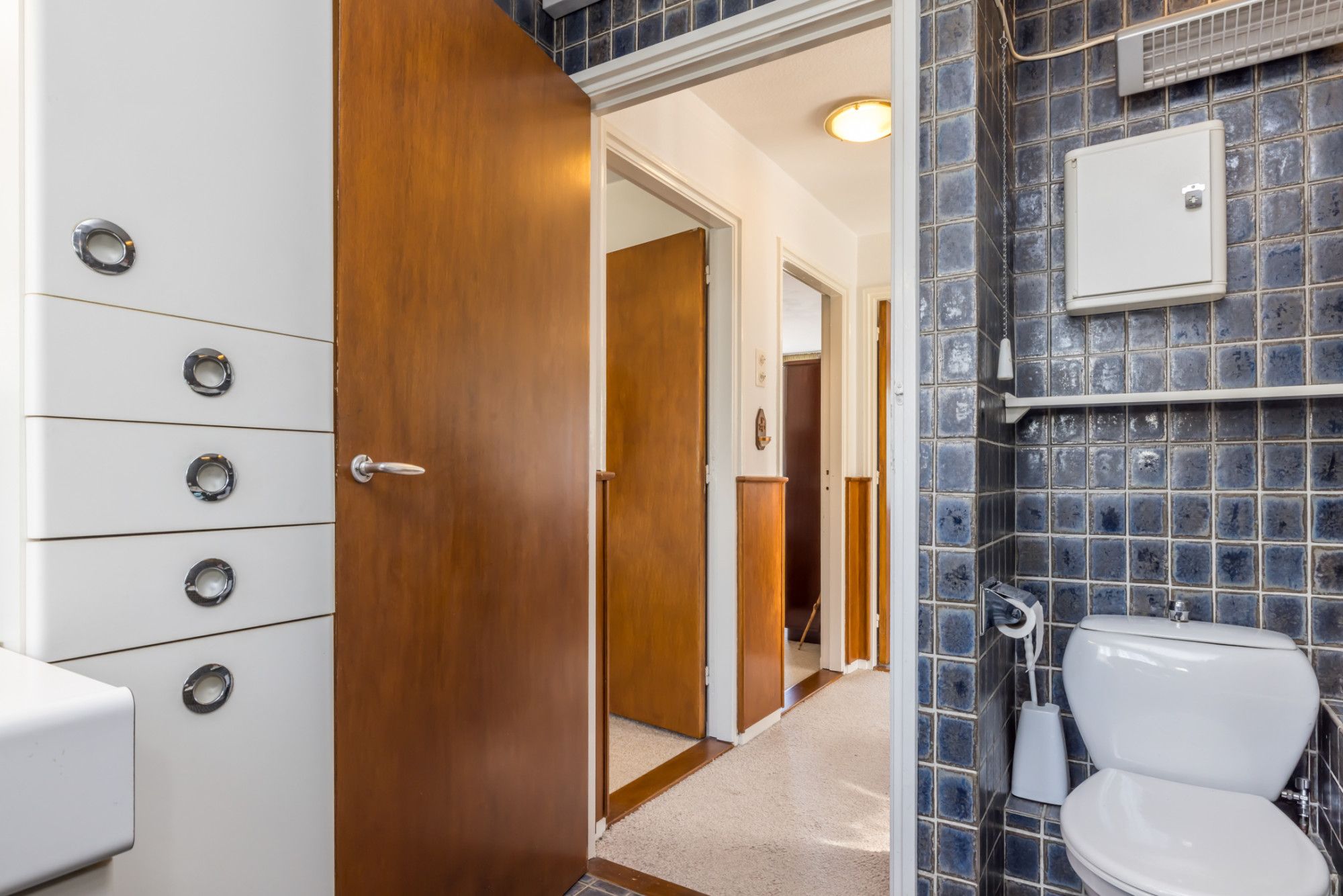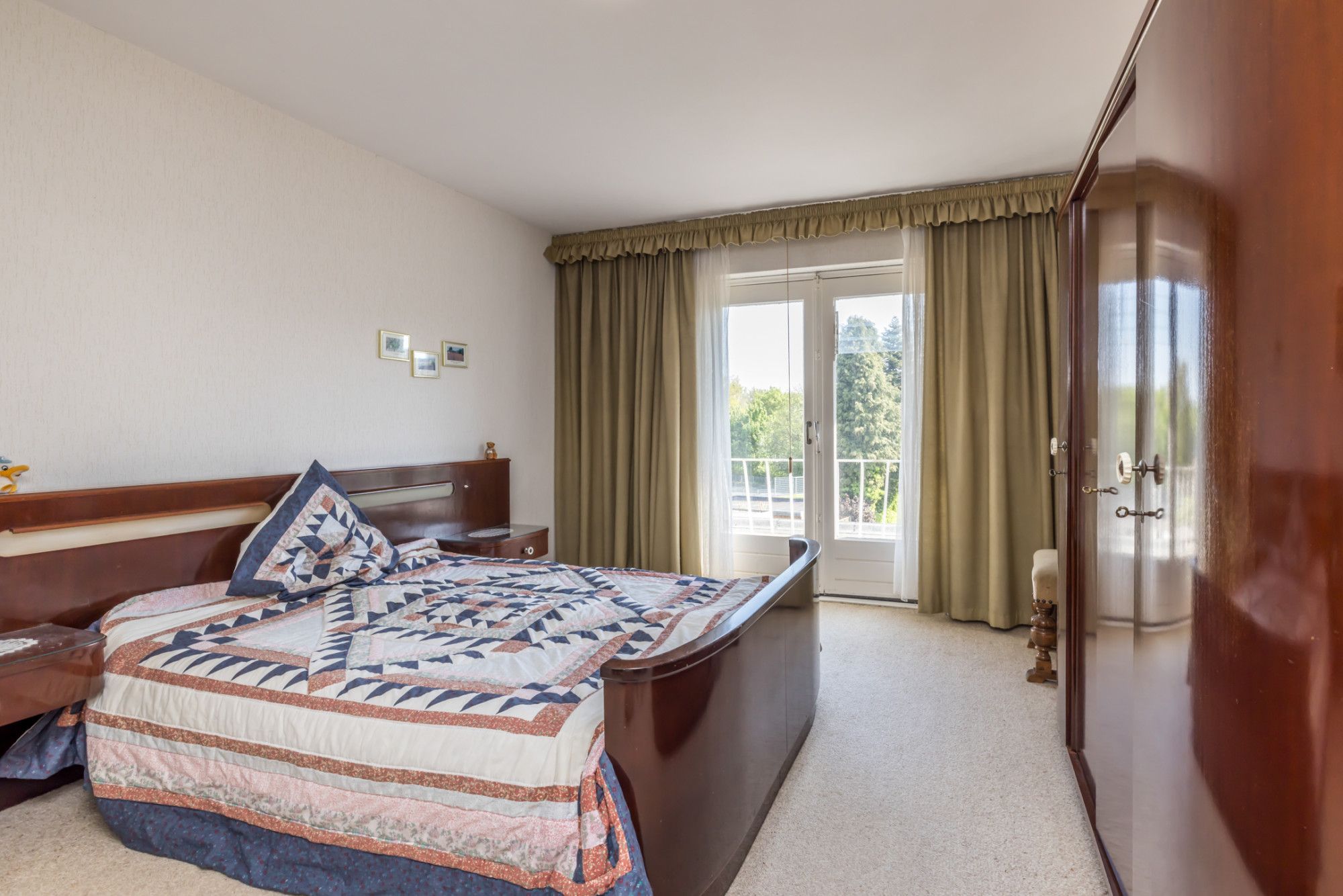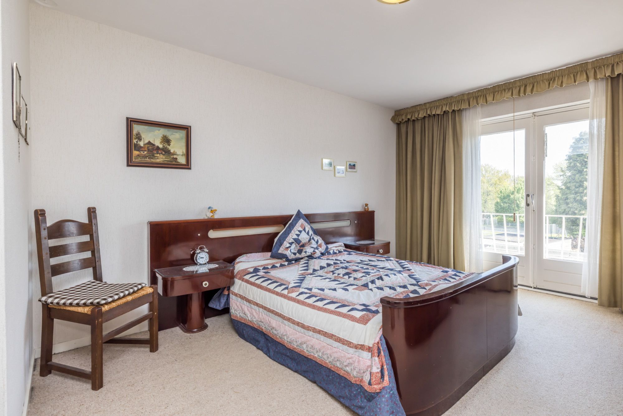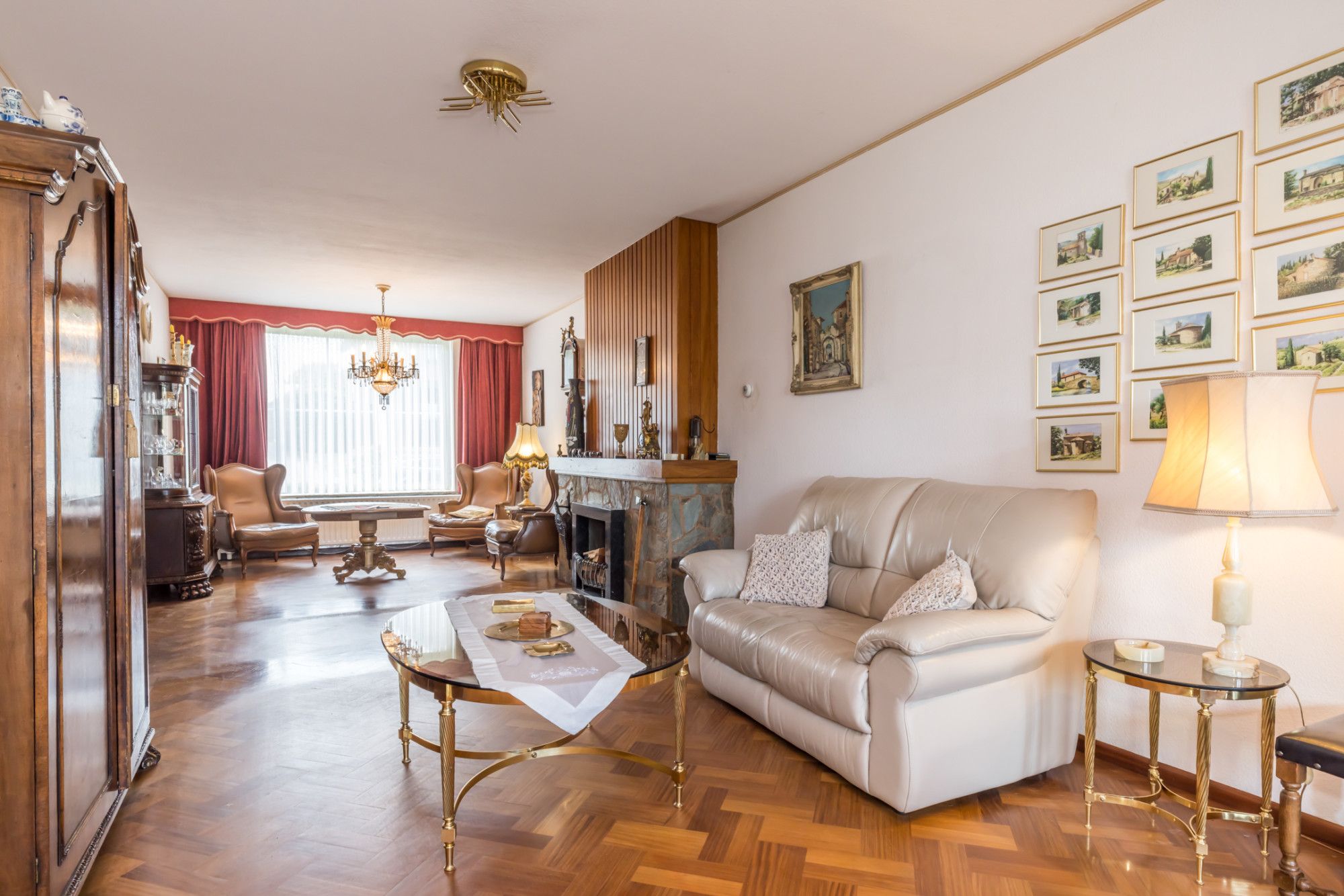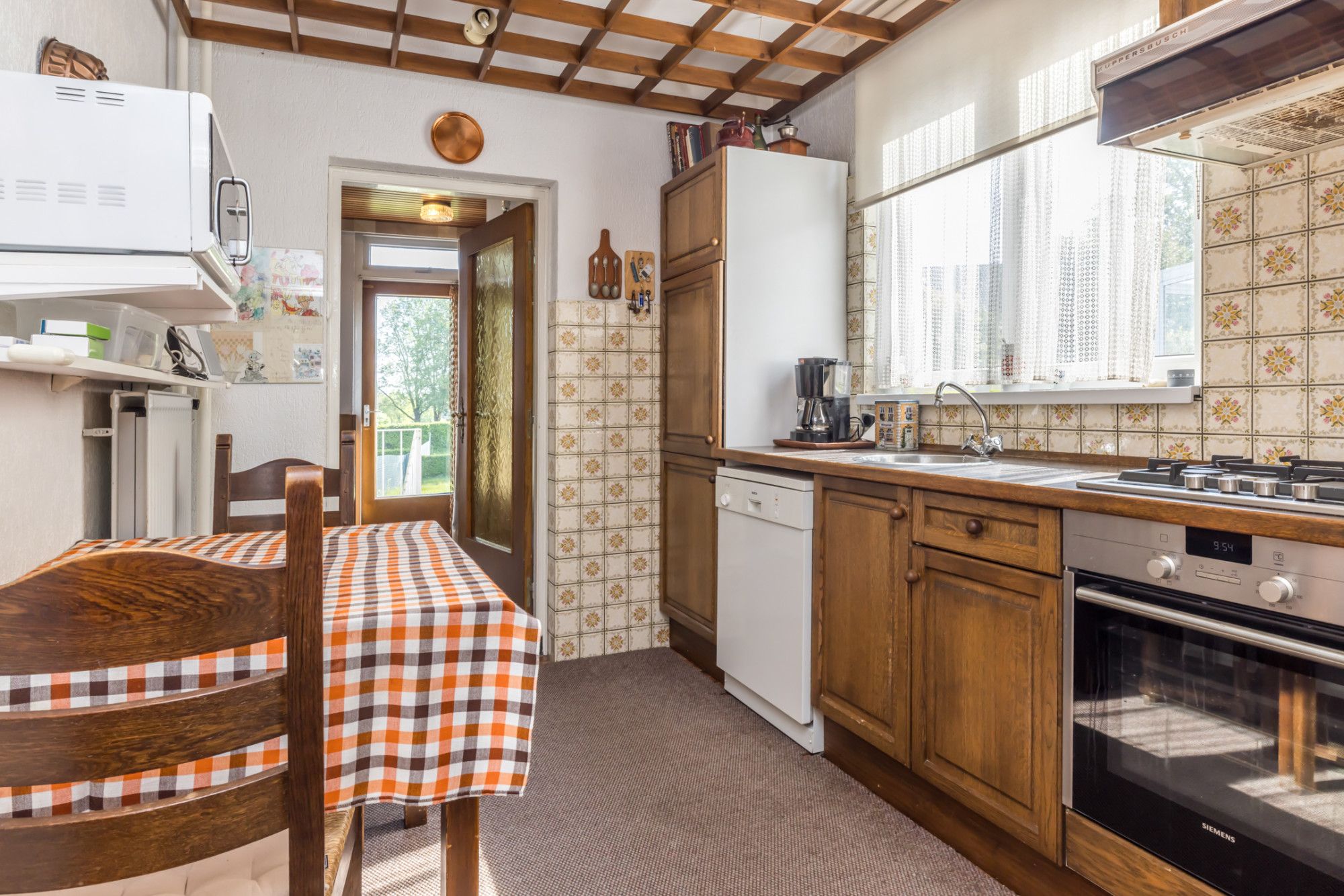 Entree. Ruime hal met tegelvloer, meterkast, fraaie trappartij en toegang naar de keuken en woonkamer. De woonkamer (39 m²) is voorzien van een hoogwaardige visgraatparketvloer, haardpartij en uitbouw aan de achterzijde. Gesloten keuken (9 m²) met rechte opstelling voorzien van de volgende apparatuur: keramische kookplaat, afzuigkap, oven, inbouwvaatwasser en koelkast. Zowel via de keuken als via de woonkamer te bereiken halletje met toiletruimte en toegang naar het balkon. Op het balkon heeft men een mooi uitzicht over de diepe achtertuin met vrijstaande garage. Verder is de tuin aangelegd met een terras en graszone.