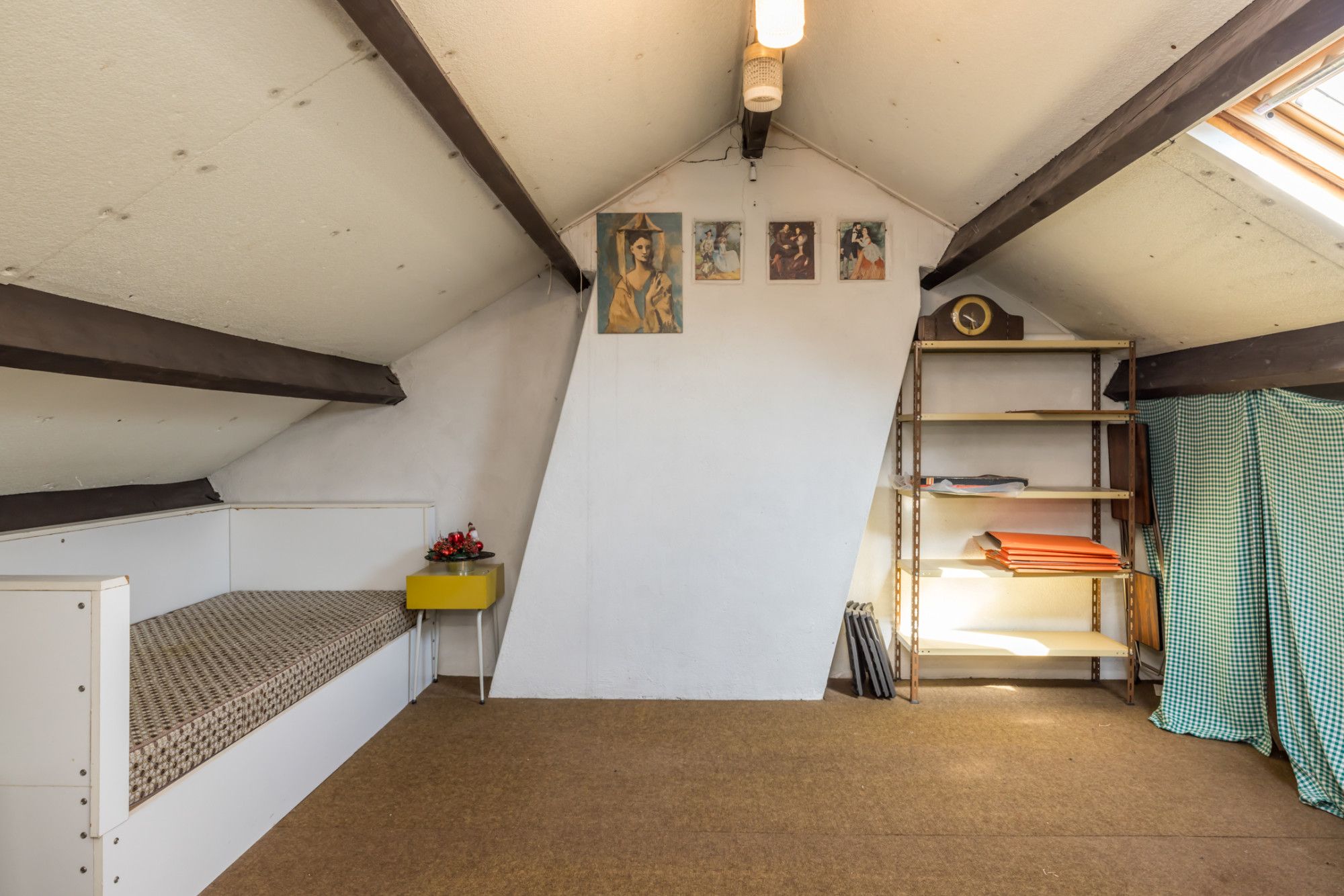 Middels vaste trap te bereiken zolderverdieping. Deze ruimte heeft een nokhoogte van ca. 2,25 meter en leent zich hierdoor perfect om als (4e) slaapkamer te gaan gebruiken.