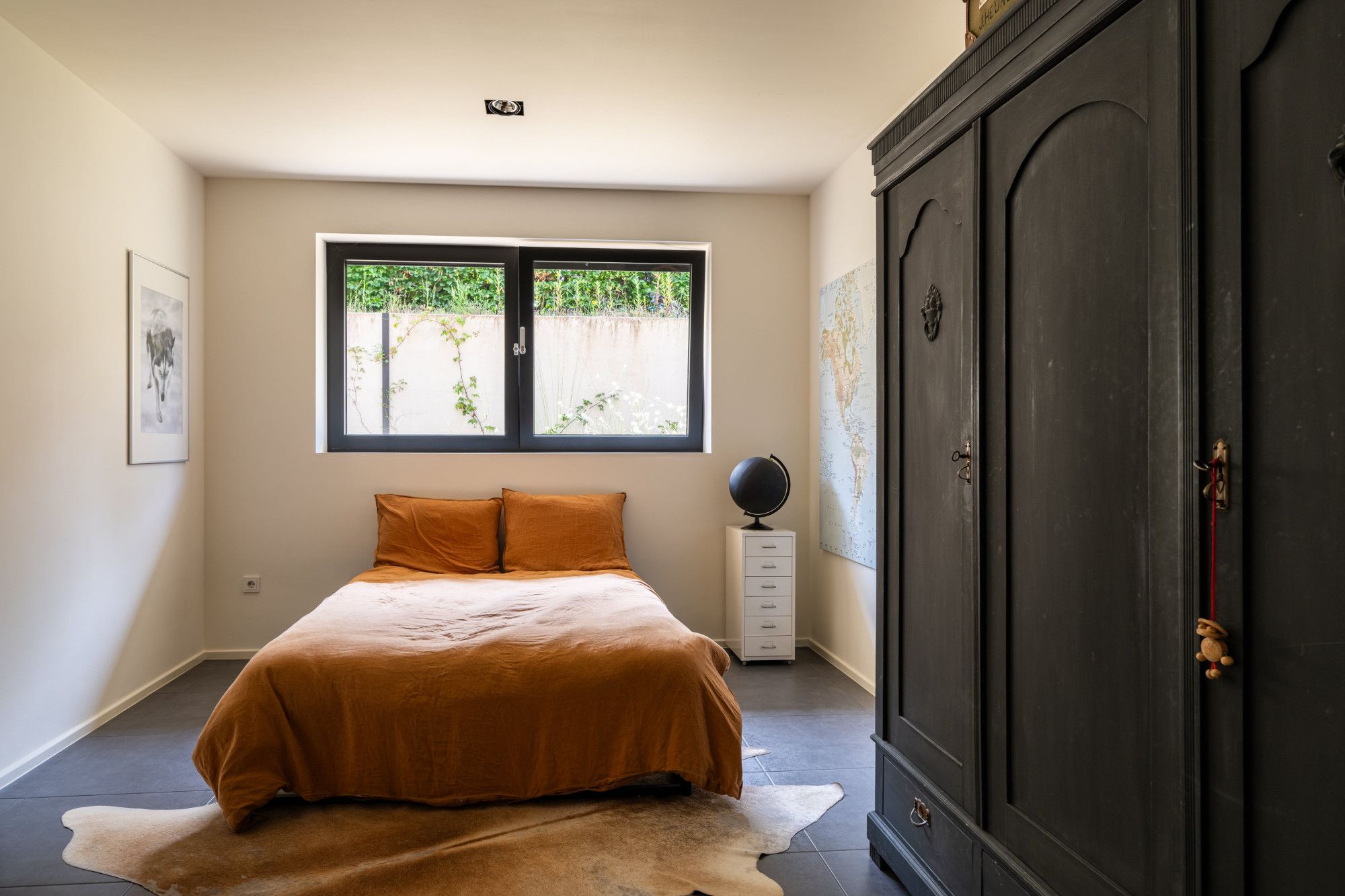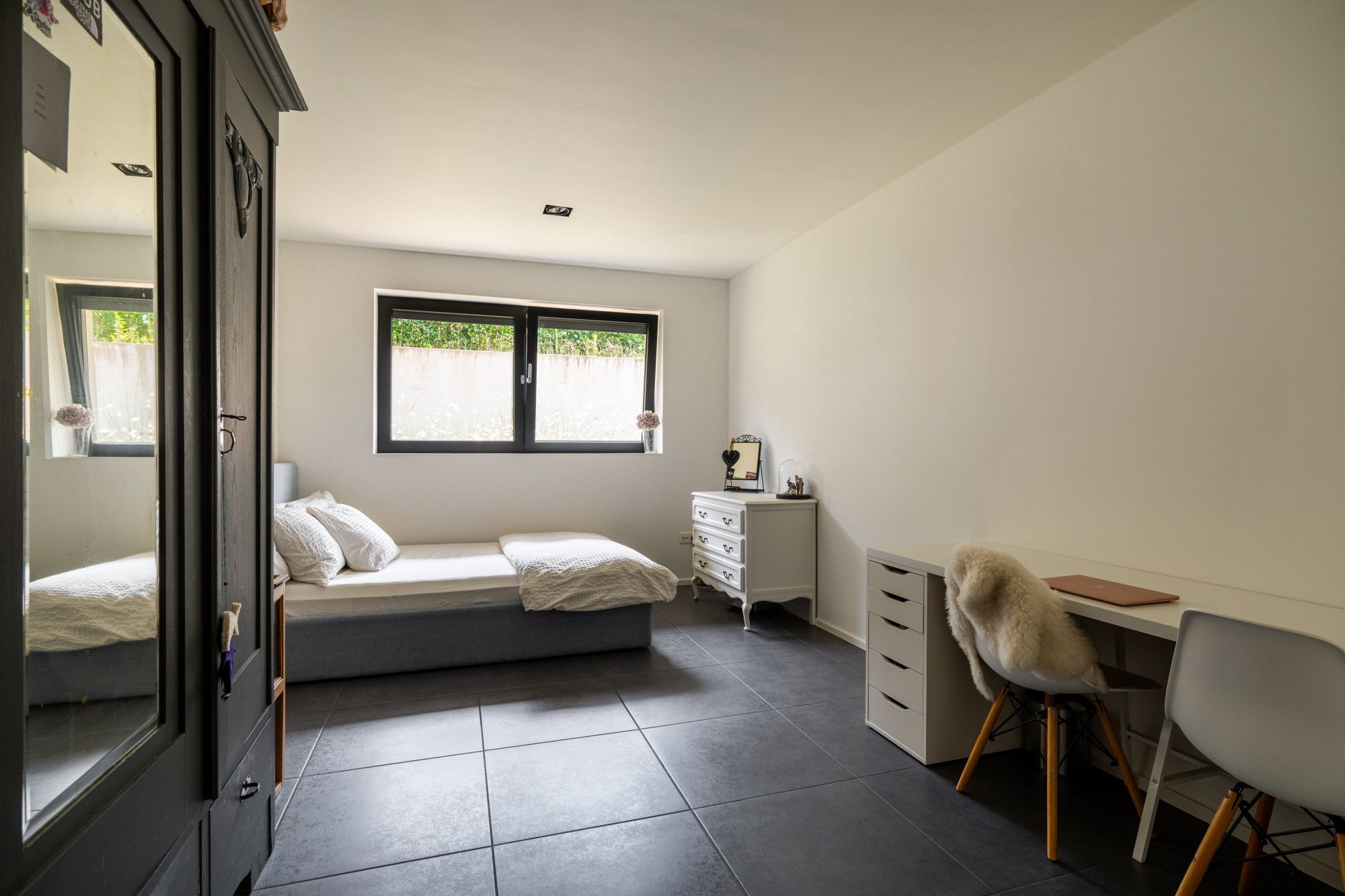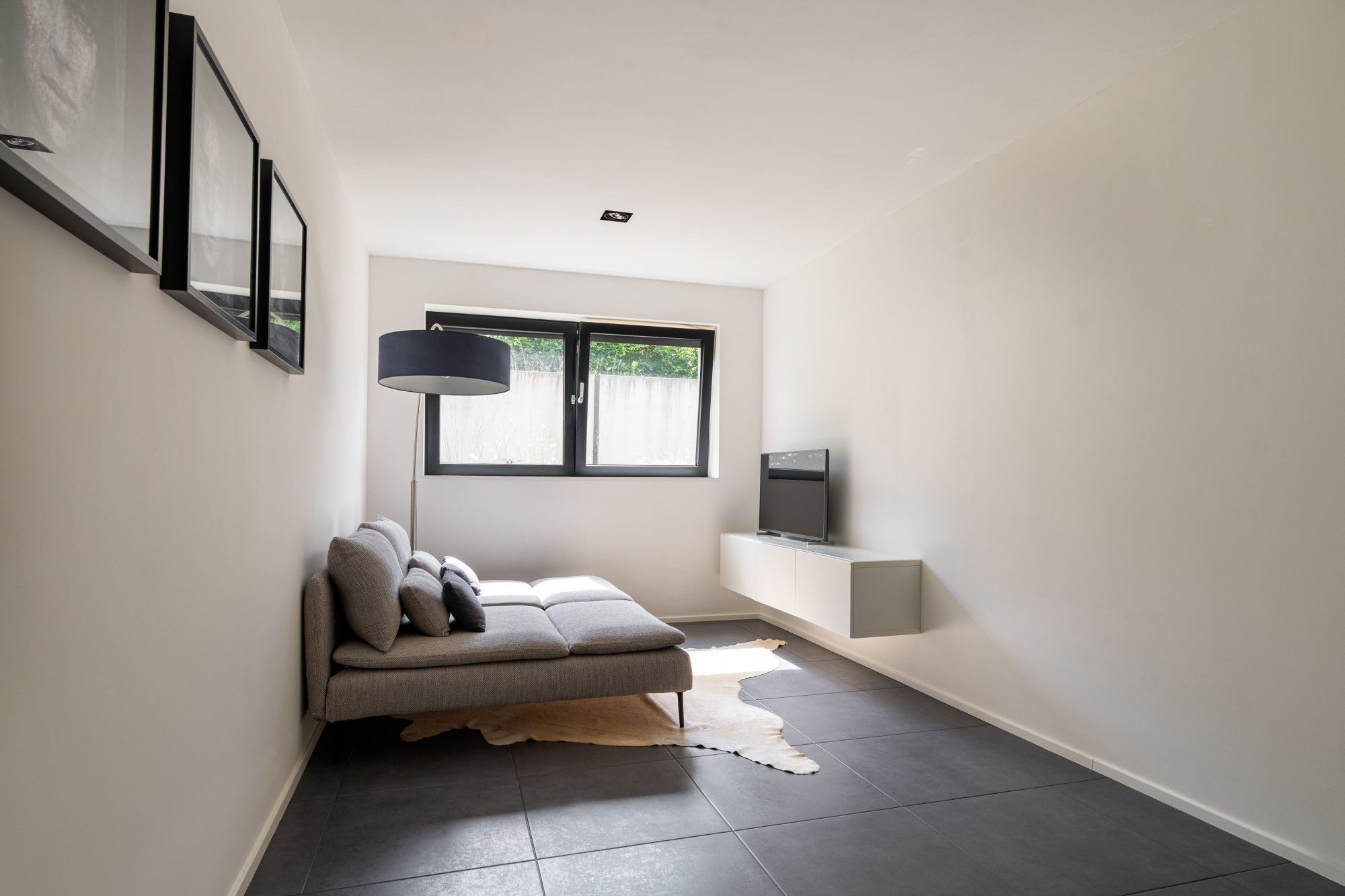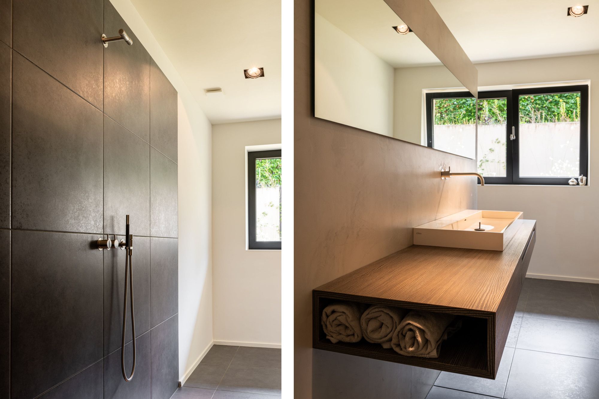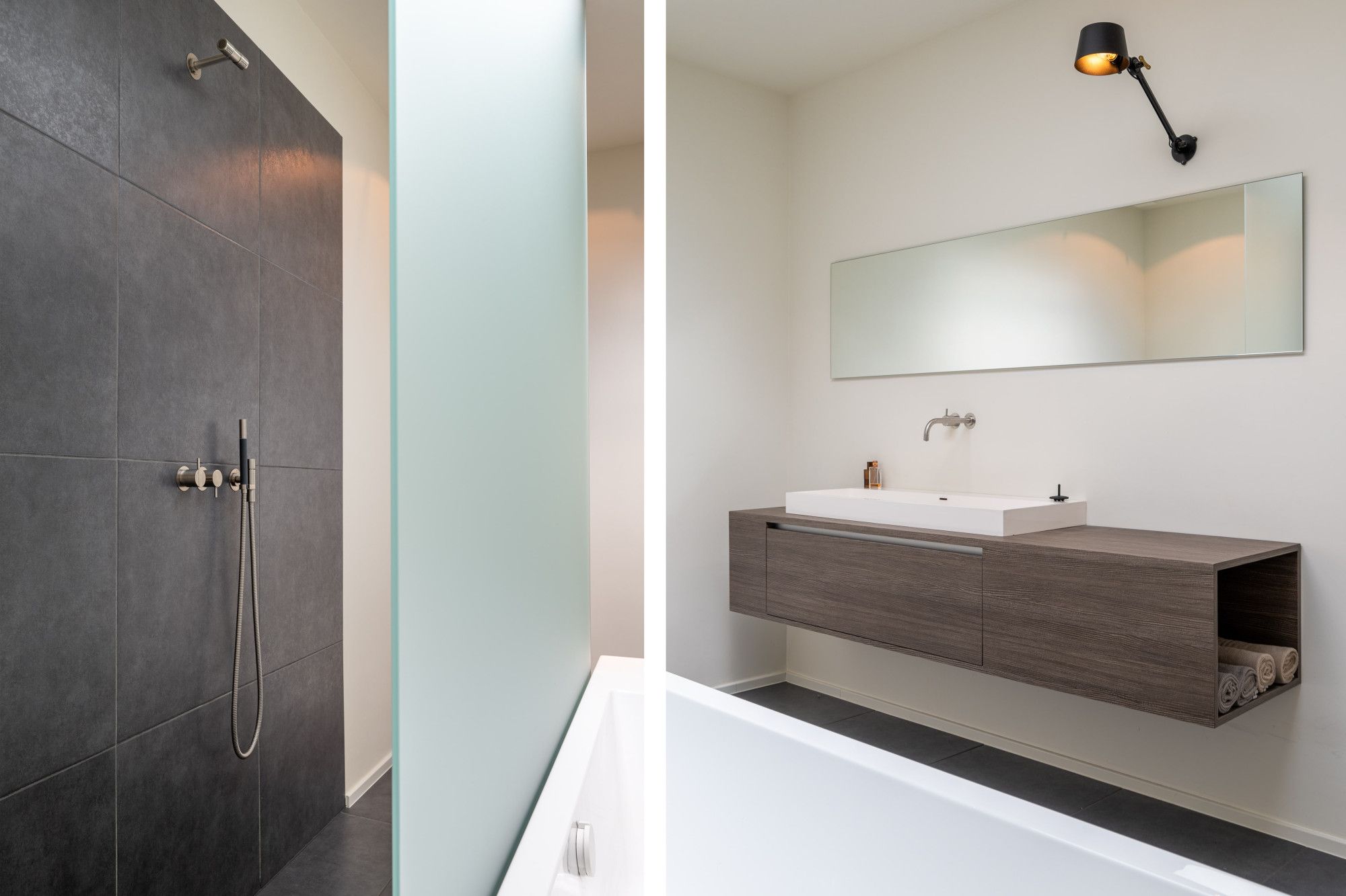 De benedenverdieping is vanzelfsprekend intern bereikbaar, maar ook via een eigen toegangsdeur. Er zijn drie royale slaapkamers en de tweede badkamer. De slaapkamers zijn circa 6,04m x 2,89m, 5,02m x 3,45m en 5,02m x 3,45m groot. Ook de tweede badkamer (circa 5,02m x 2,55m) is luxe afgewerkt en ingericht met een inloopdouche en een wastafelmeubel met Vola kranen. Er is een separaat toilet. Ook zijn op de benedenverdieping een enorme sport-/ hobbyruimte (circa 7,76m x 3,58m) en een bergruimte (circa 4,85m x 3,58m). In de technische ruimte staan o.a. de warmtepomp, de wasmachine en de -droger. De dubbele inpandig bereikbare garage is circa 39m² groot.