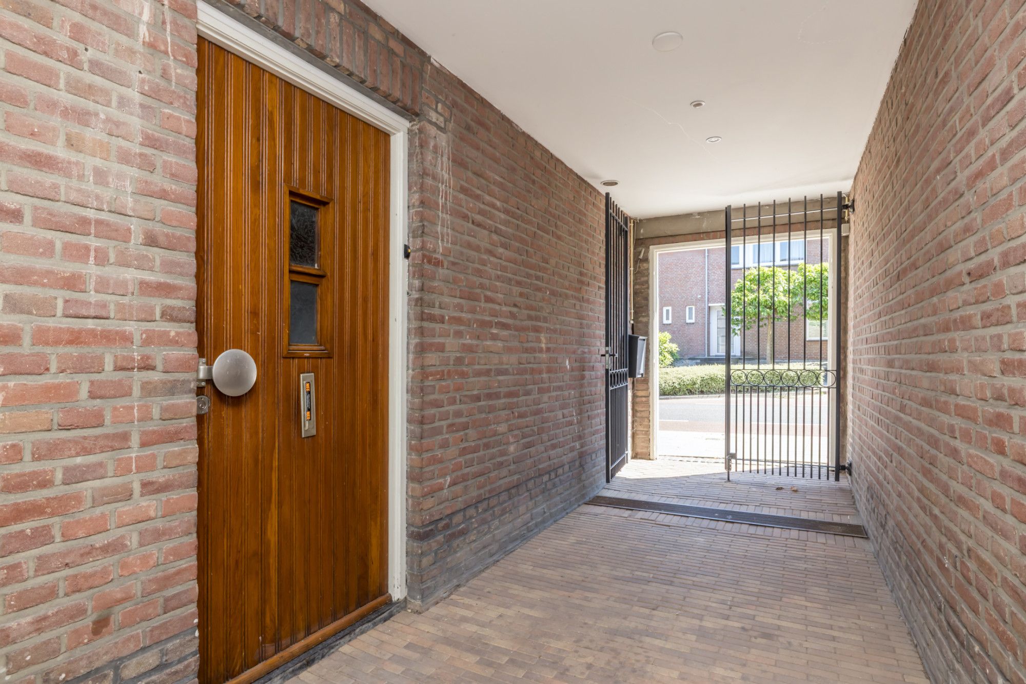 Toegang tot de tuin vanaf de straat via onderdoorgang en tevens vanuit de woonkamer