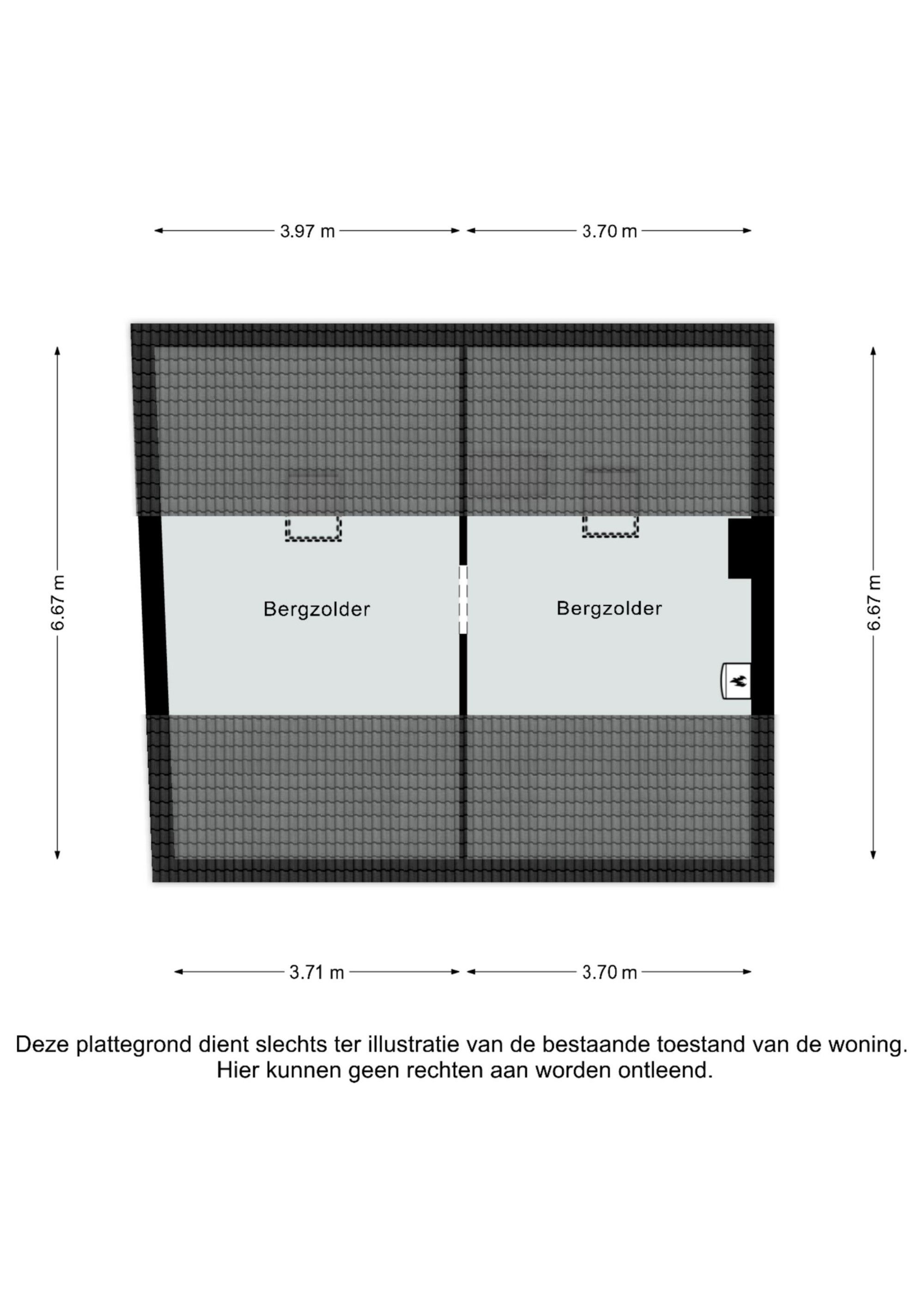 Bergzolder bereikbaar via vlizotrap, voorzien van dakisolatie (nieuw dak); mogelijkheid voor extra opslagruimte of gebruik als hobbyzolder. 4e slaapkamer optioneel.
