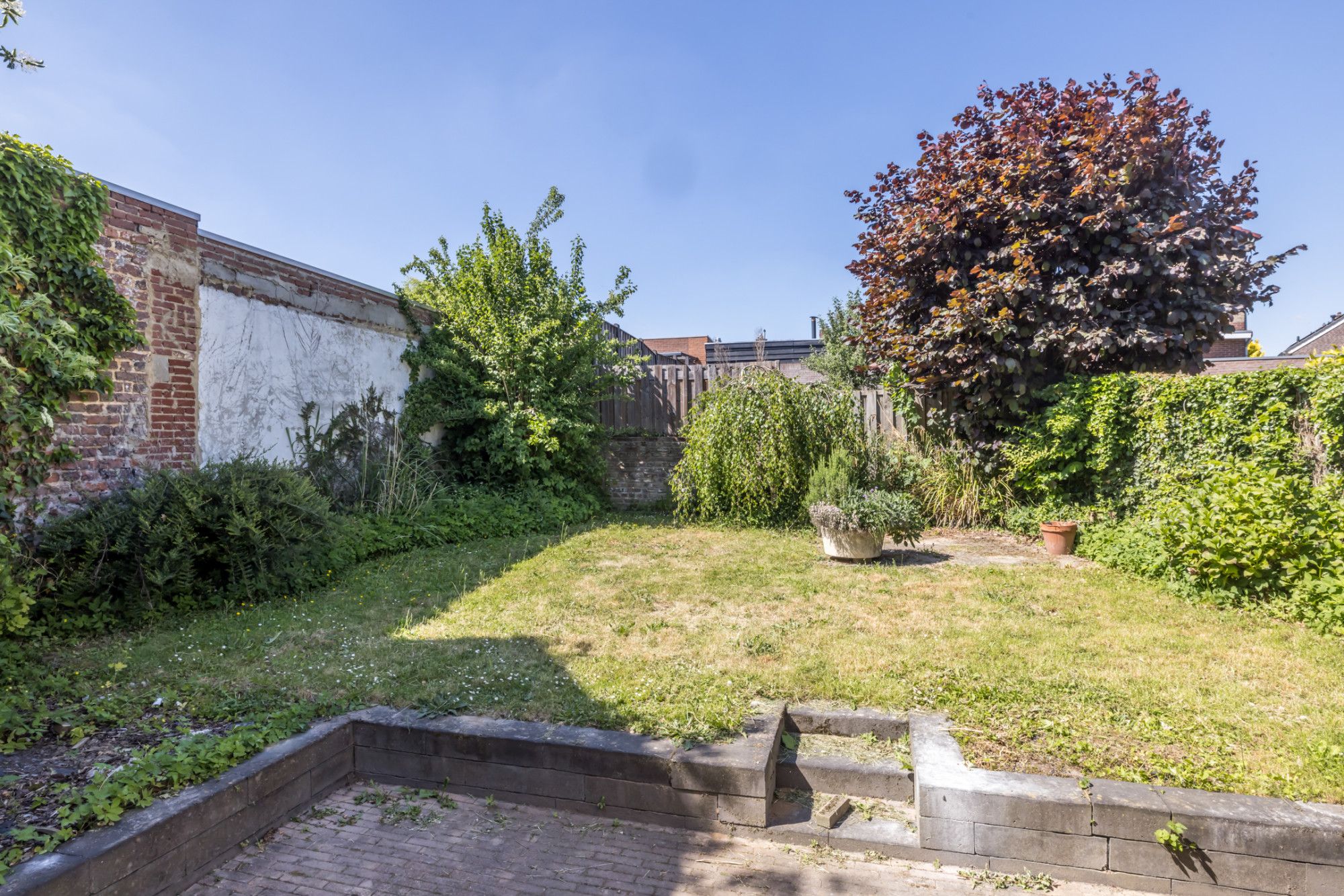 Achtertuin met terras en borders