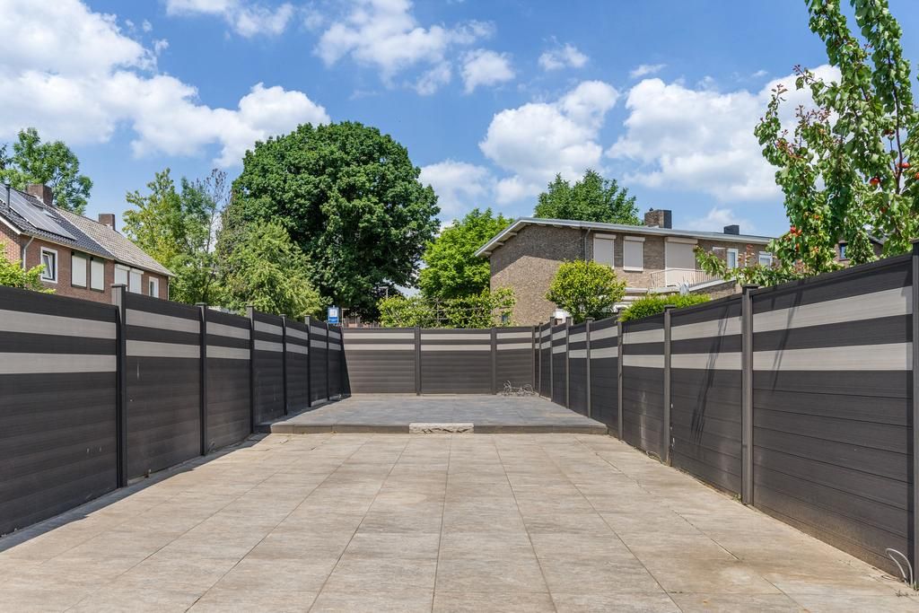 De circa 20 meter diepe achtertuin is volledig betegeld en daardoor onderhoudsvriendelijk. Dankzij de praktische