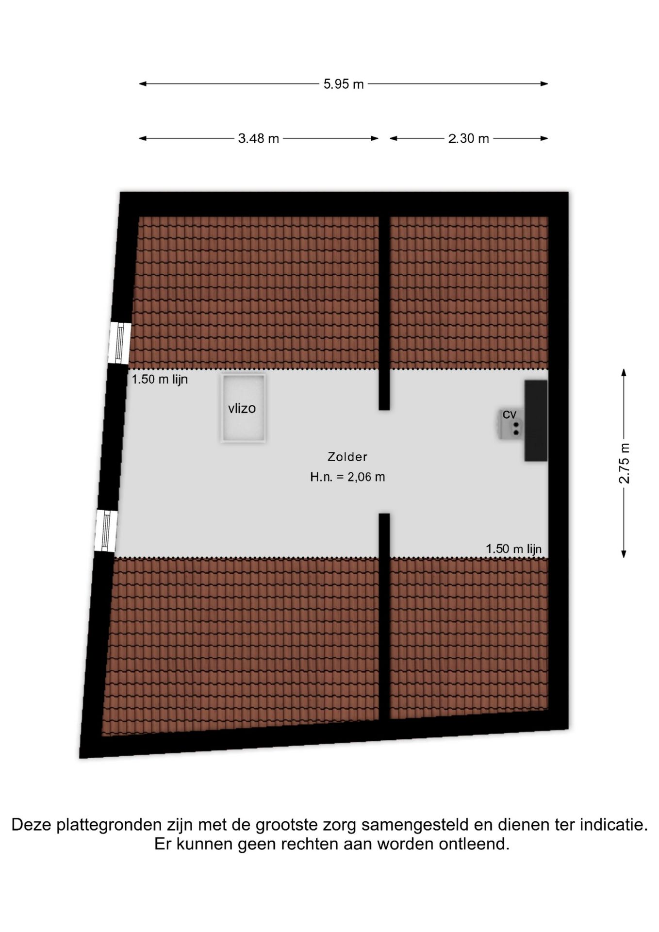 De zolder is bereikbaar via een vlizotrap en wordt momenteel gebruikt als bergzolder. Hier bevindt zich tevens de combiketel. Er bestaat de mogelijkheid om een vaste trap te realiseren, waardoor extra gebruiksruimte kan worden gecreëerd, bijvoorbeeld voor een extra kamer of hobbyruimte.