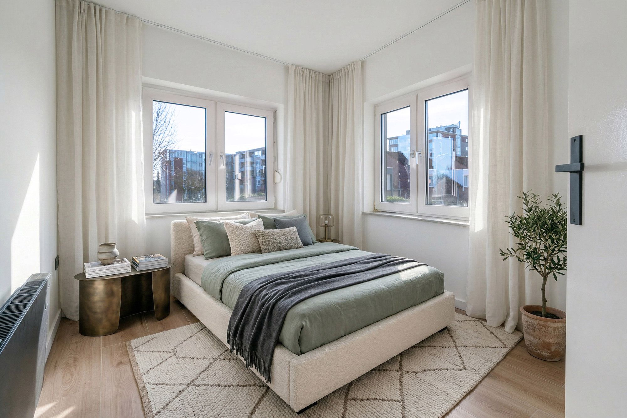 - Kunststof kozijnen met dubbele beglazing én rolluiken;