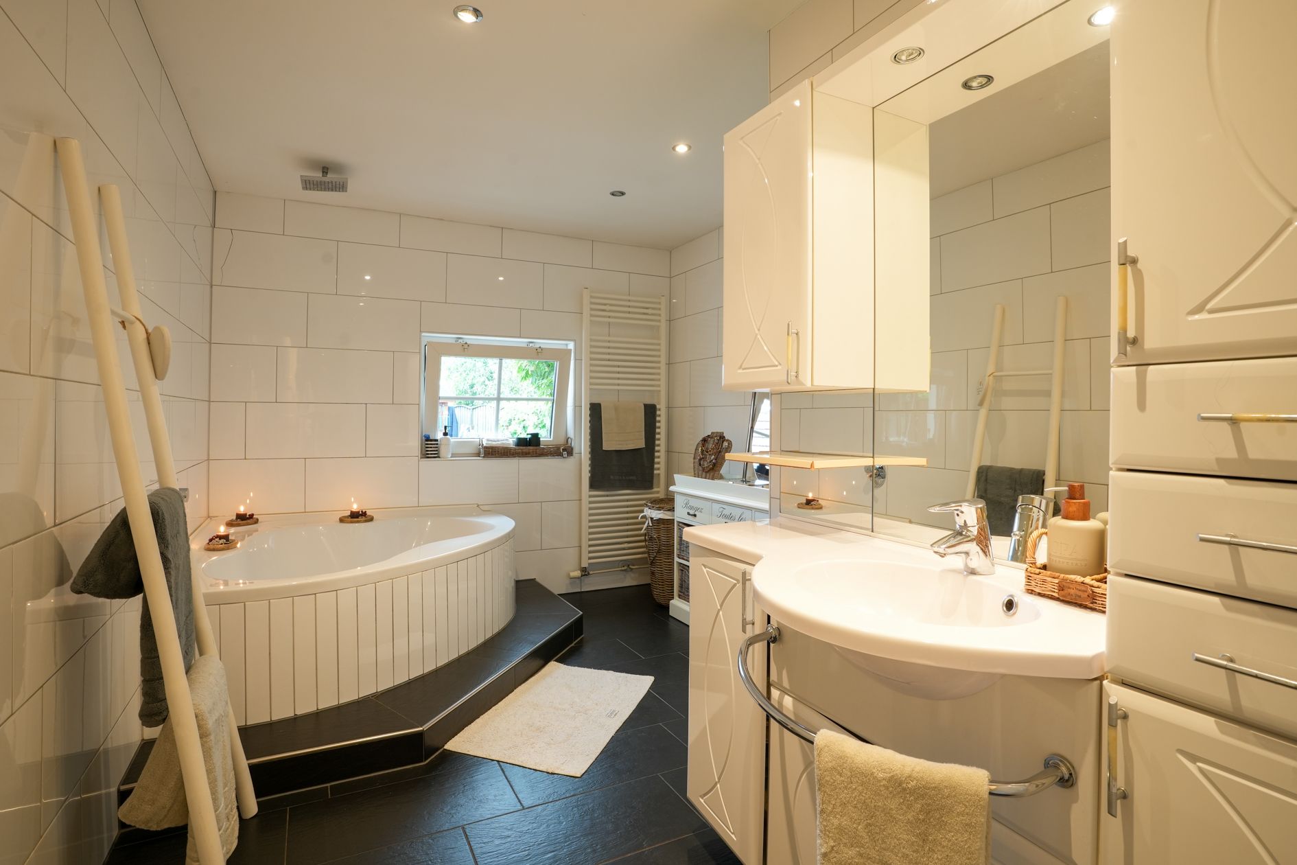 De vloer op de begane grond in de woon- eetkamer, hal en keuken is voorzien van infrarood vloerverwarming. Deze is bedienbaar middels een app. Het toilet is voorzien van een radiator.