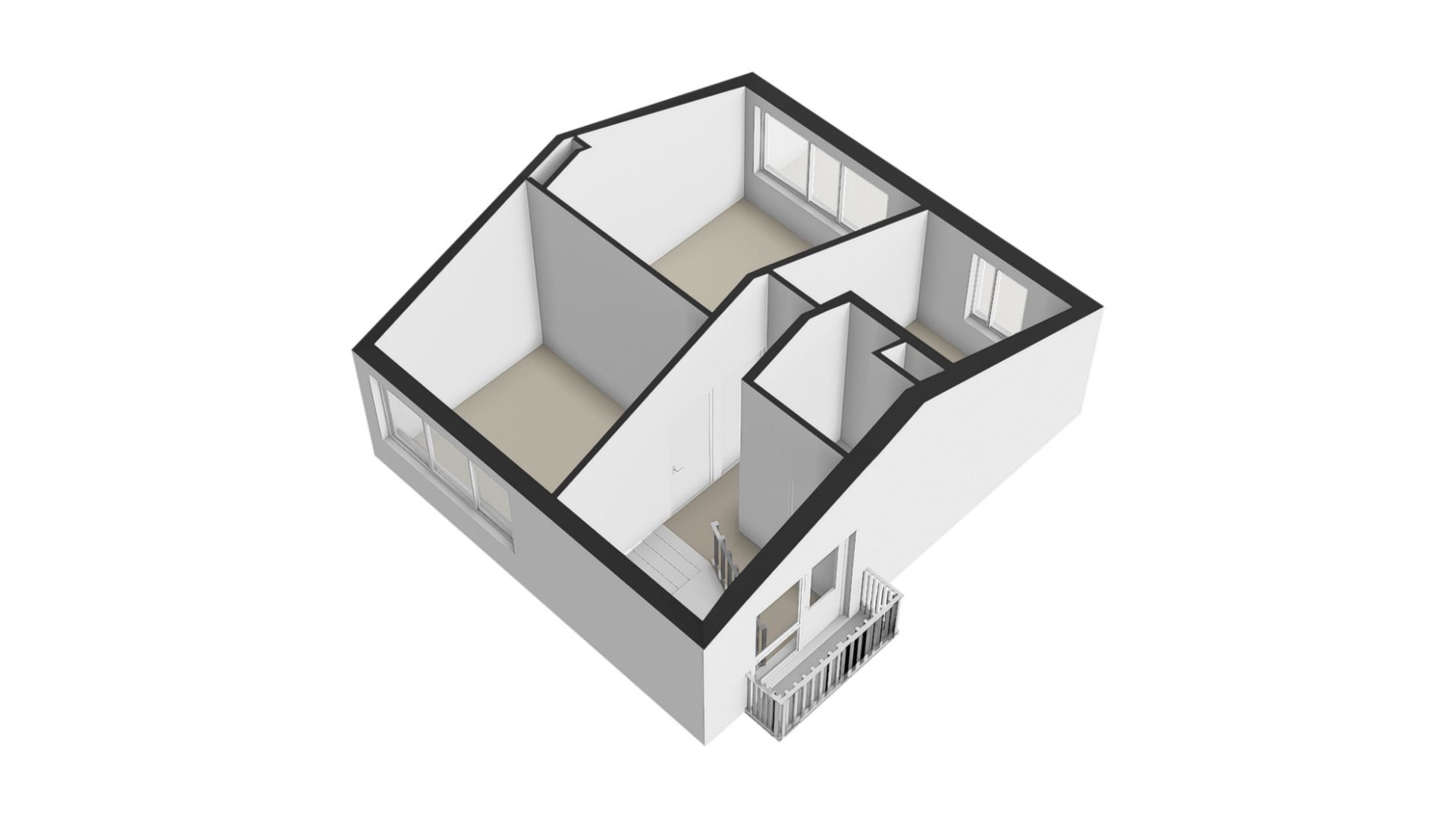 Overloop met toegang tot het zijbalkon, de slaapkamers, de badkamer en de vliering.